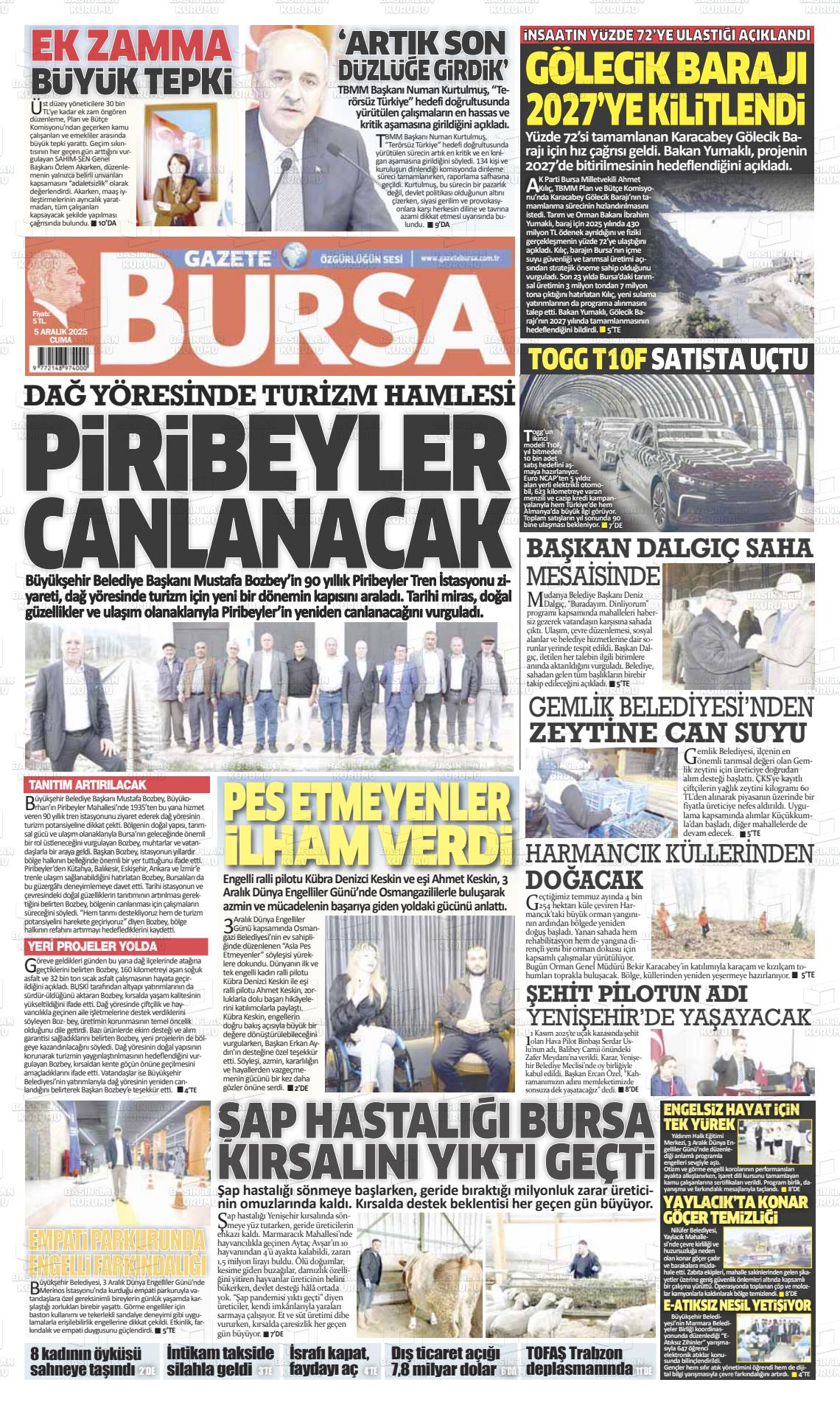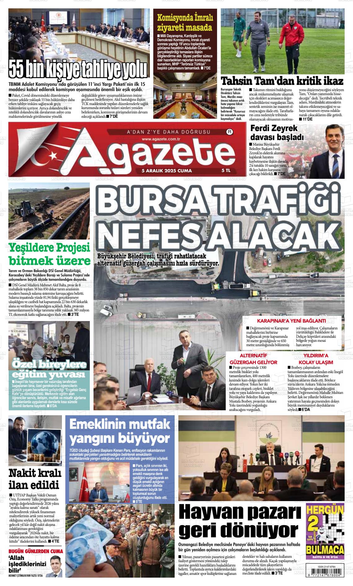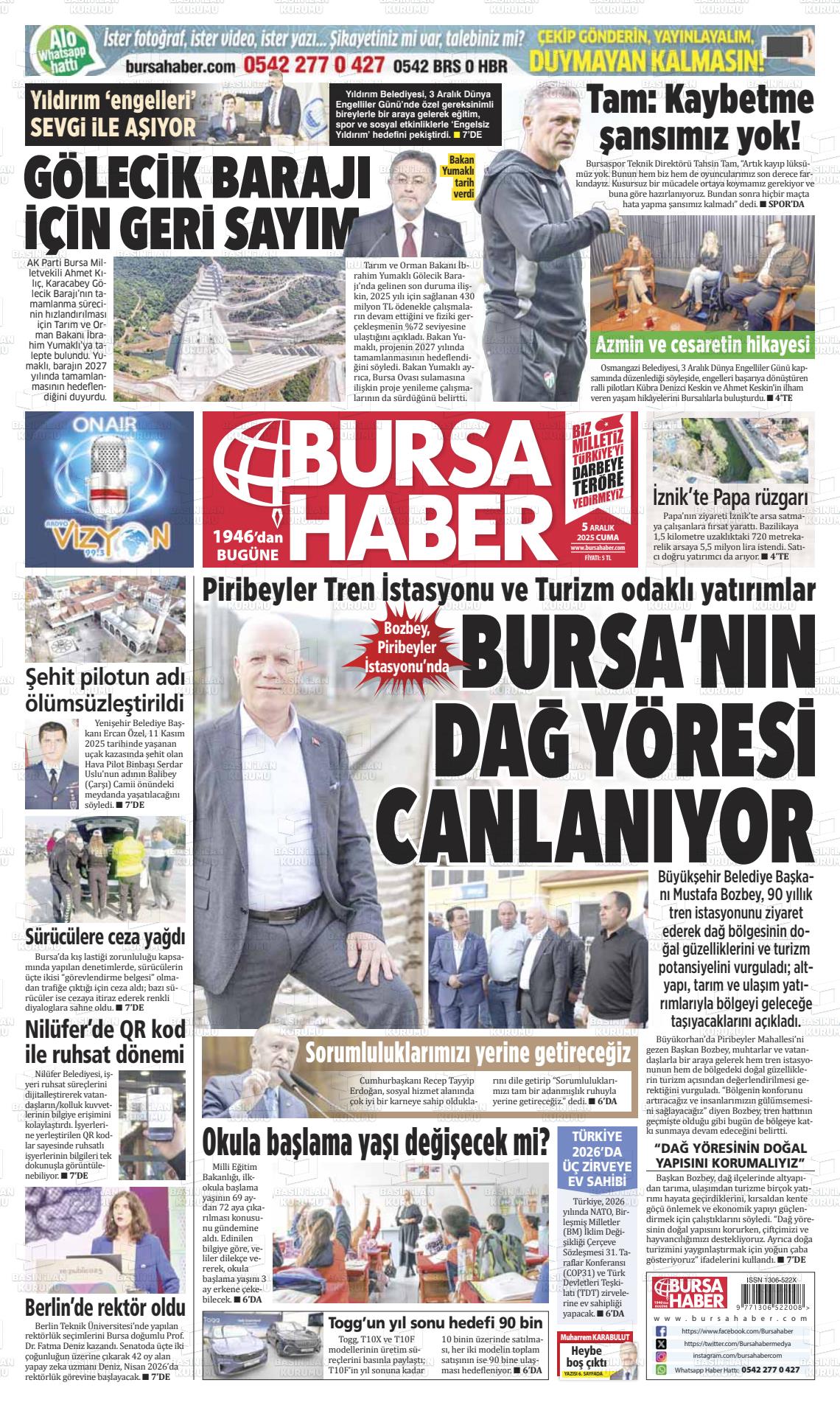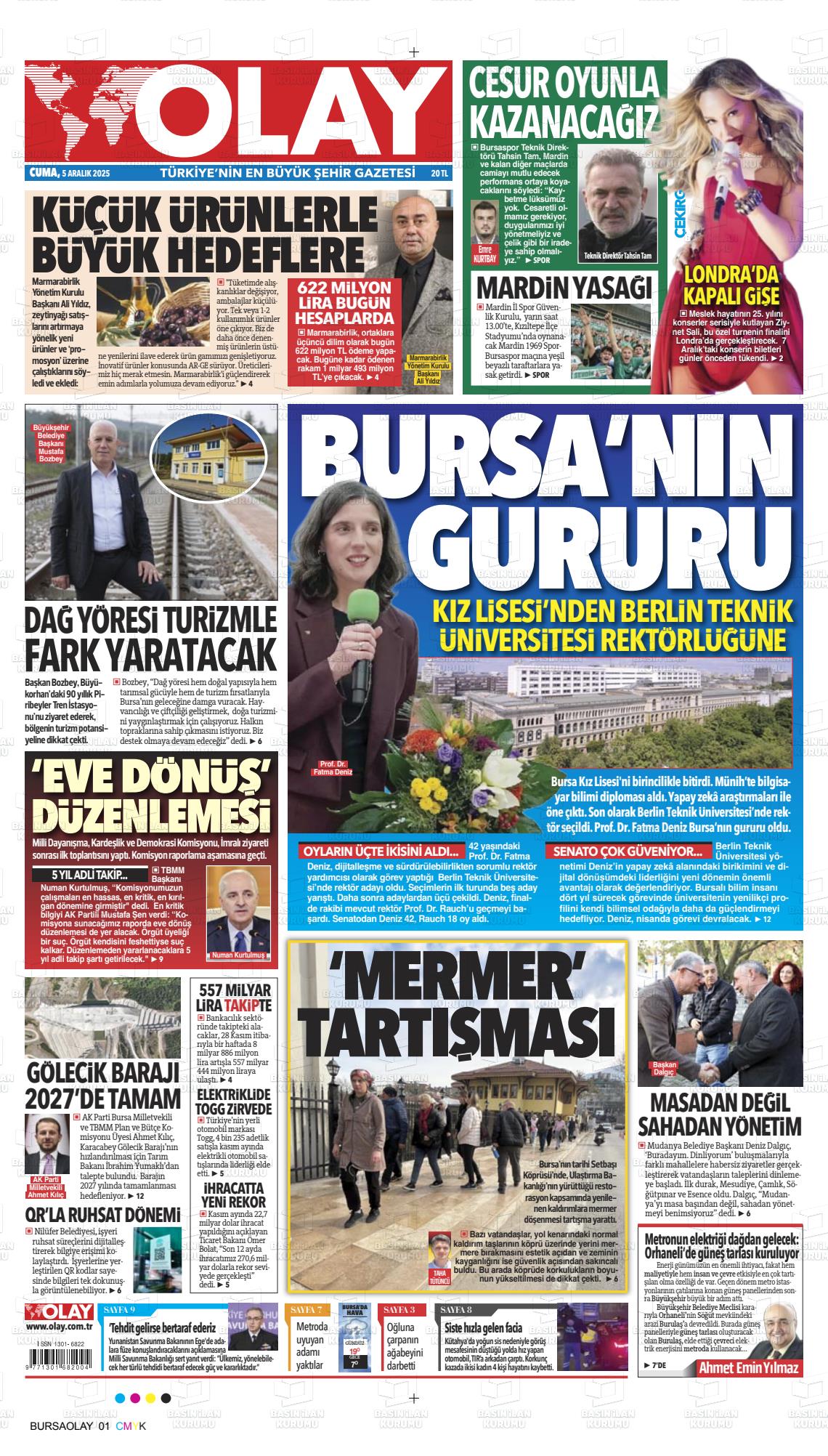 Bursa Yerel Gazeteleri 06 Nisan 2026, Pazartesi Günü Manşeti