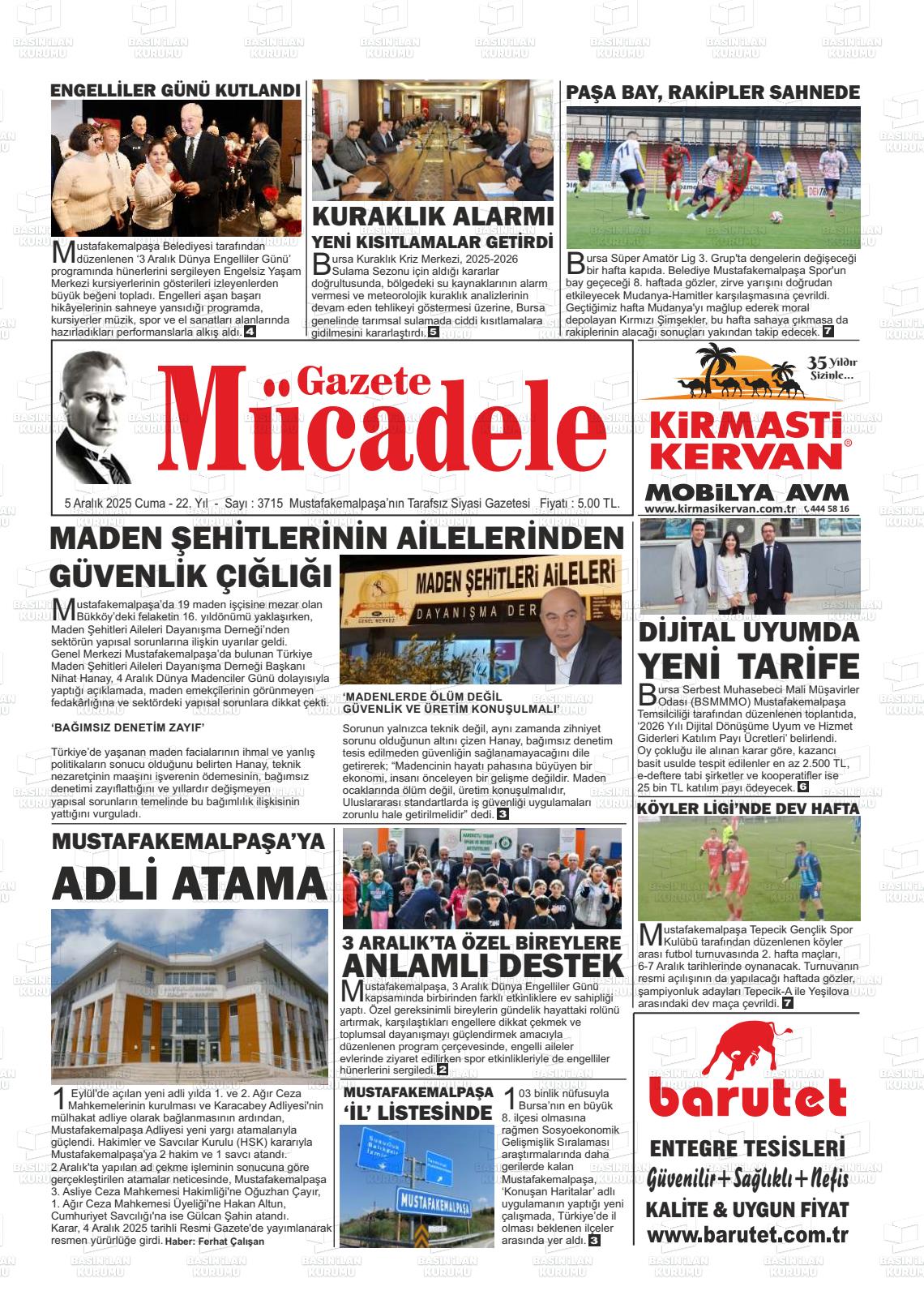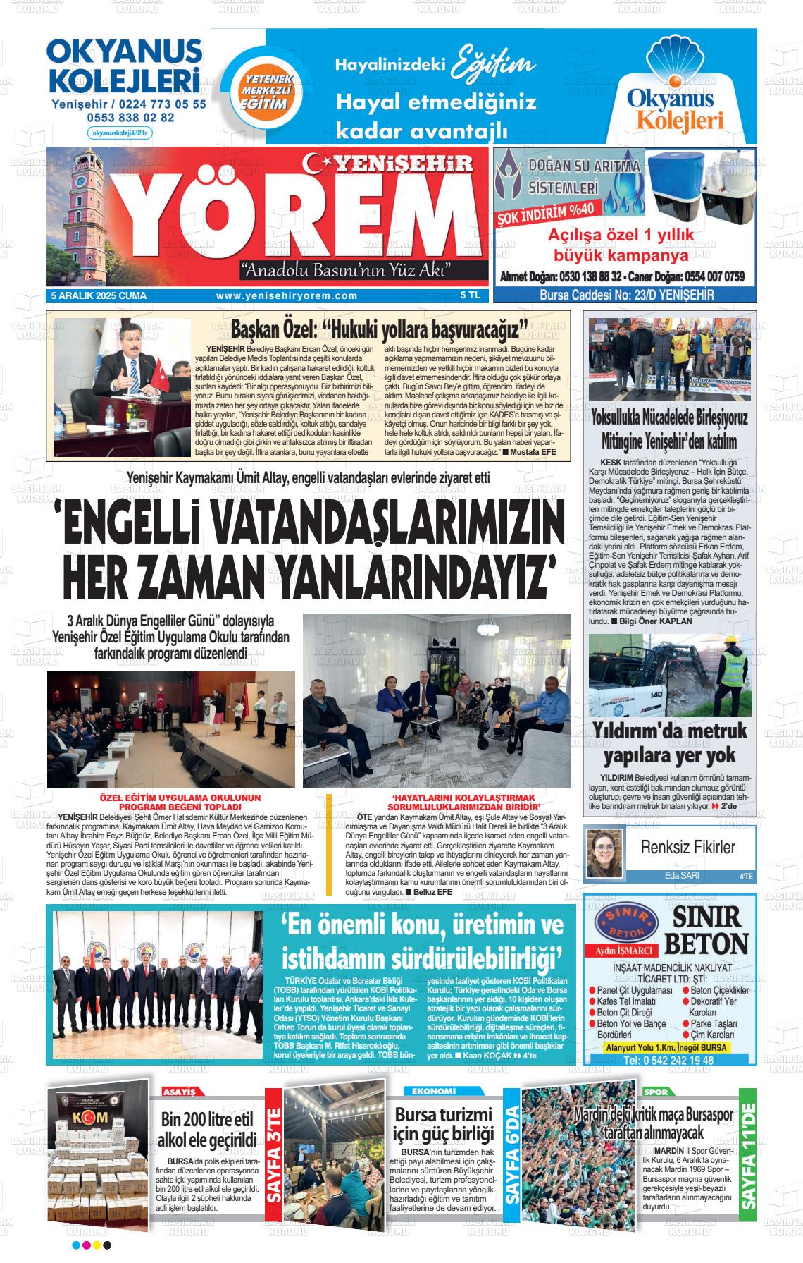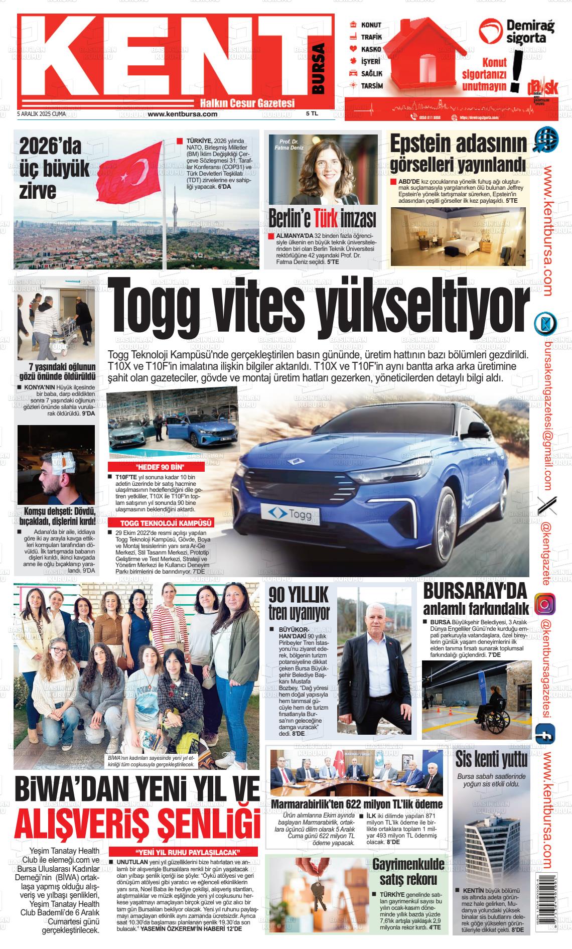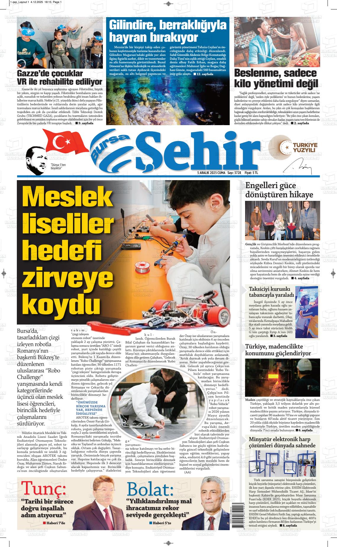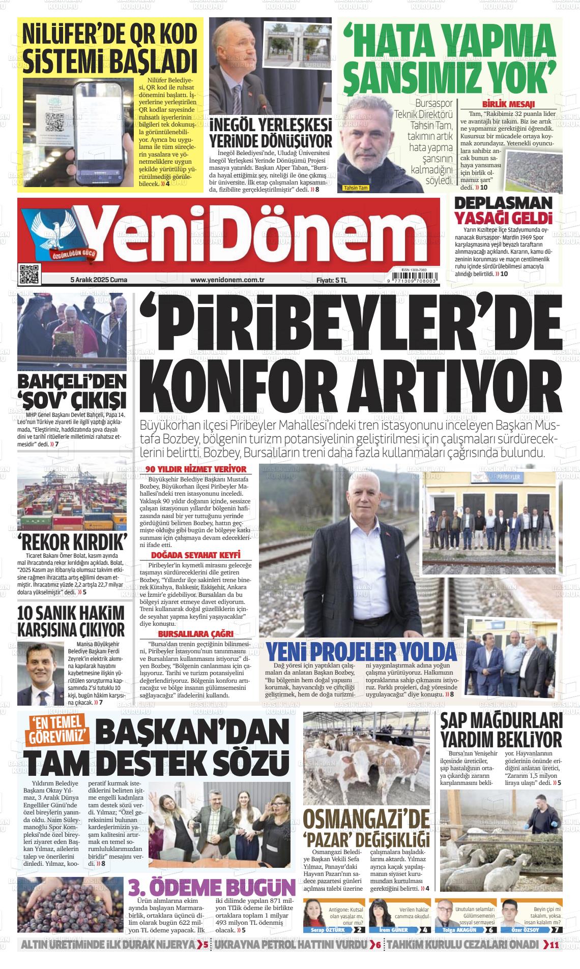 Bursa Yerel Gazeteleri 06 Nisan 2026, Pazartesi Günü Manşeti