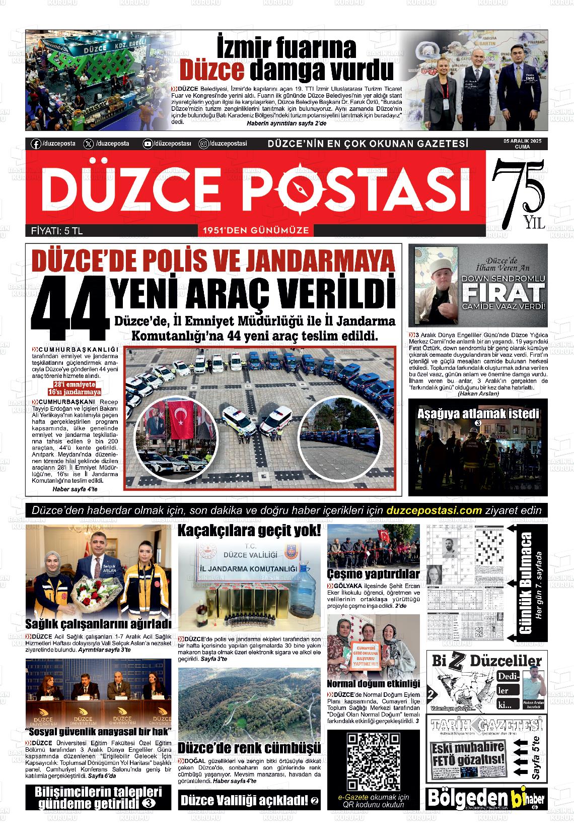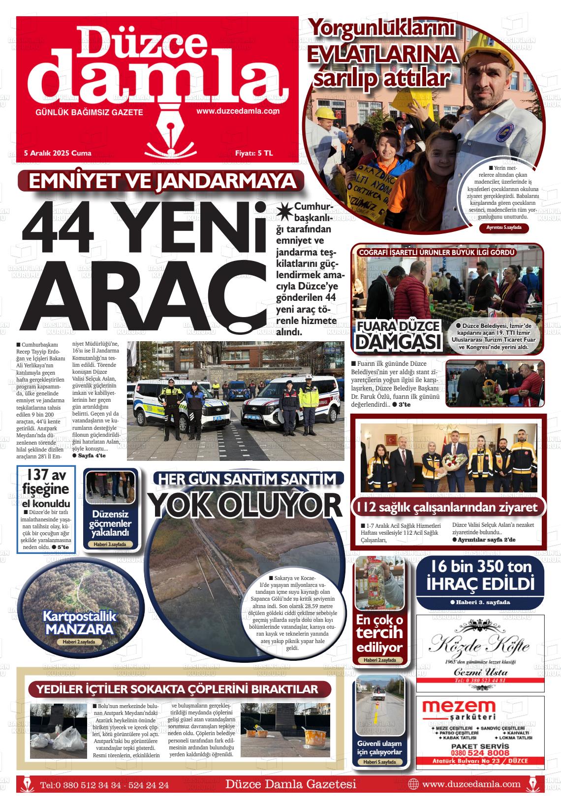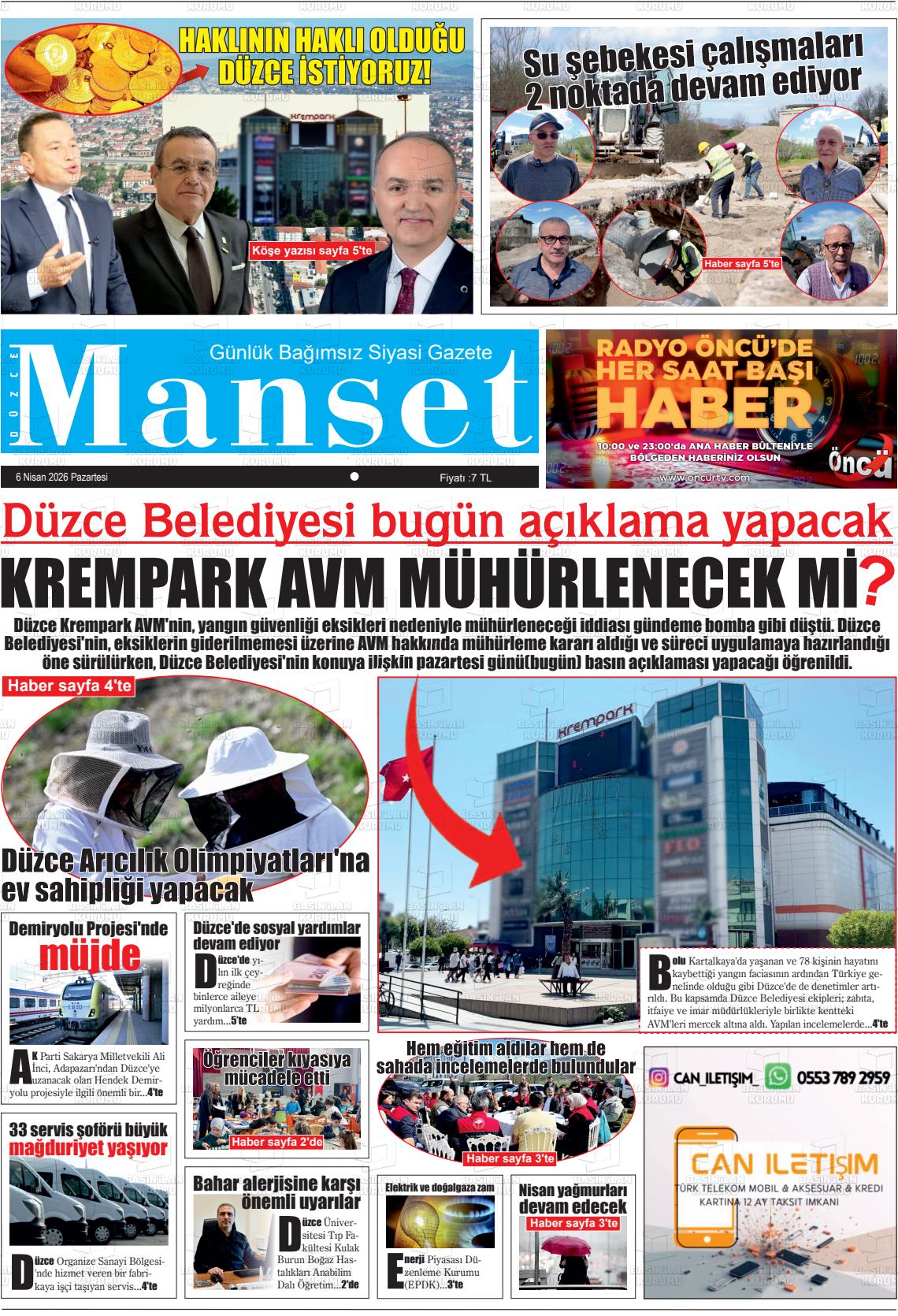 Düzce Yerel Gazeteleri 06 Nisan 2026, Pazartesi Günü Manşeti