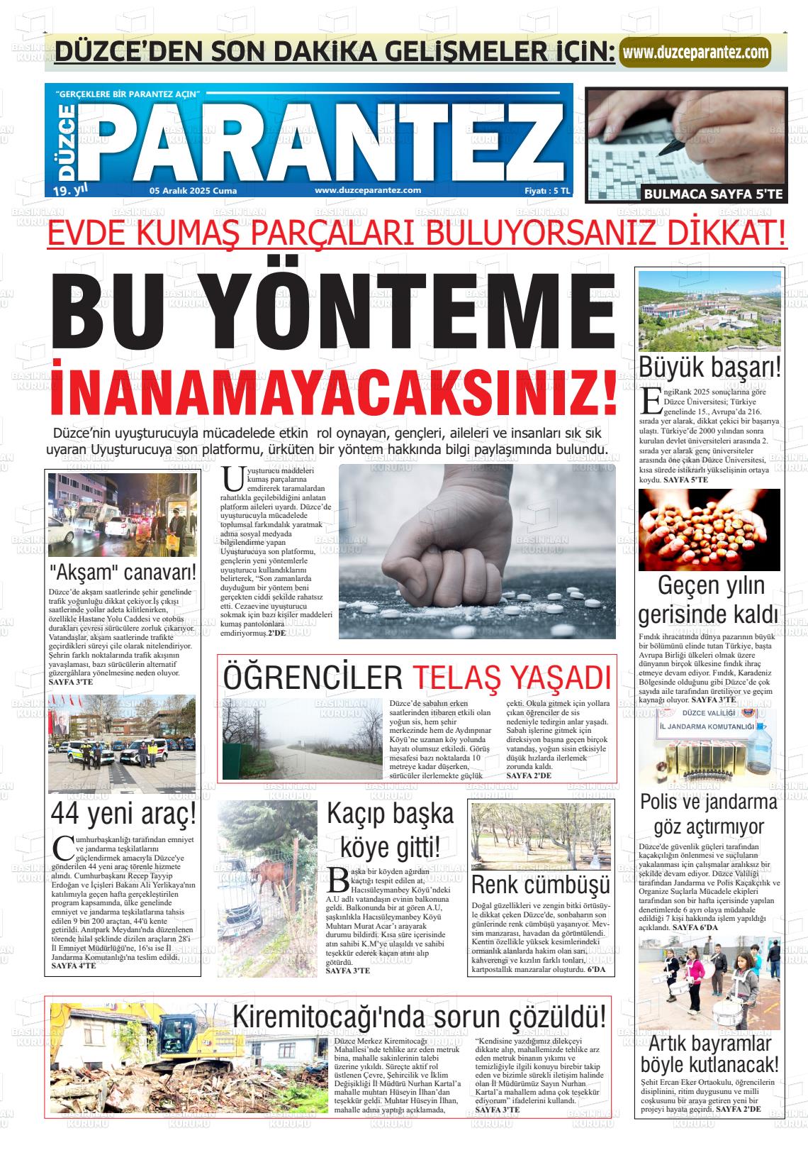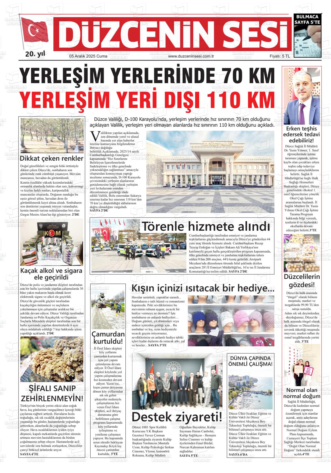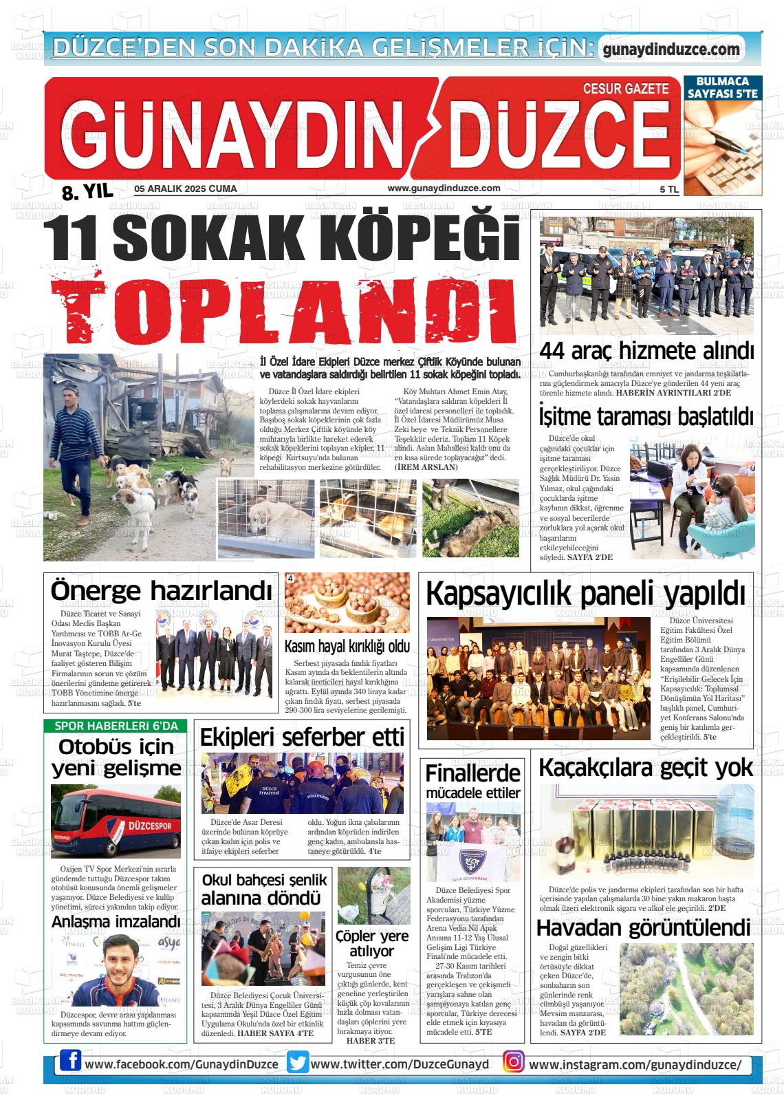 Düzce Yerel Gazeteleri 06 Nisan 2026, Pazartesi Günü Manşeti