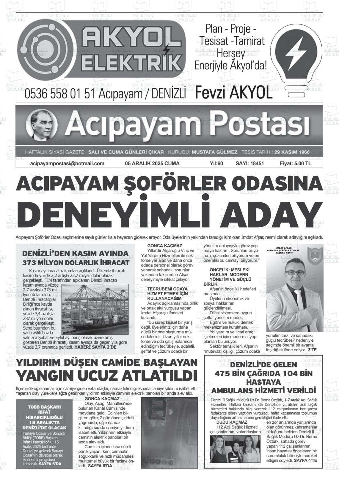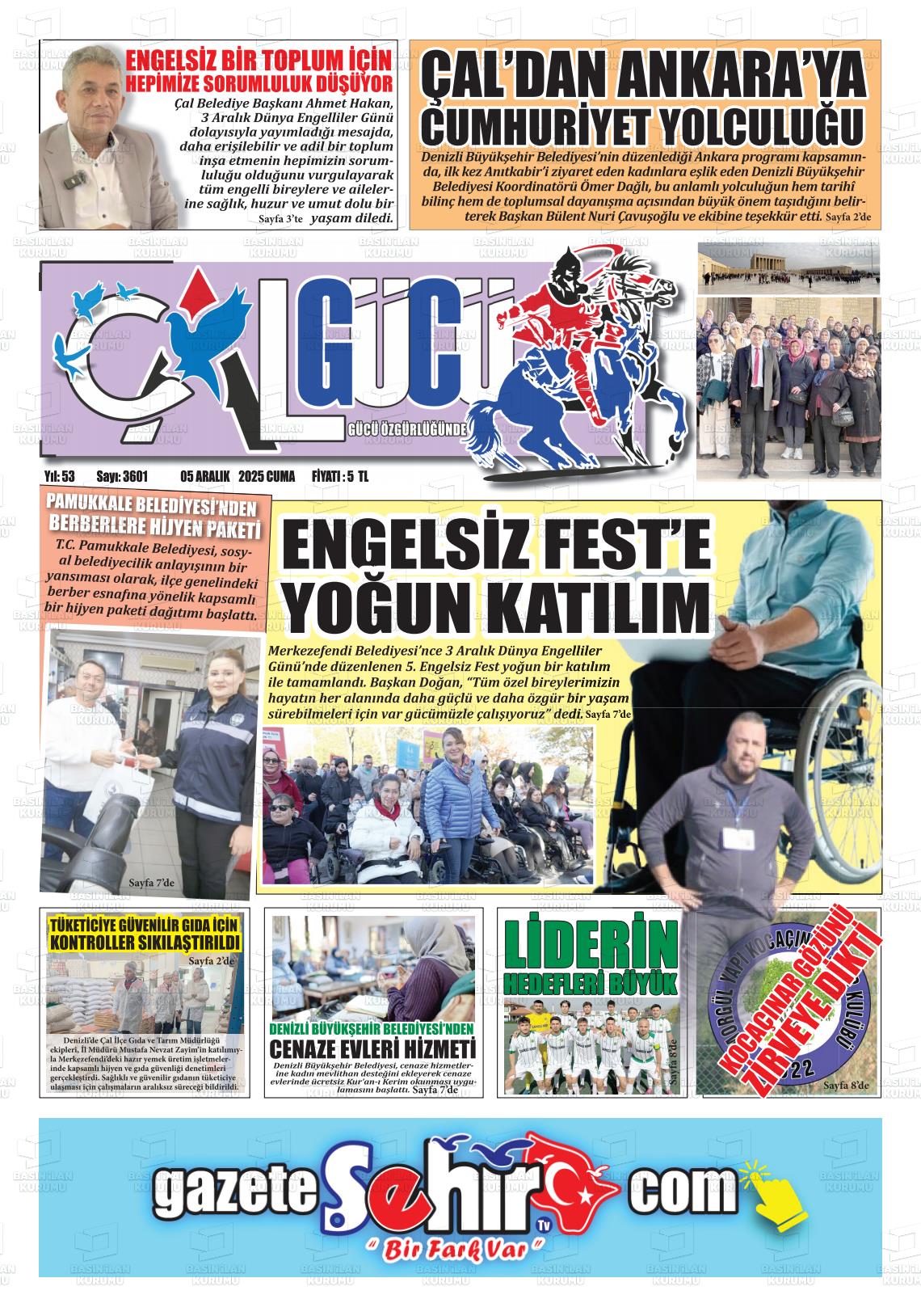 Denİzlİ Yerel Gazeteleri 05 Aralık 2025, Cuma Günü Manşeti