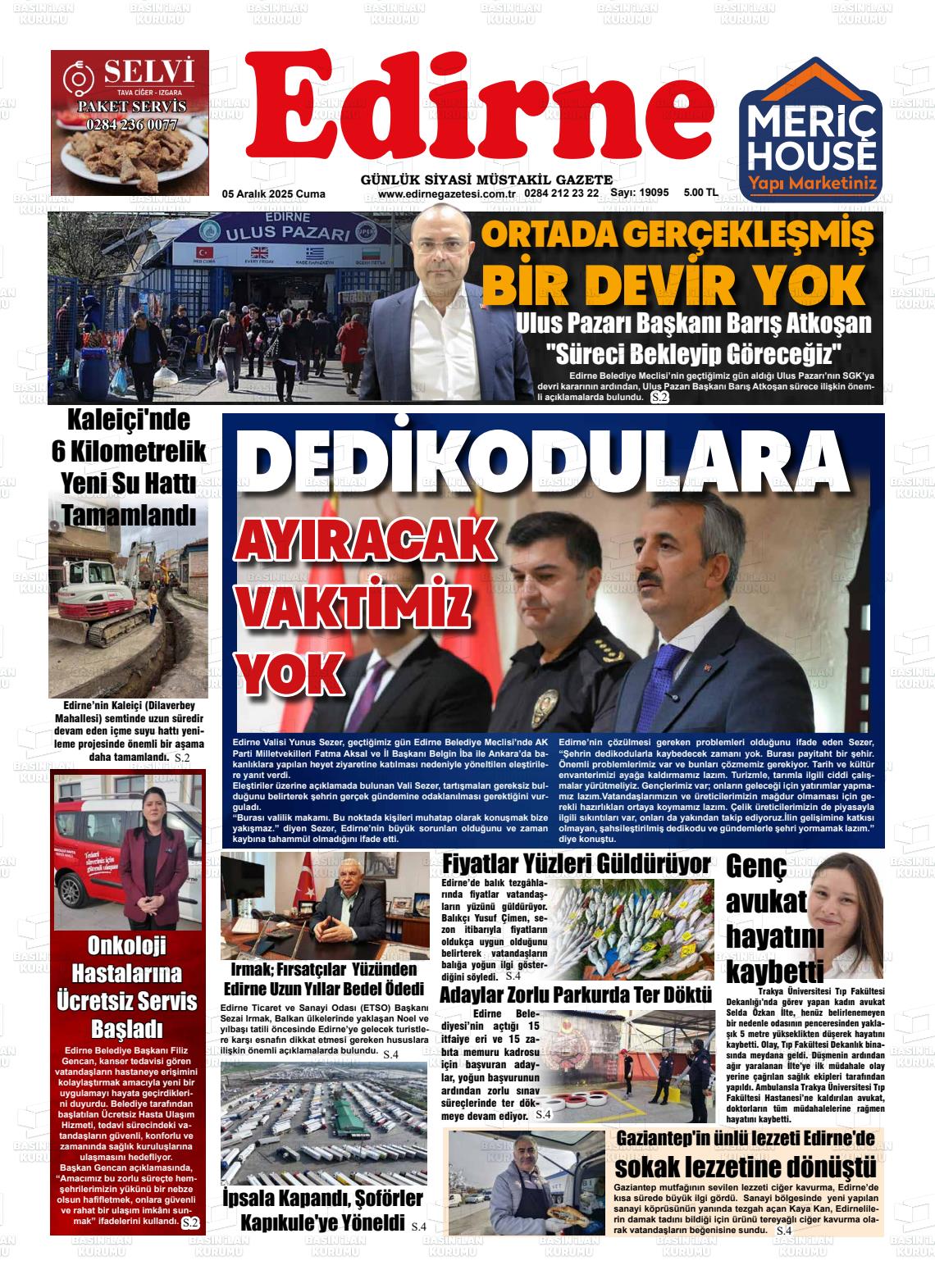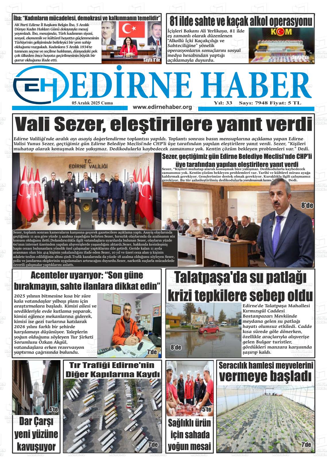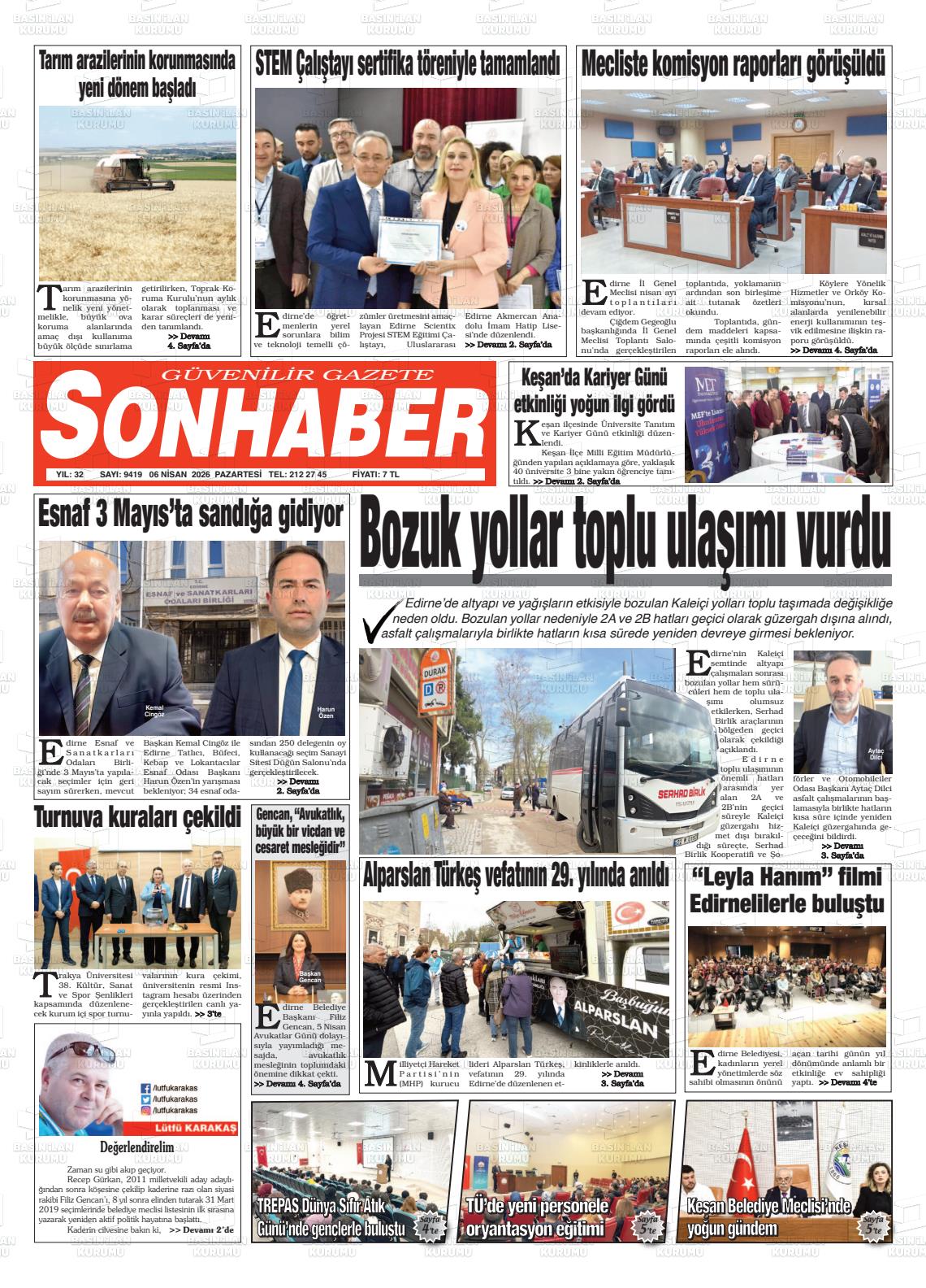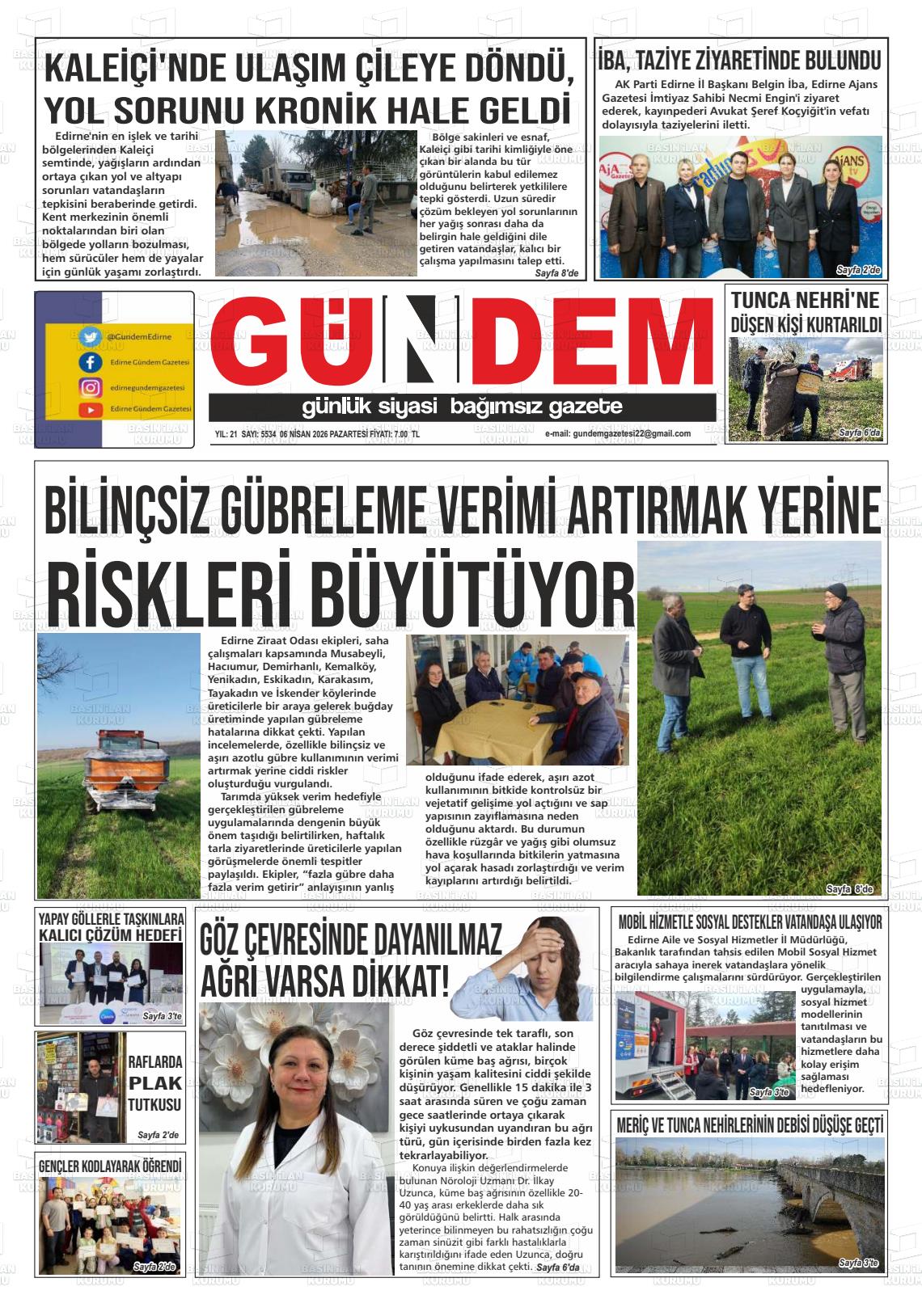 Edİrne Yerel Gazeteleri 06 Nisan 2026, Pazartesi Günü Manşeti