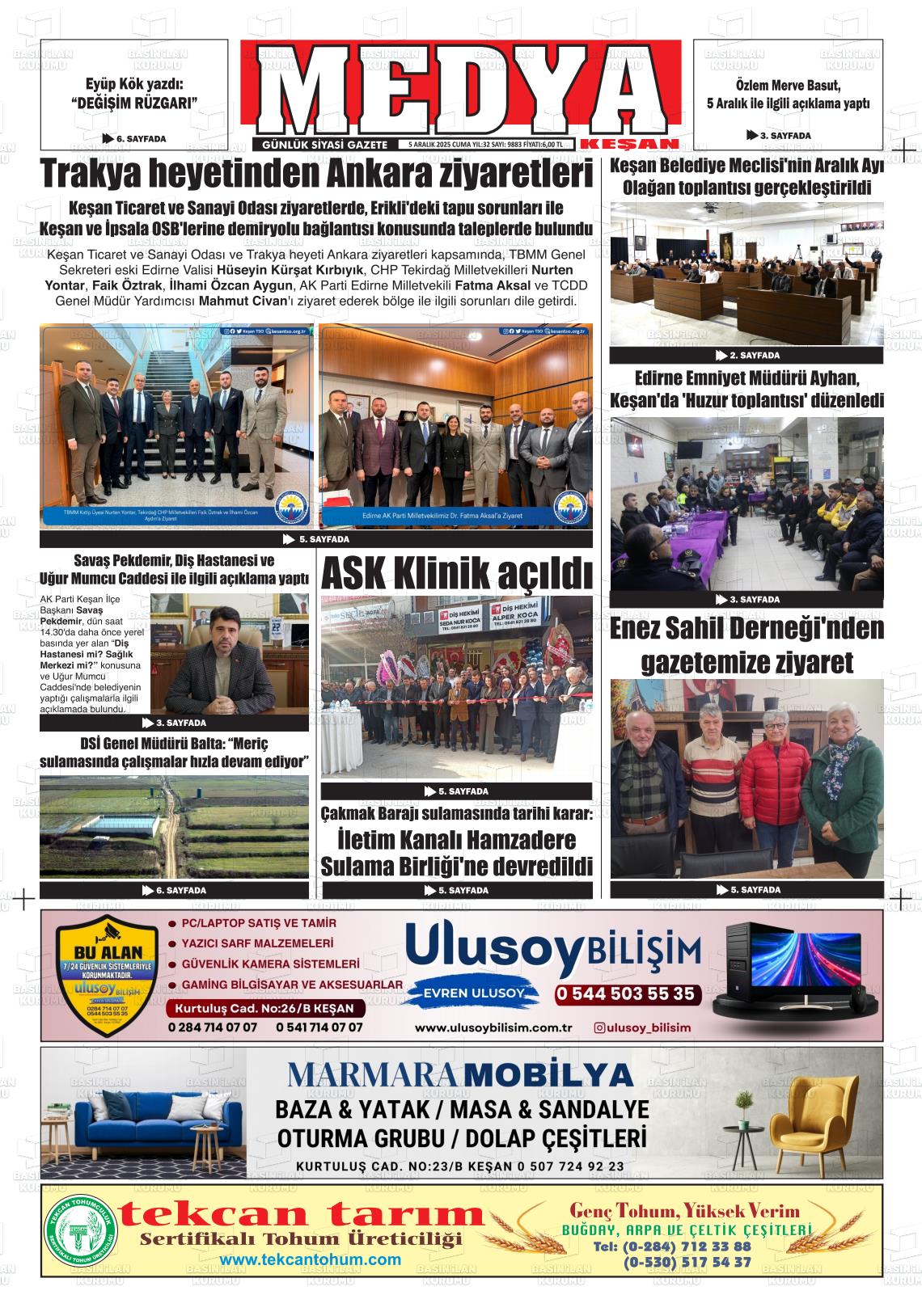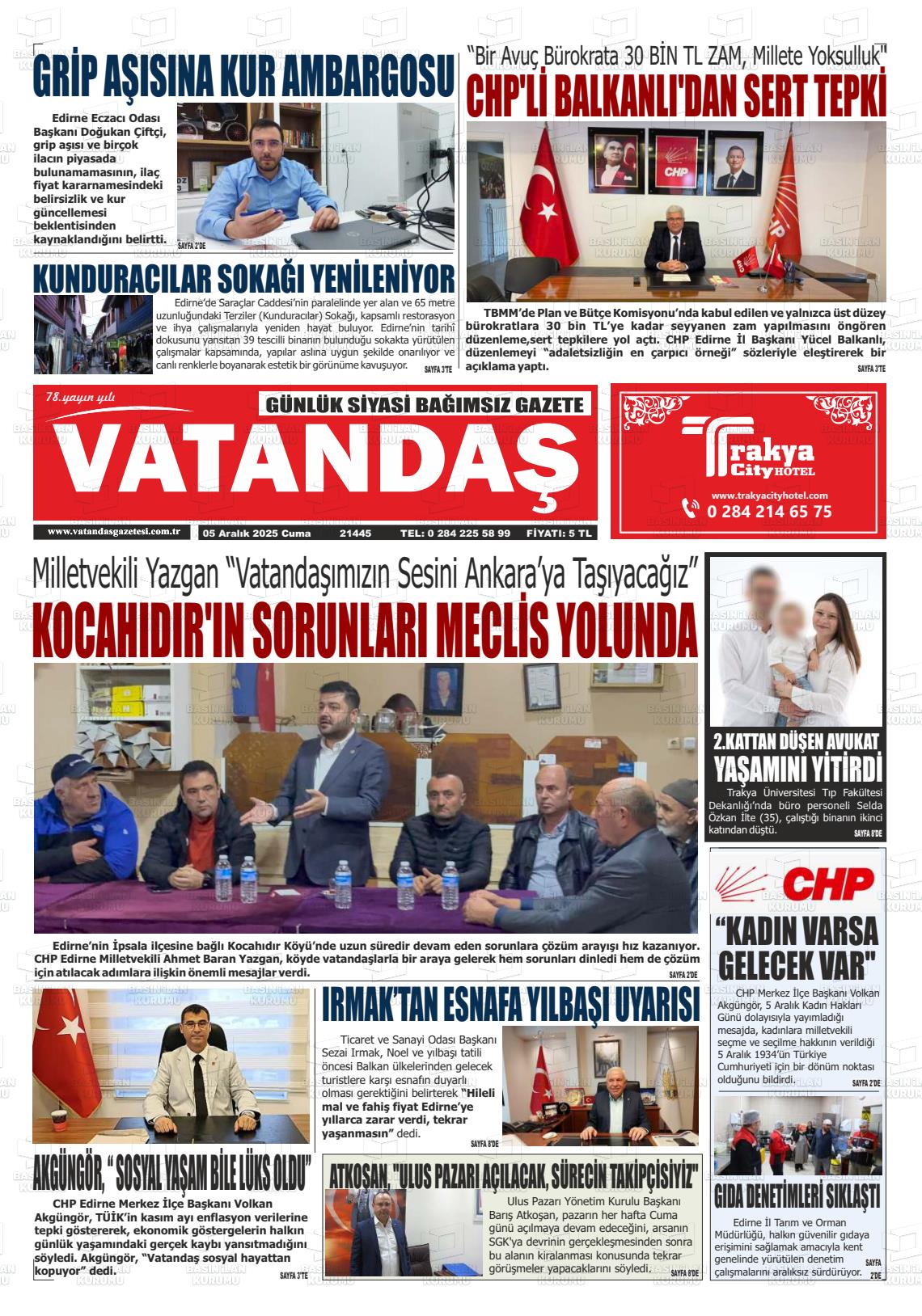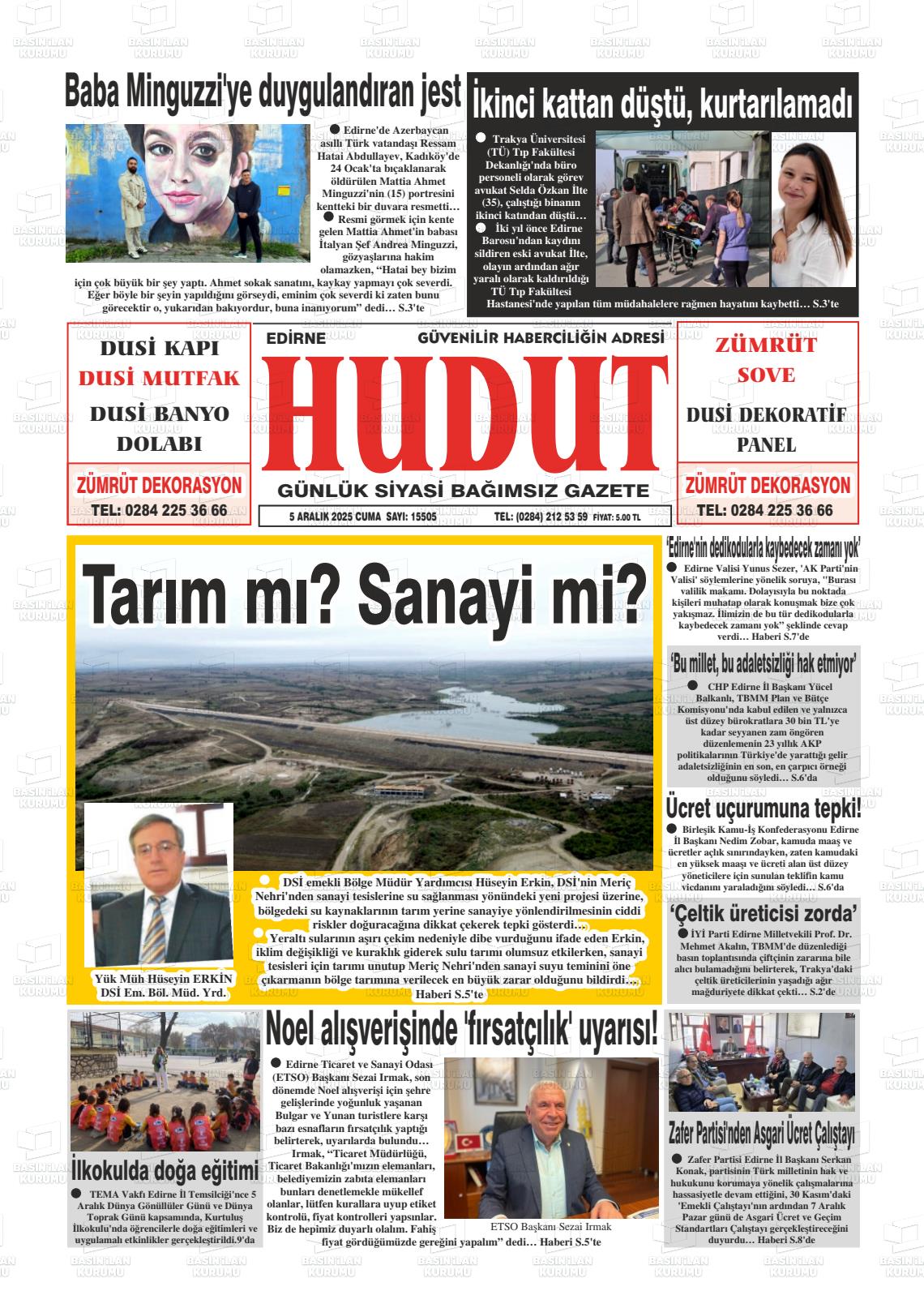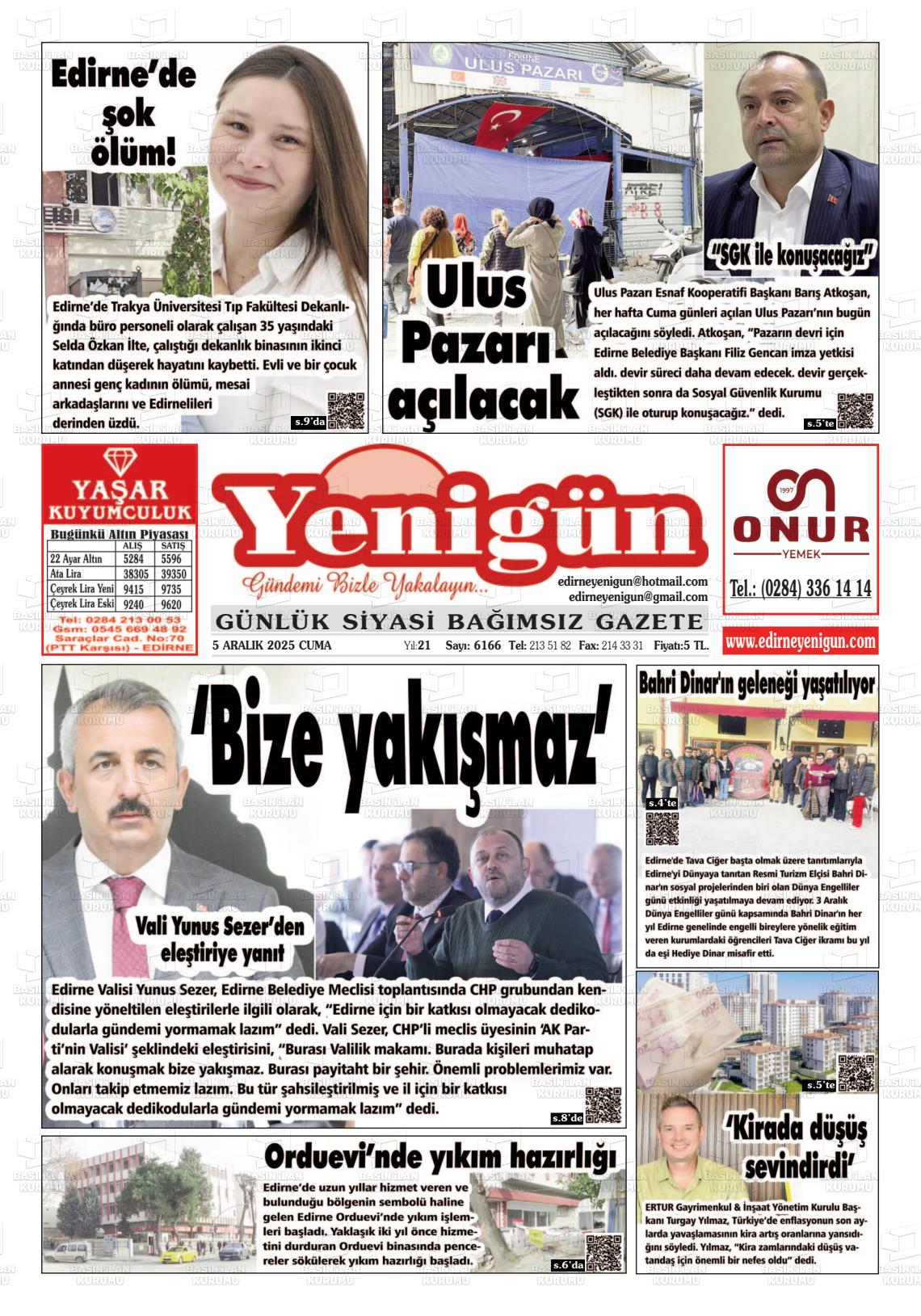 Edİrne Yerel Gazeteleri 06 Nisan 2026, Pazartesi Günü Manşeti
