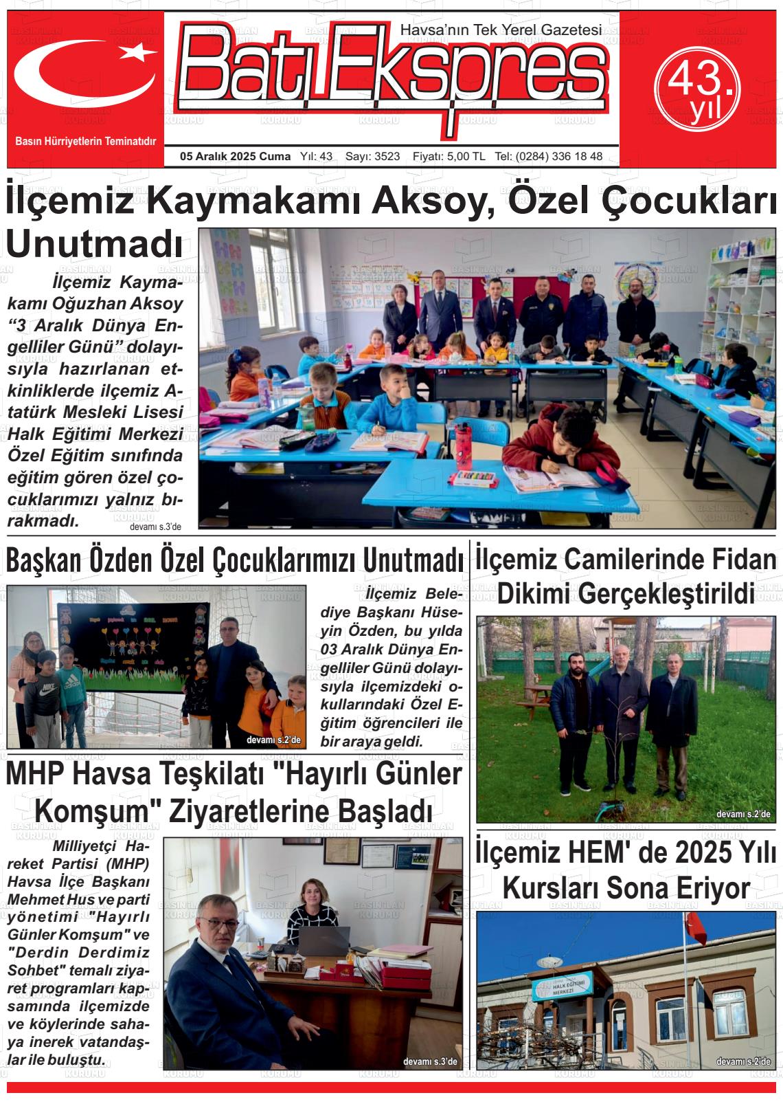 Edİrne Yerel Gazeteleri 05 Aralık 2025, Cuma Günü Manşeti