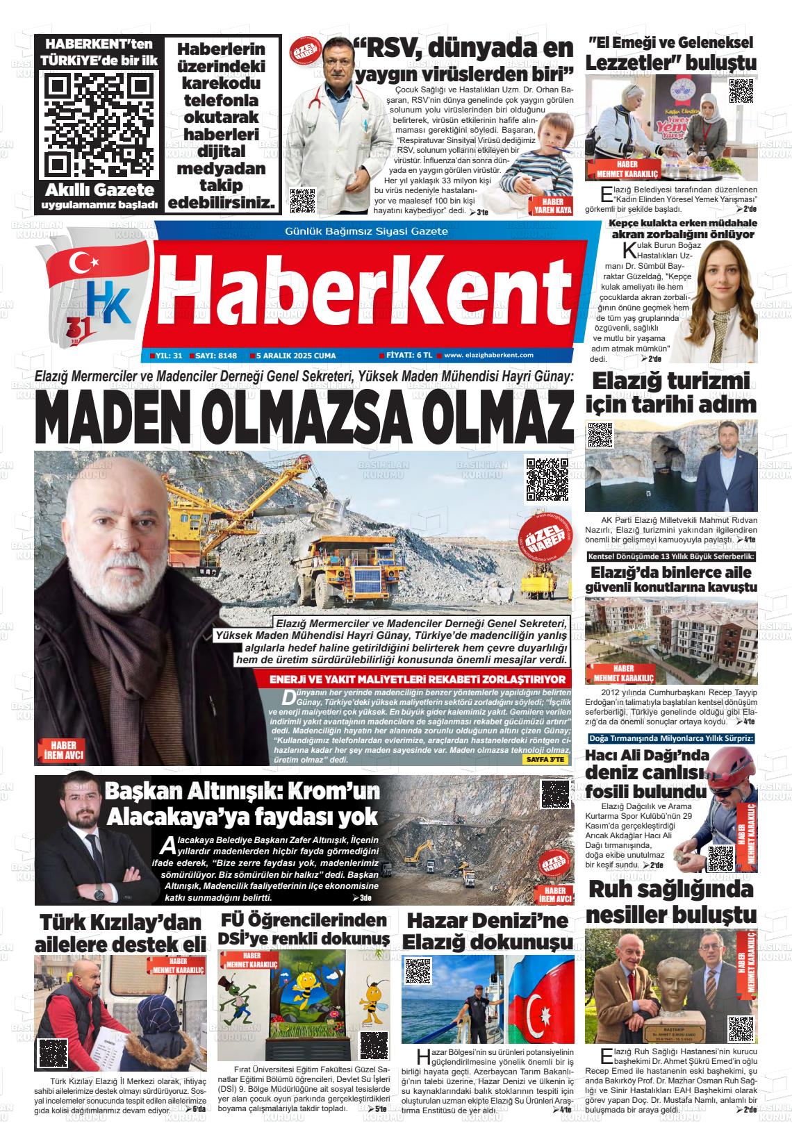 Elazığ Yerel Gazeteleri 06 Nisan 2026, Pazartesi Günü Manşeti