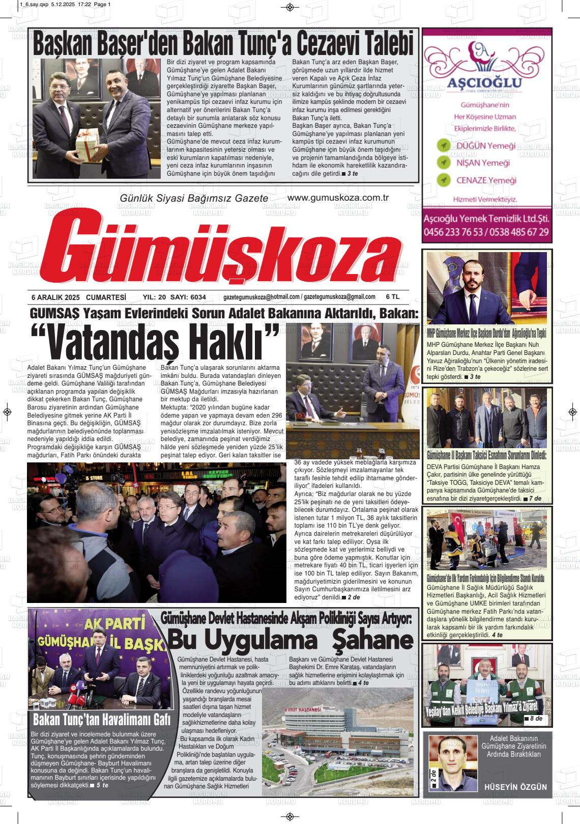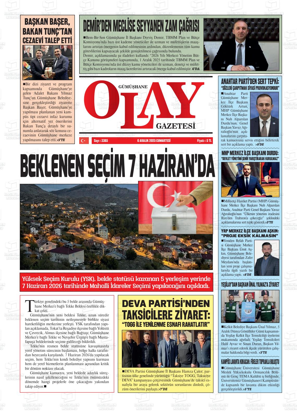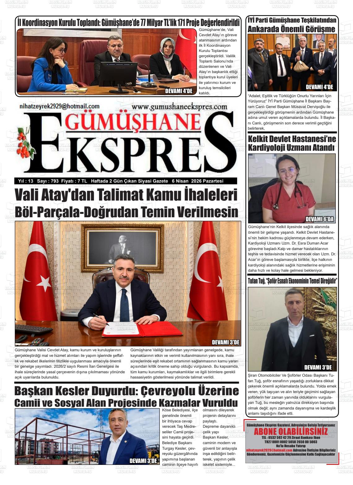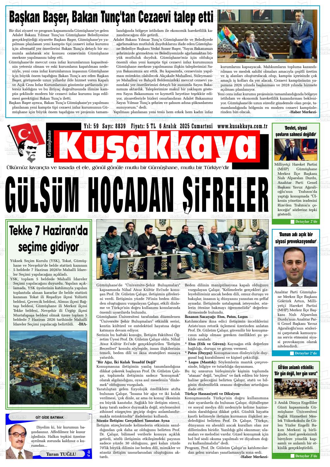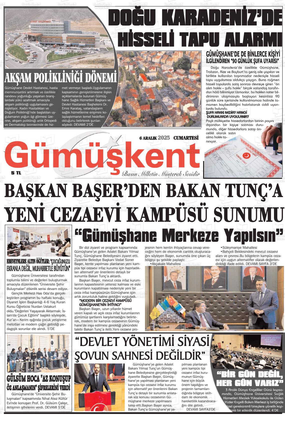 Gümüşhane Yerel Gazeteleri 06 Nisan 2026, Pazartesi Günü Manşeti