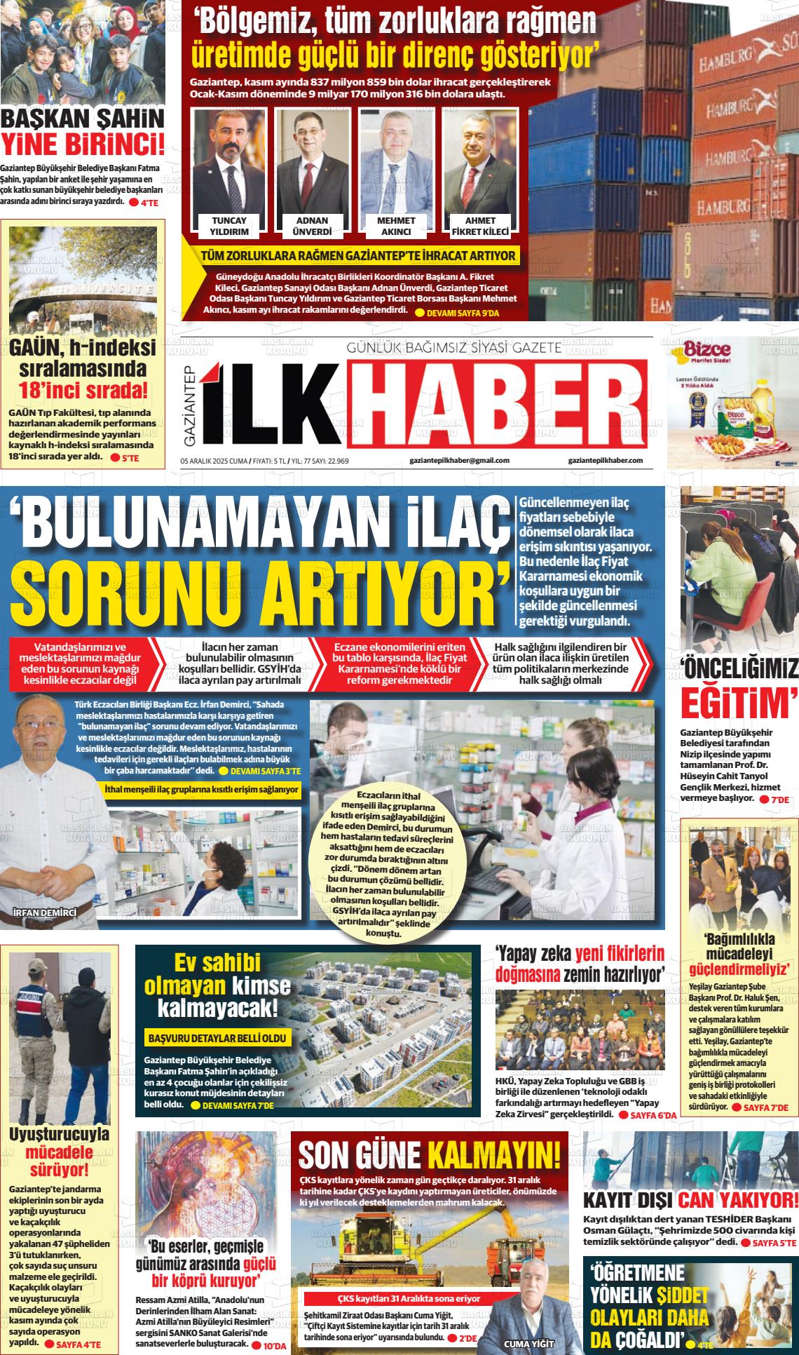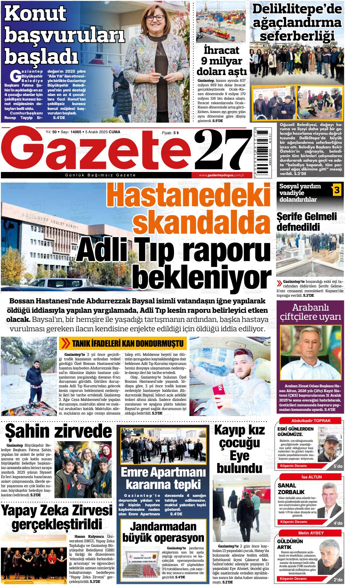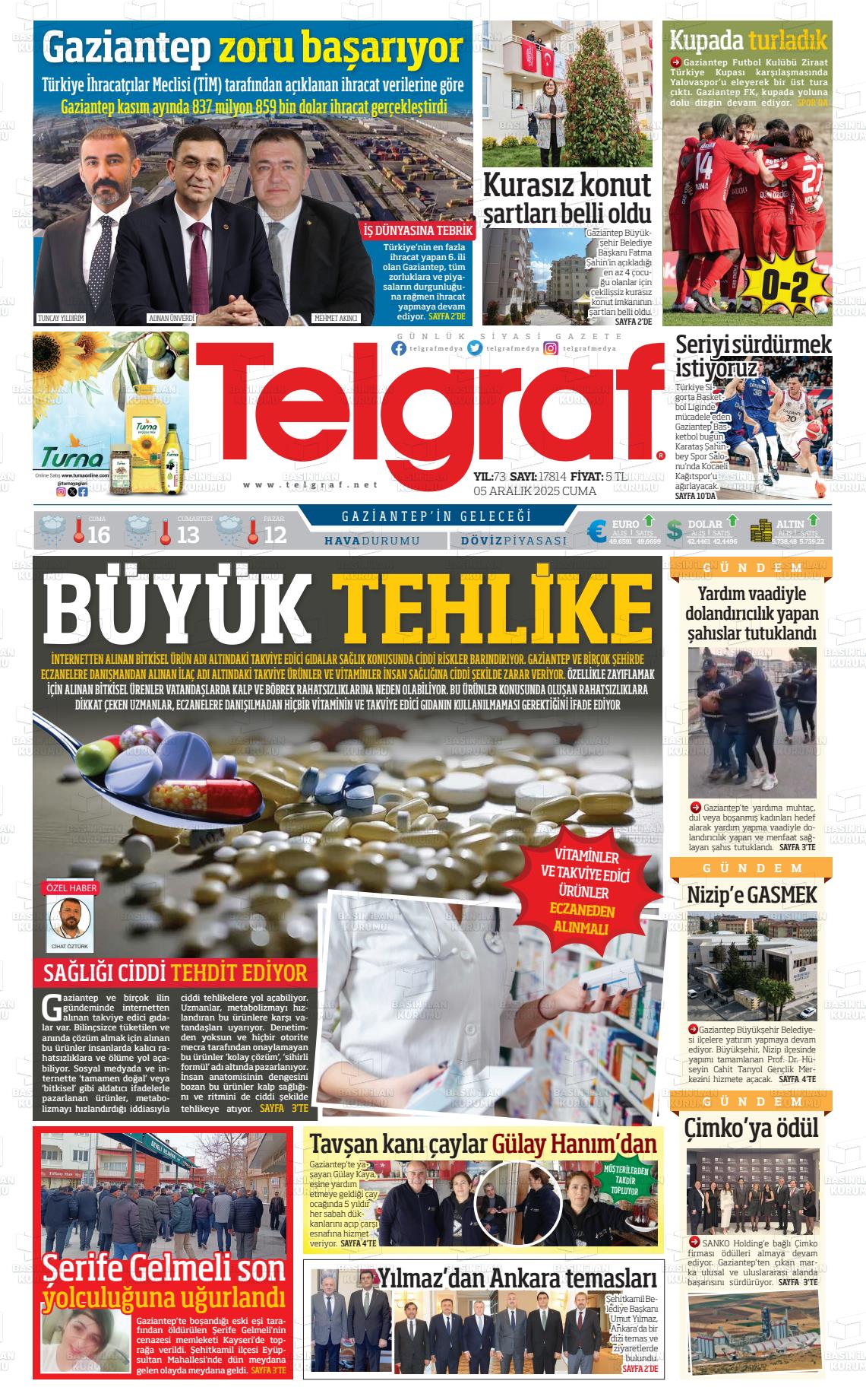 Gazİantep Yerel Gazeteleri 06 Nisan 2026, Pazartesi Günü Manşeti