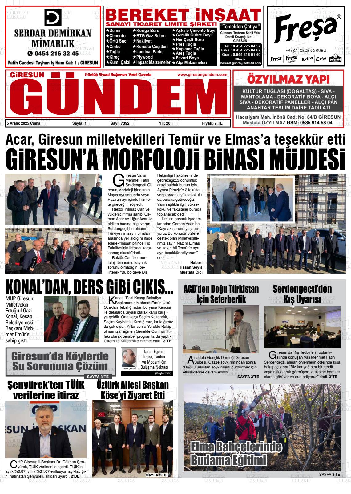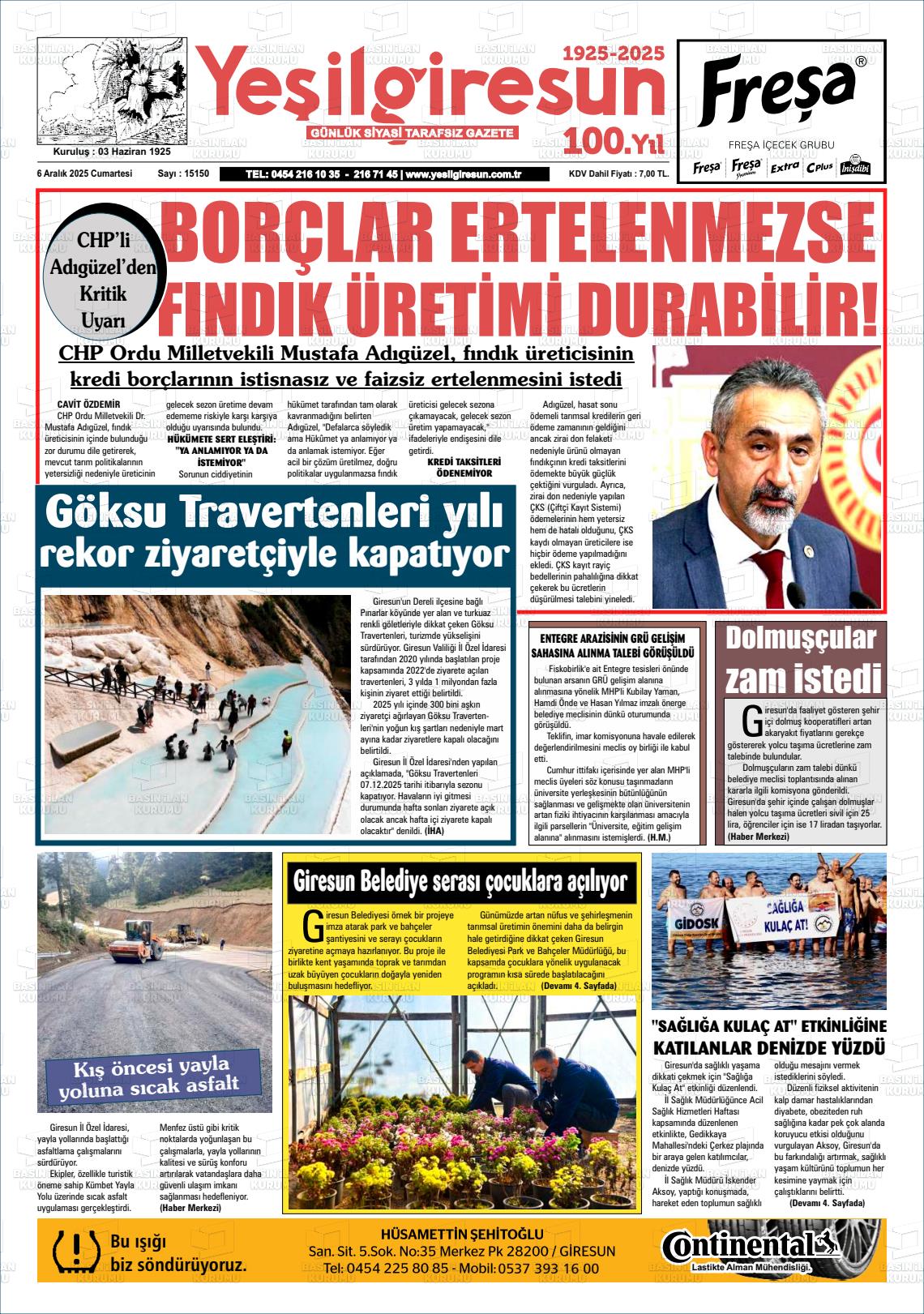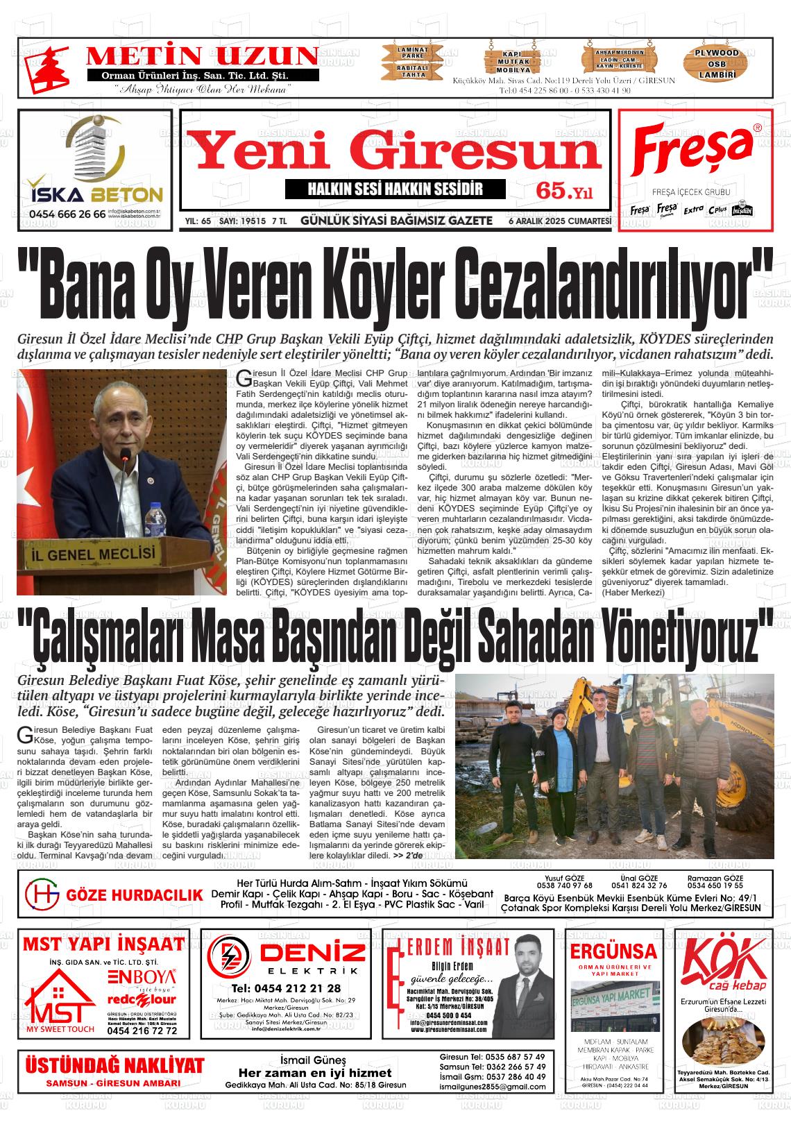 Gİresun Yerel Gazeteleri 06 Nisan 2026, Pazartesi Günü Manşeti