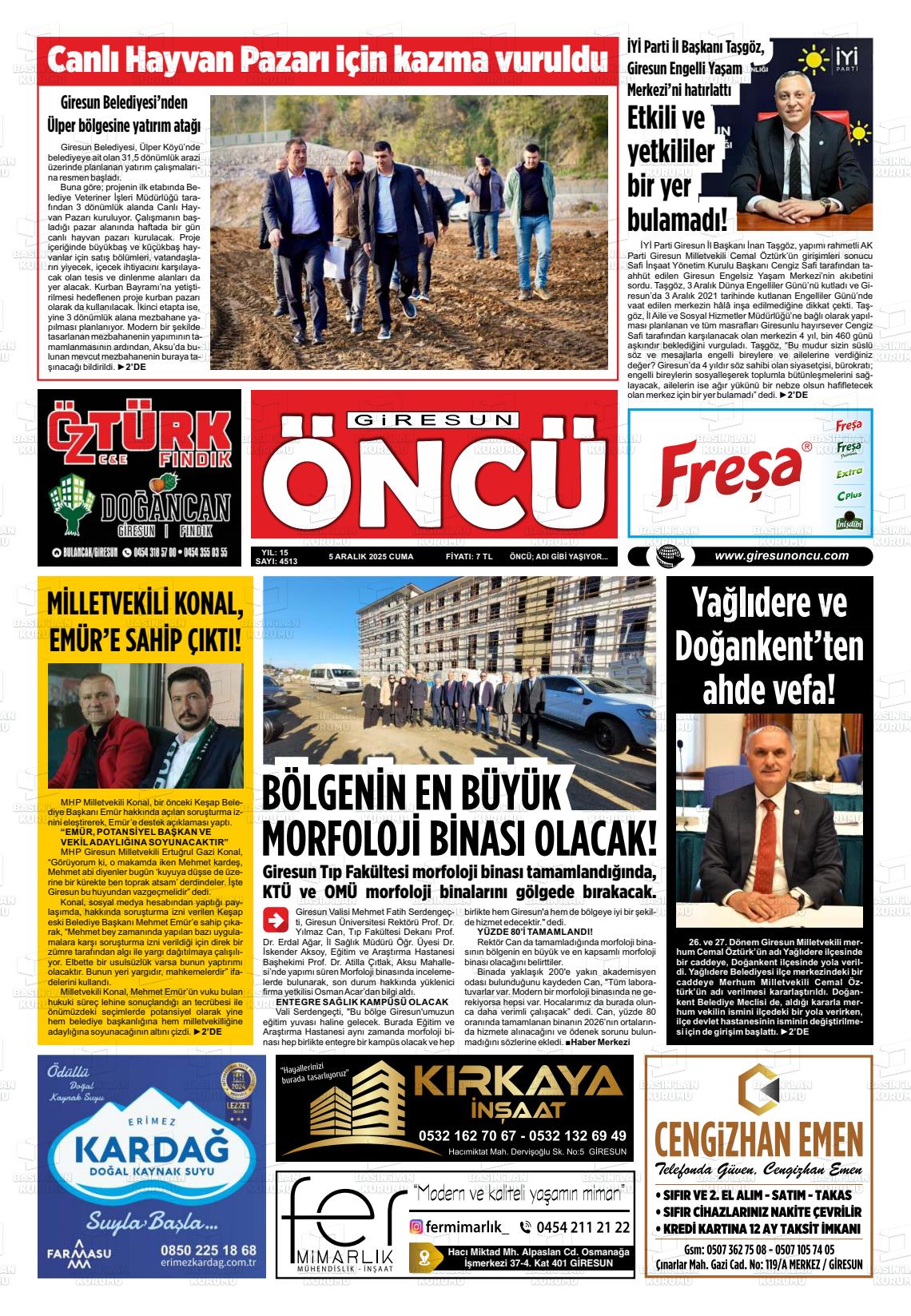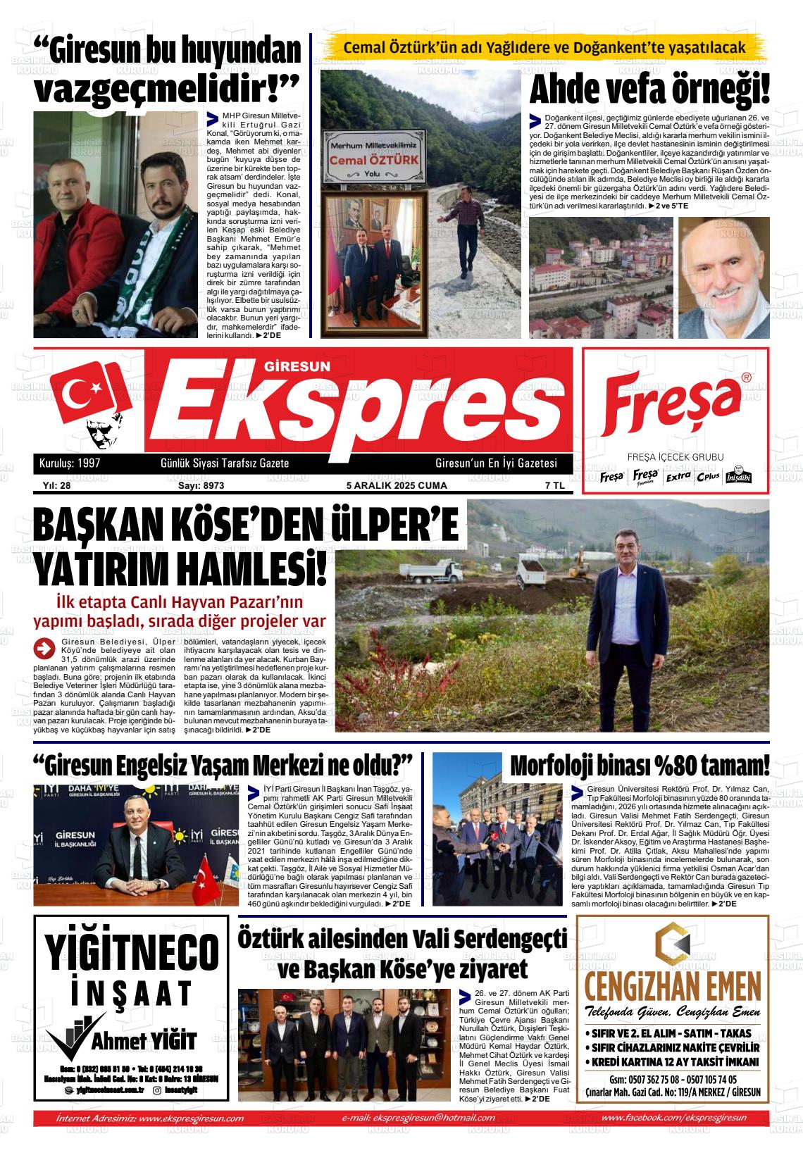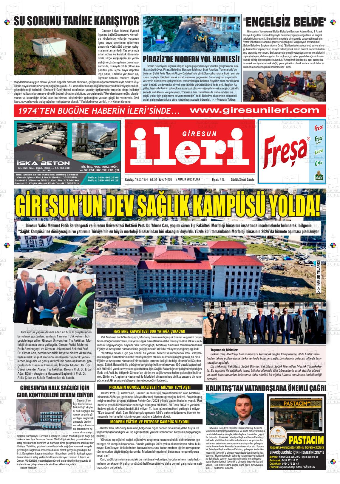 Gİresun Yerel Gazeteleri 06 Nisan 2026, Pazartesi Günü Manşeti