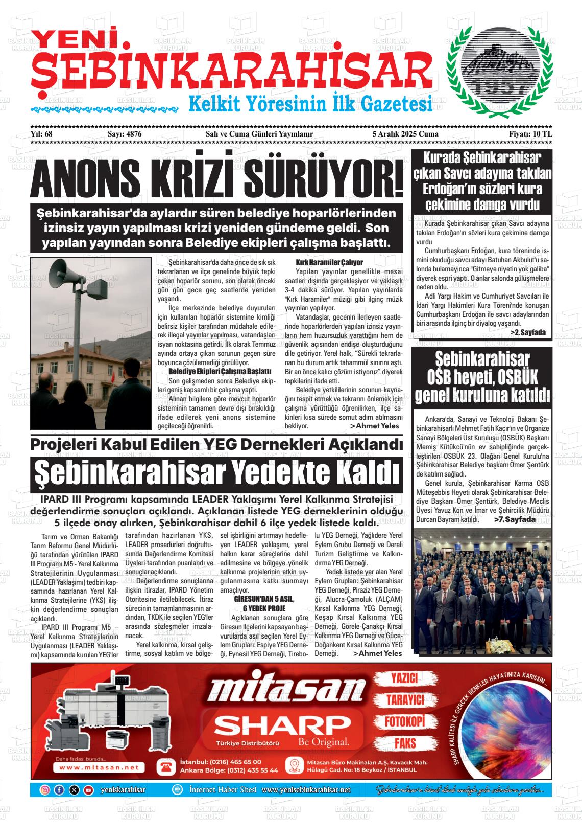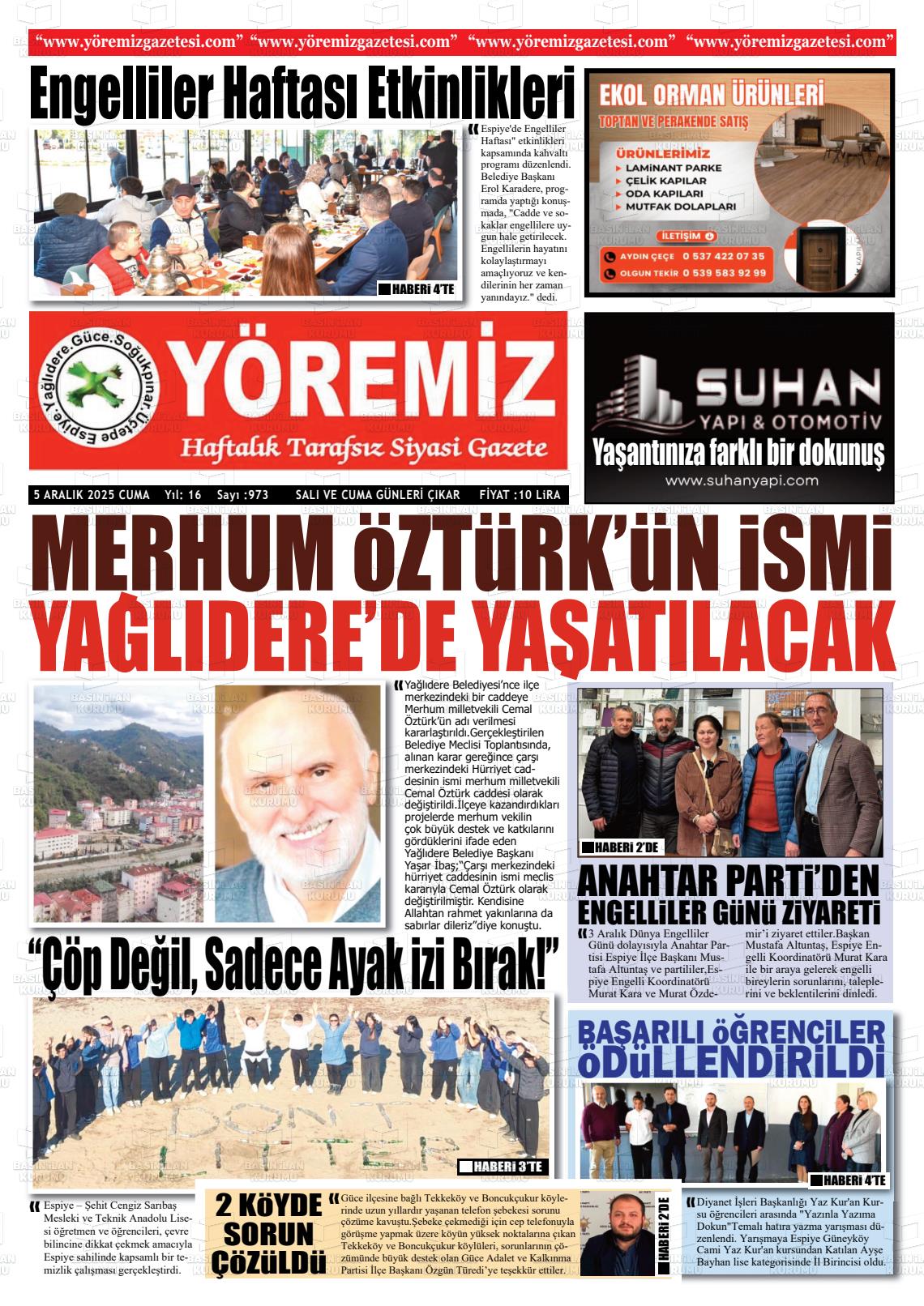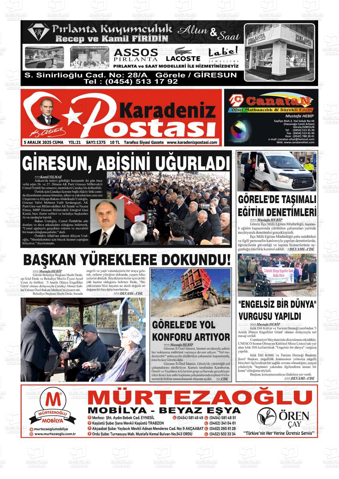 Gİresun Yerel Gazeteleri 05 Aralık 2025, Cuma Günü Manşeti