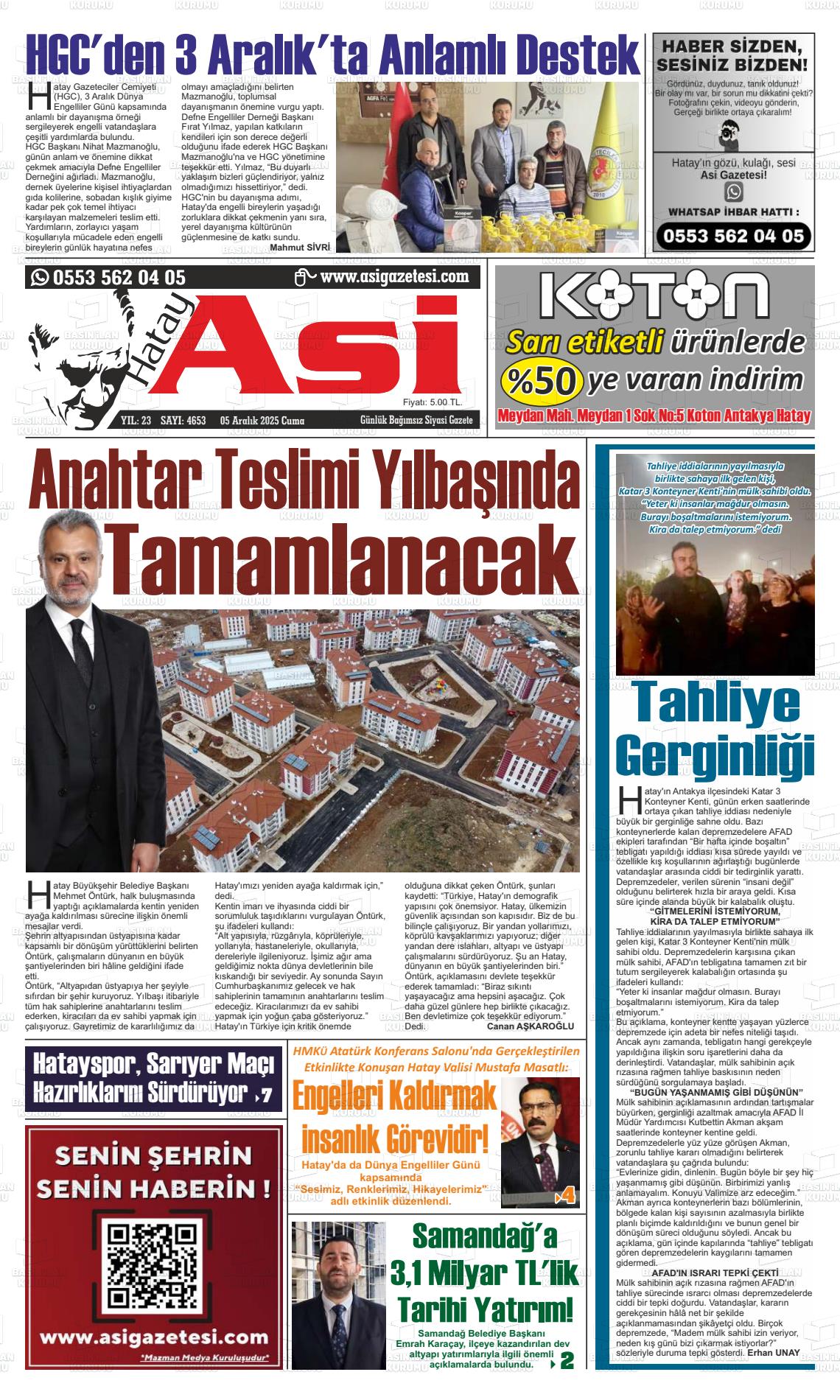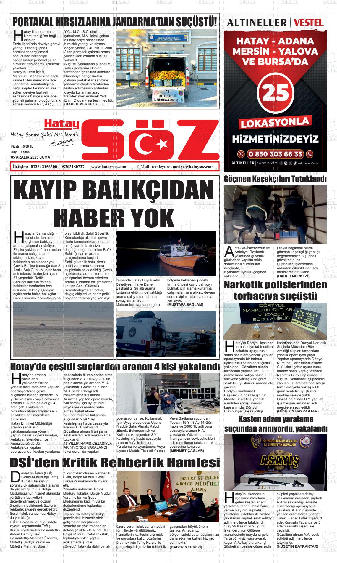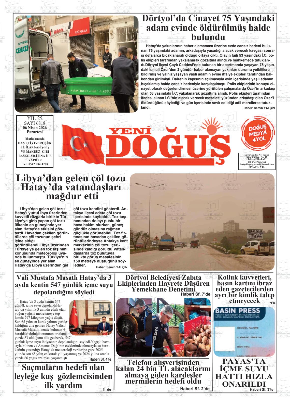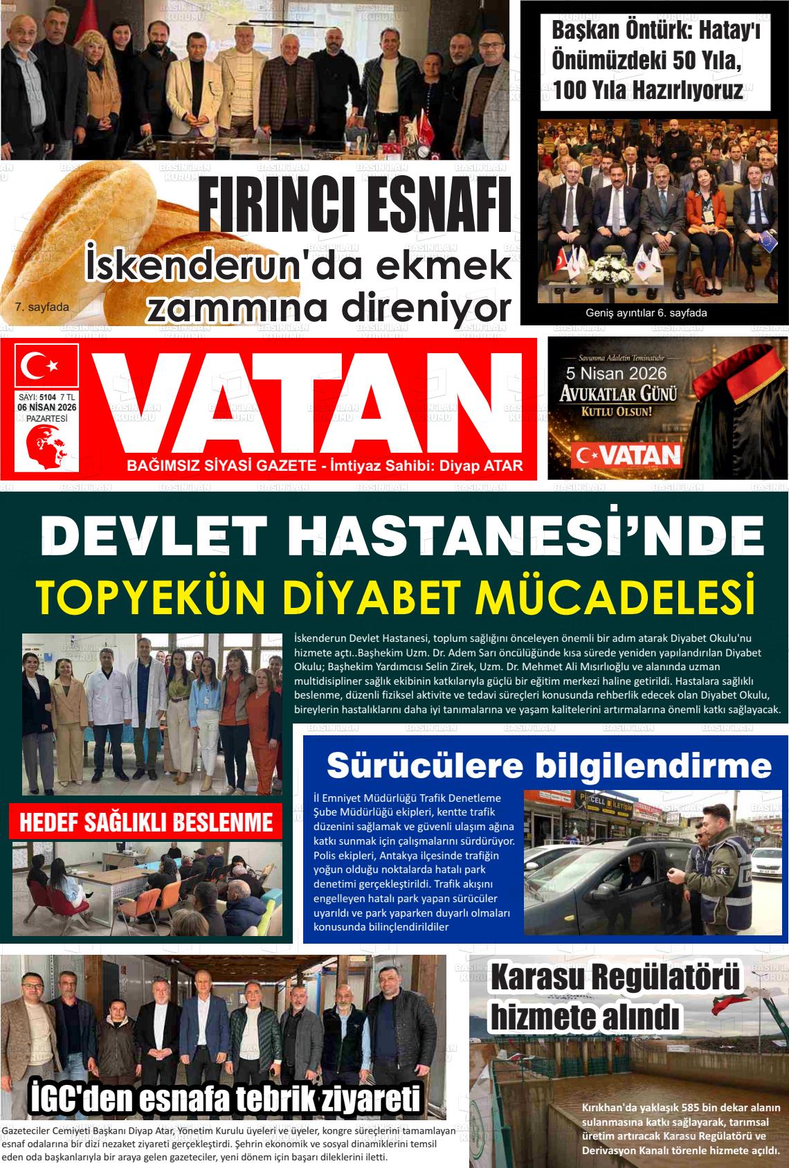Hatay Yerel Gazeteleri 06 Nisan 2026, Pazartesi Günü Manşeti