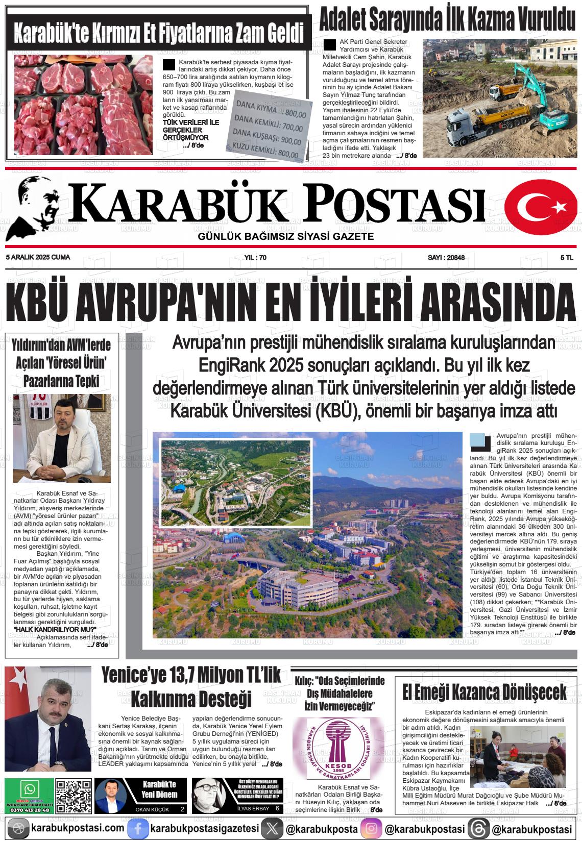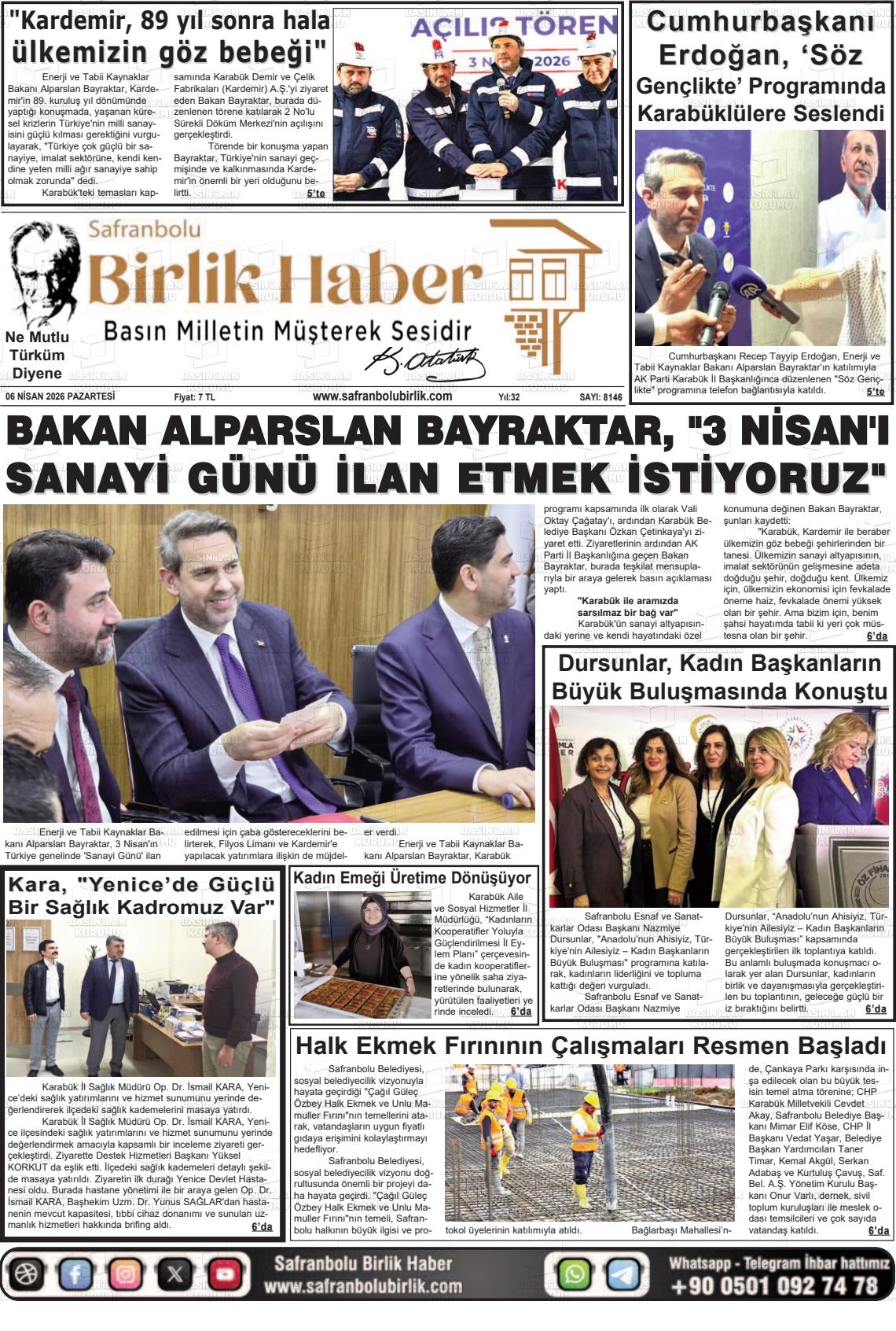 Karabük Yerel Gazeteleri 06 Nisan 2026, Pazartesi Günü Manşeti