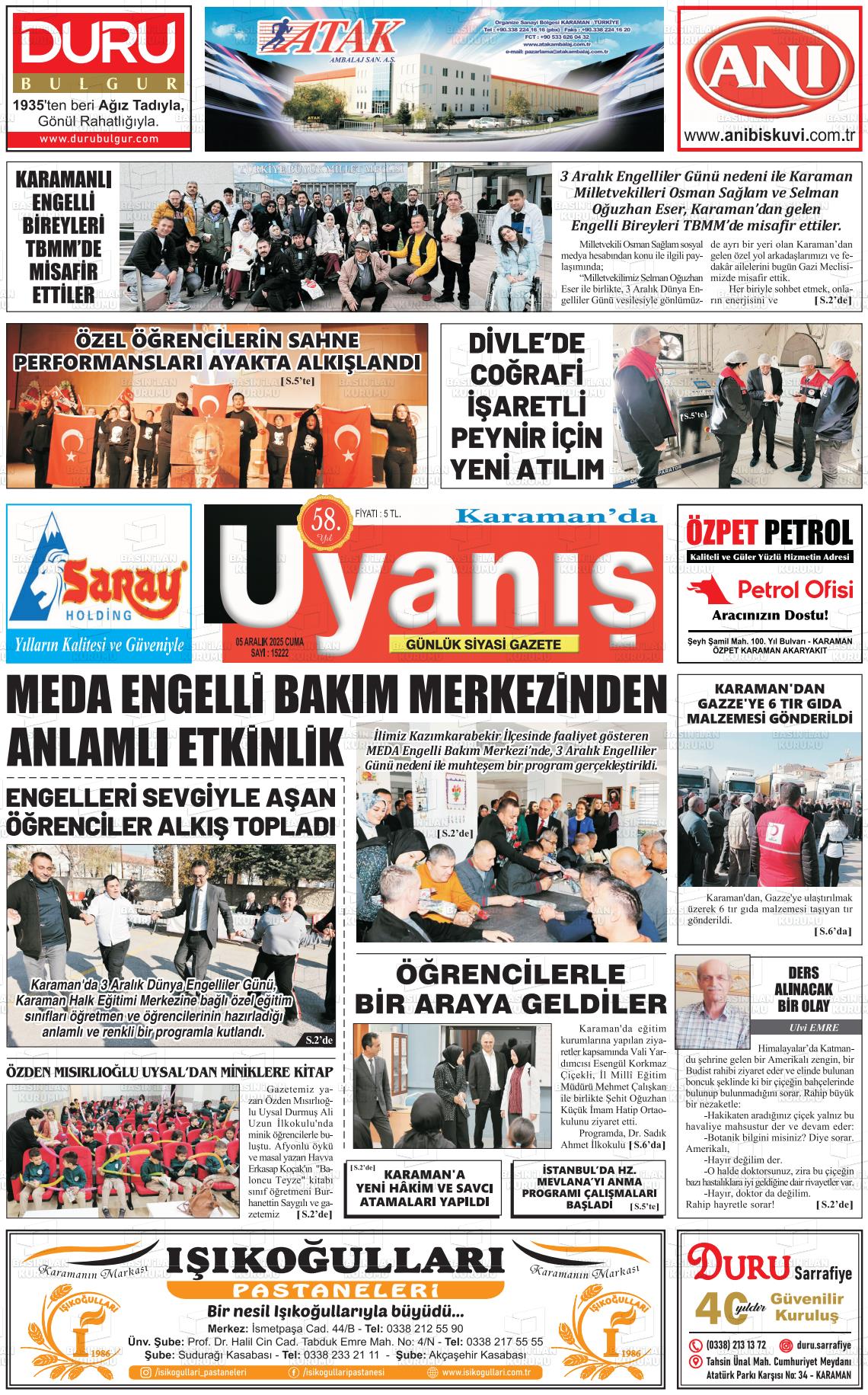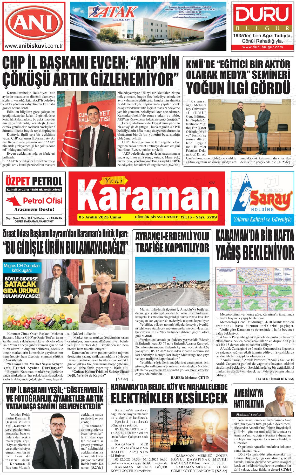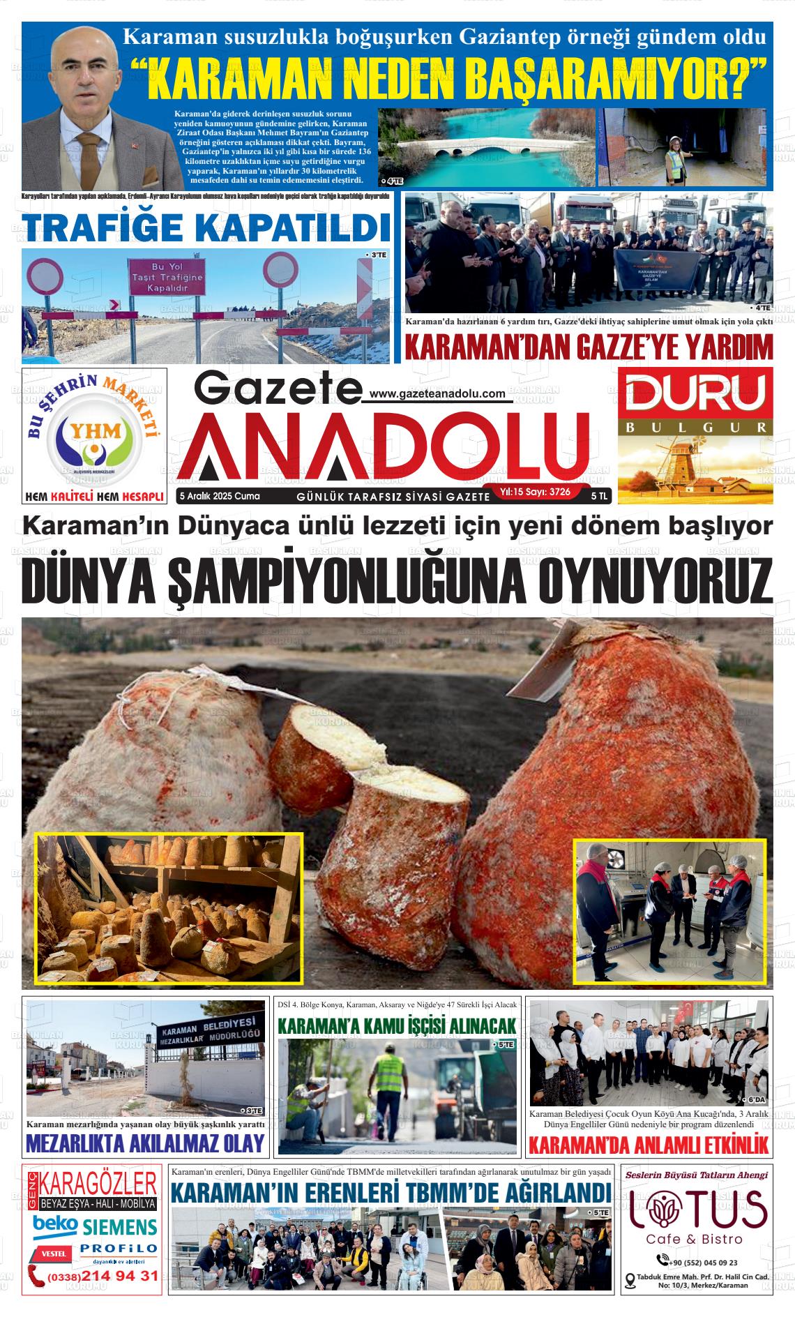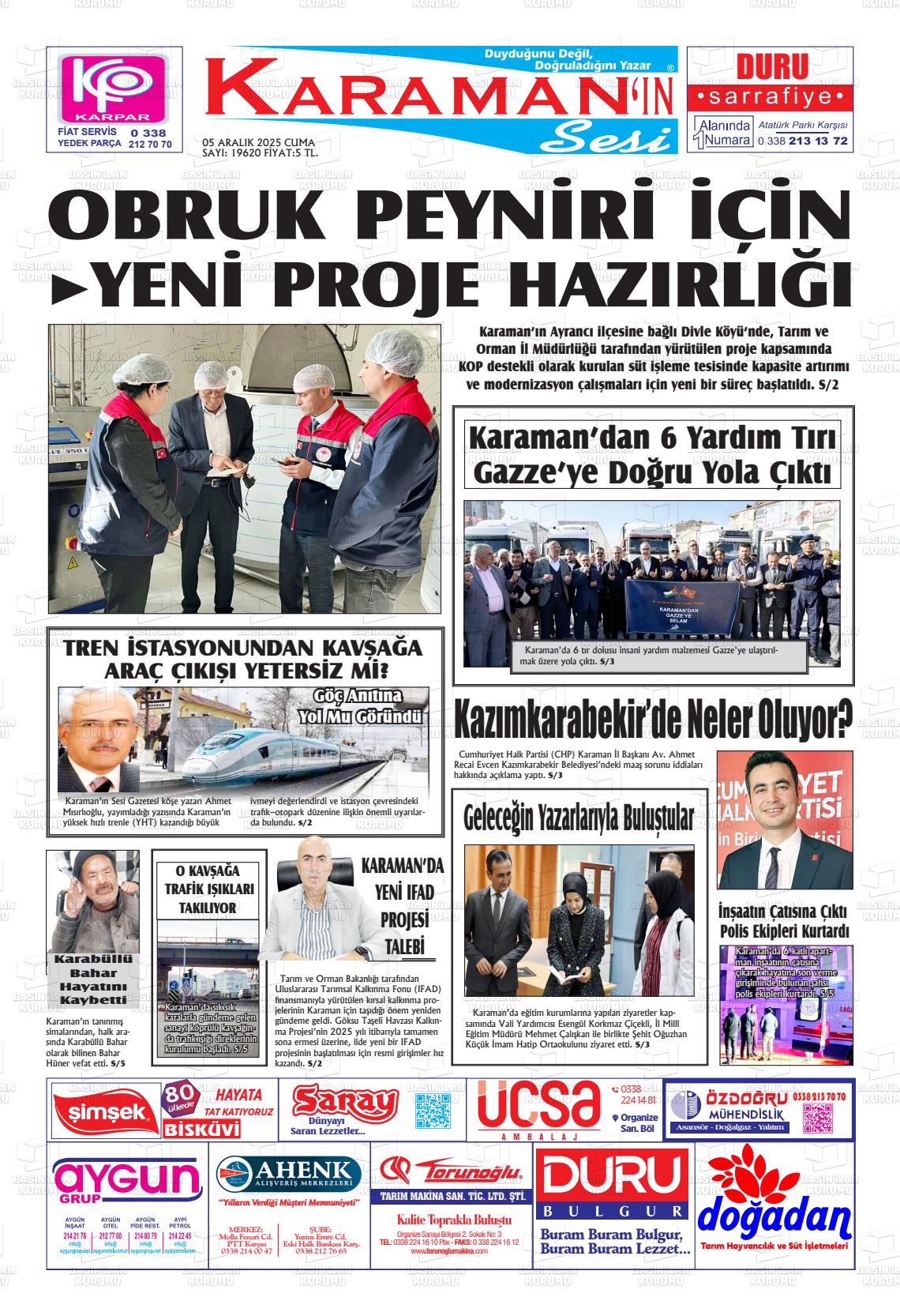 Karaman Yerel Gazeteleri 06 Nisan 2026, Pazartesi Günü Manşeti