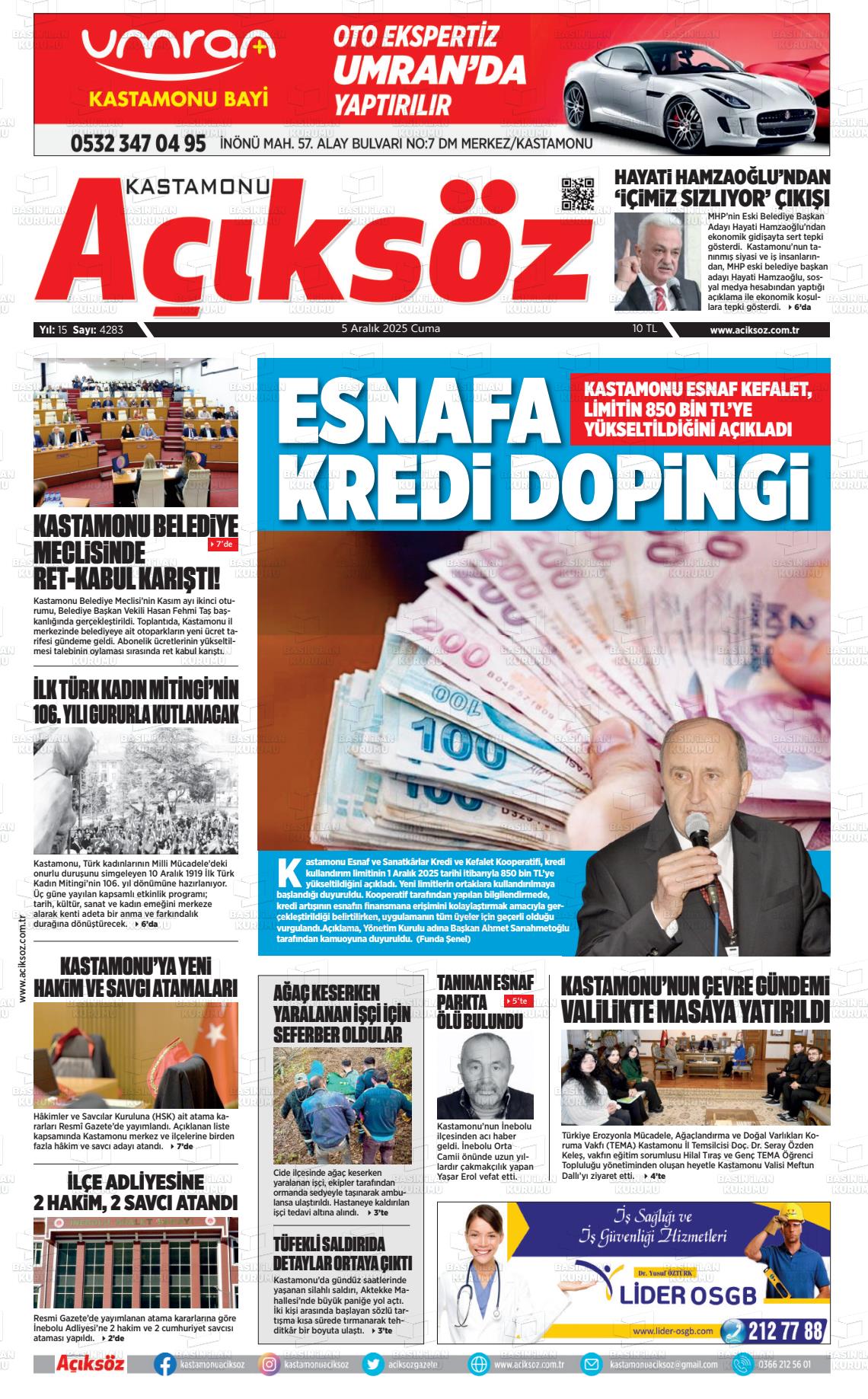 Kastamonu Yerel Gazeteleri 06 Nisan 2026, Pazartesi Günü Manşeti