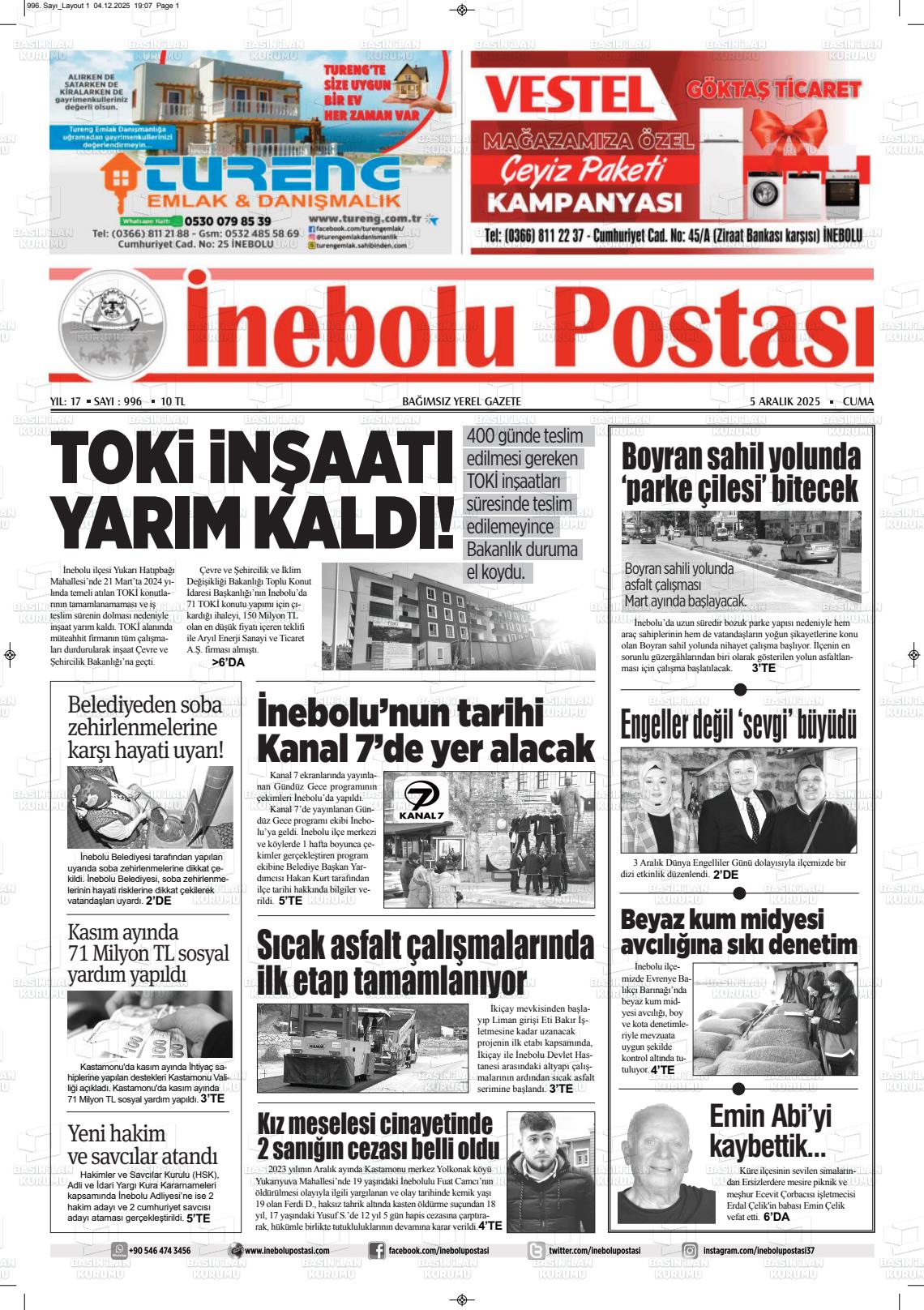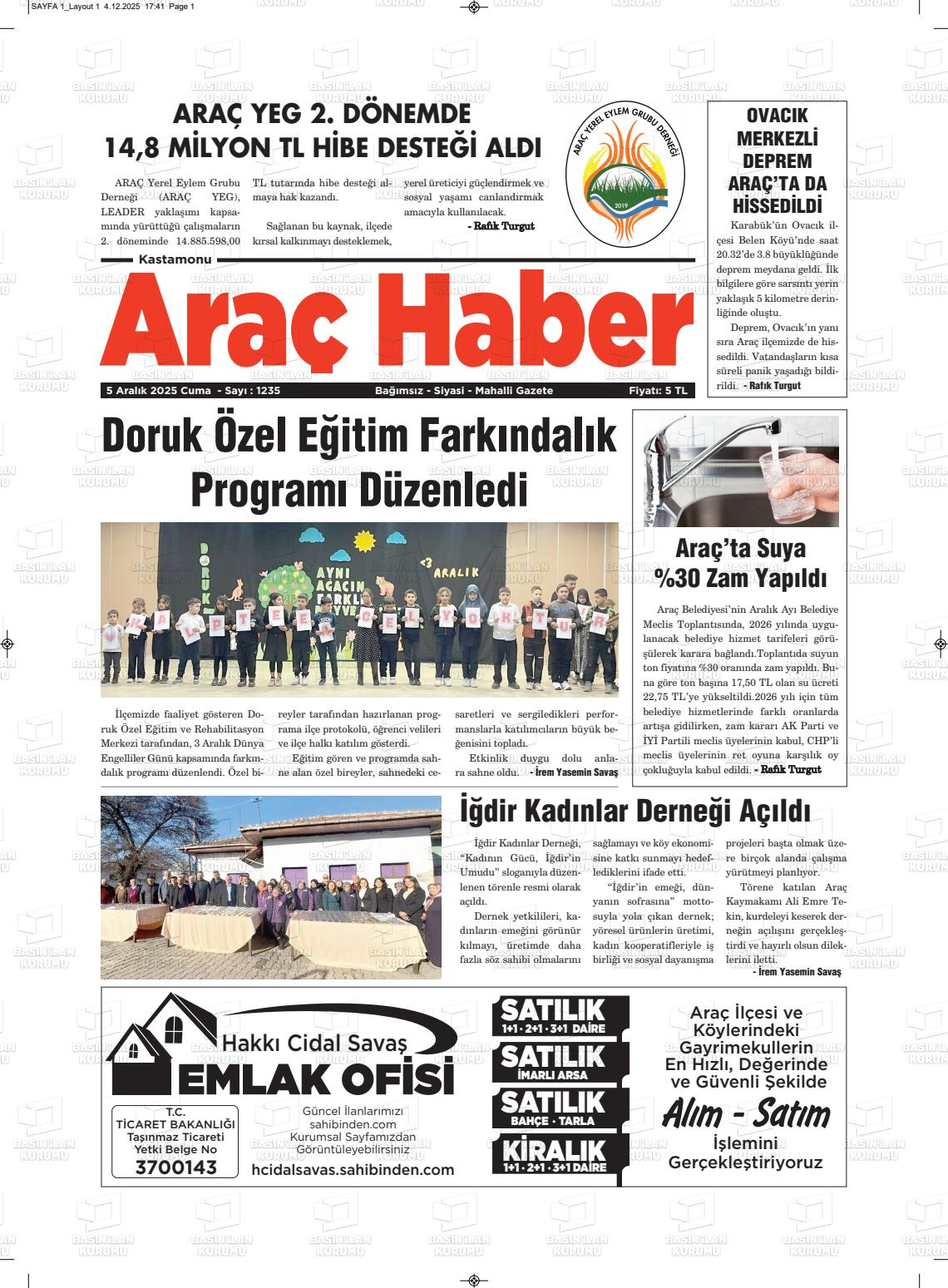 Kastamonu Yerel Gazeteleri 05 Aralık 2025, Cuma Günü Manşeti