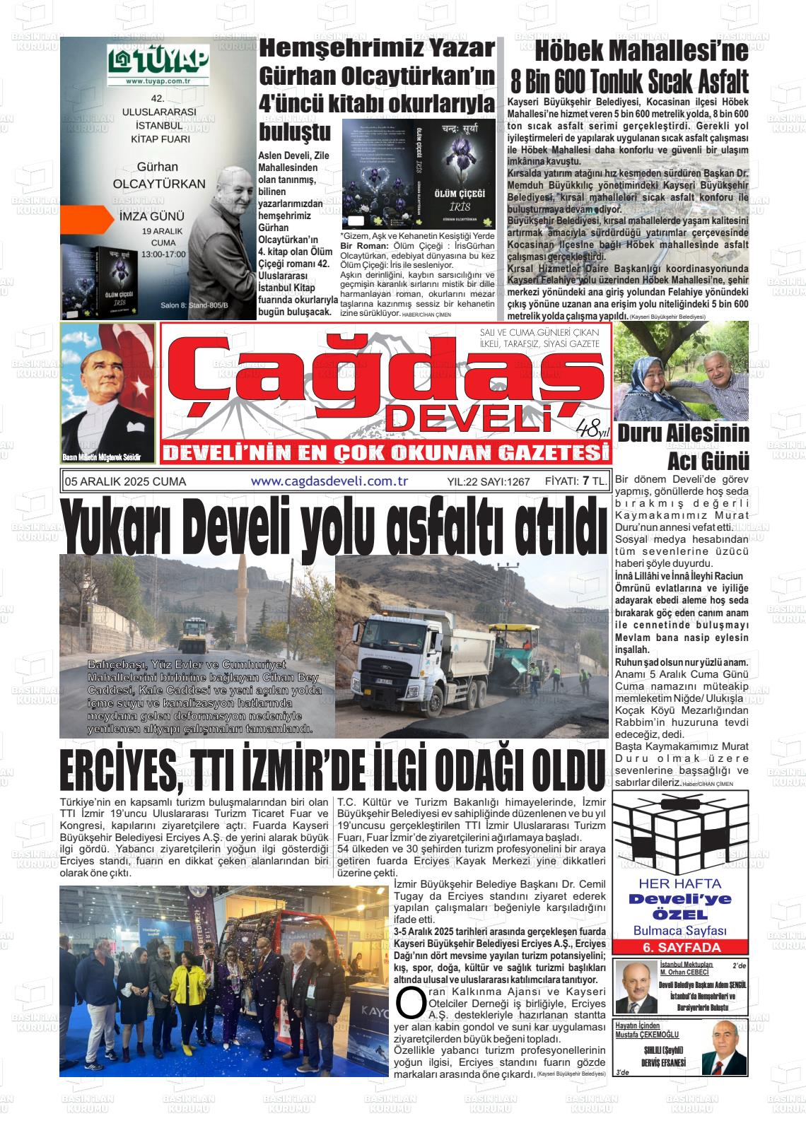 Kayserİ Yerel Gazeteleri 05 Aralık 2025, Cuma Günü Manşeti