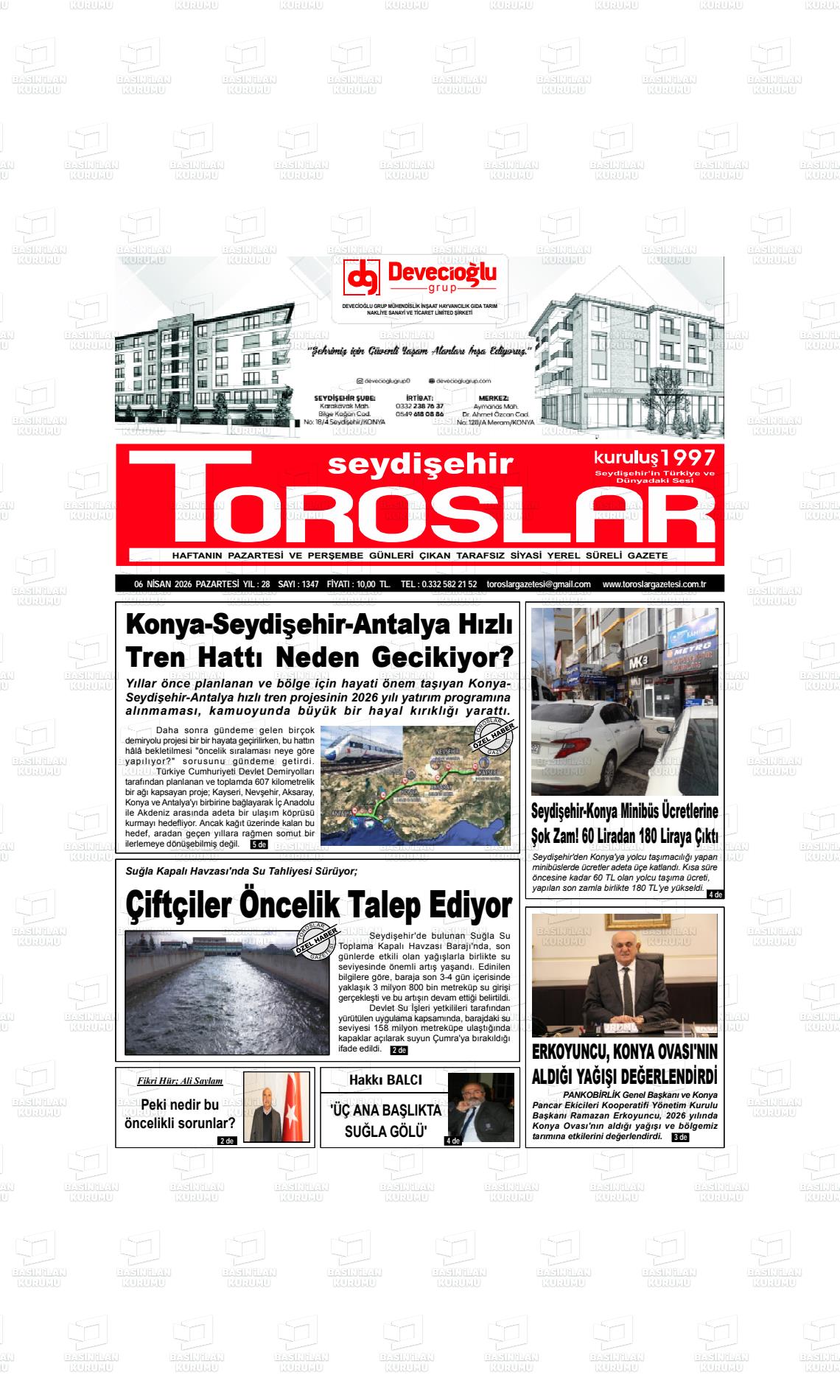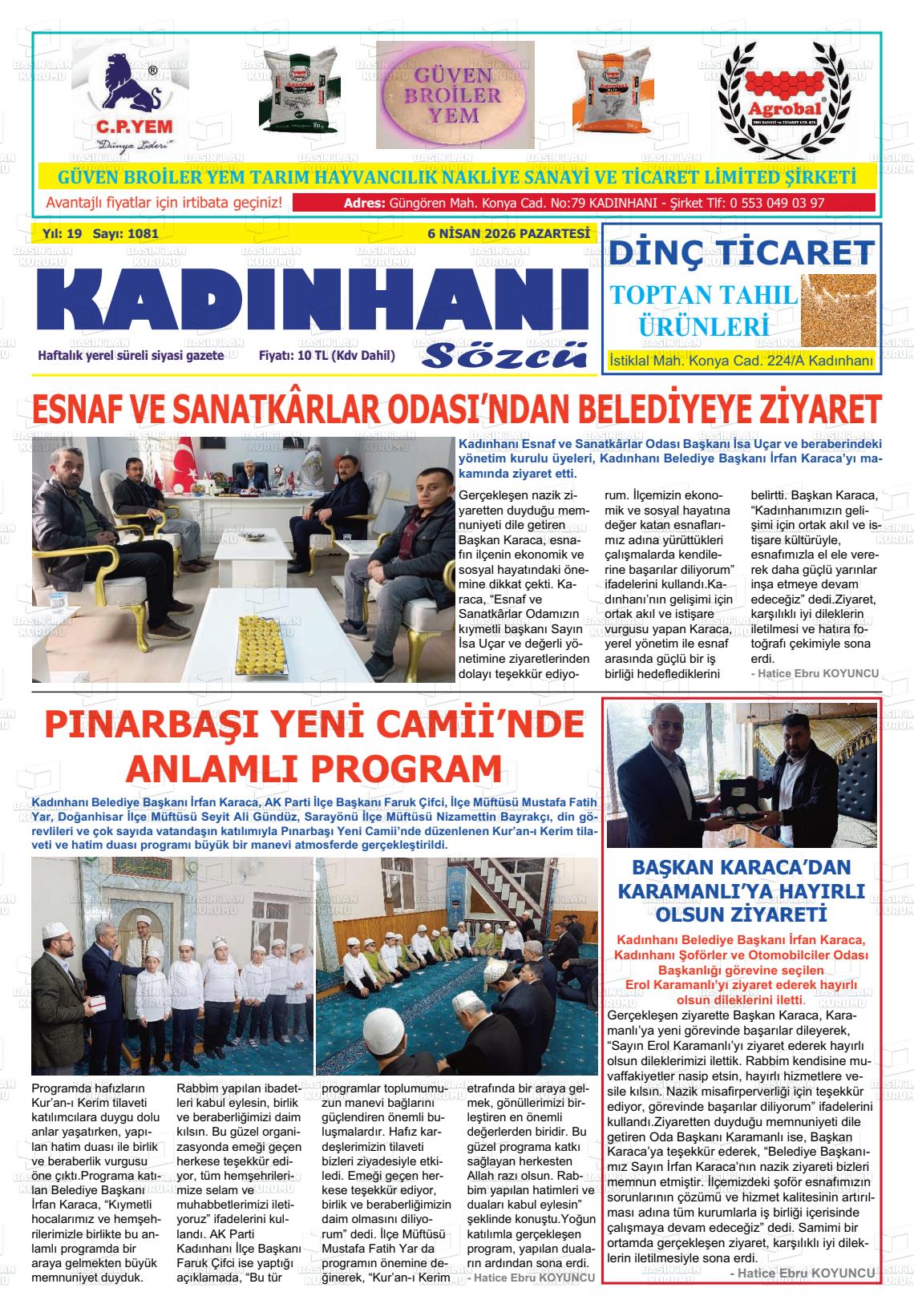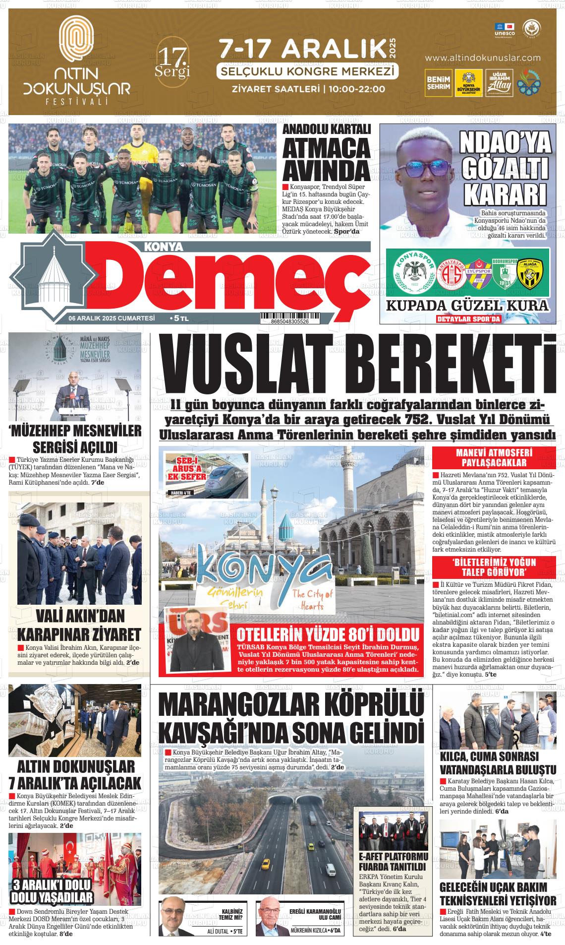 Konya Yerel Gazeteleri 06 Nisan 2026, Pazartesi Günü Manşeti