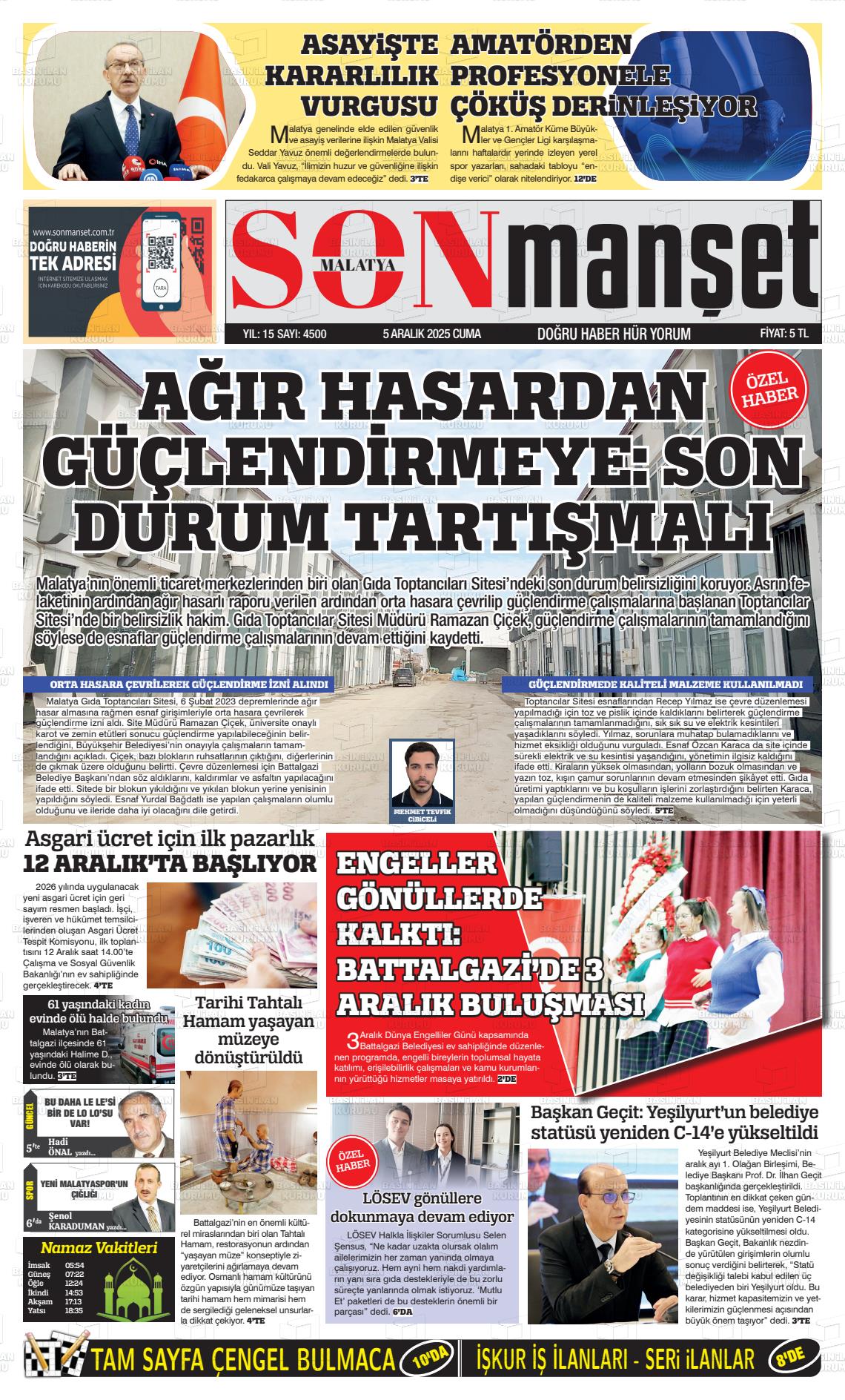 Malatya Yerel Gazeteleri 06 Nisan 2026, Pazartesi Günü Manşeti