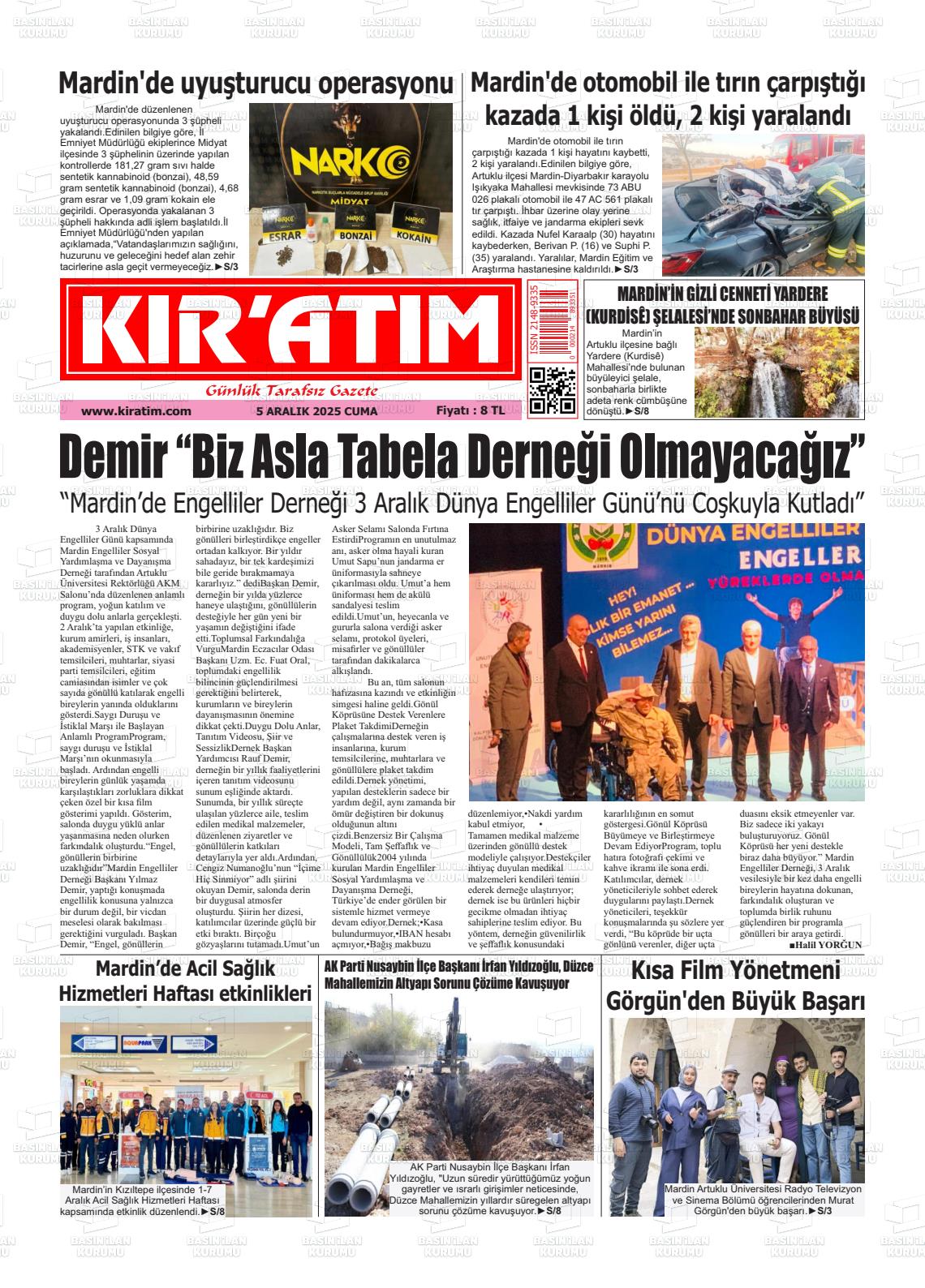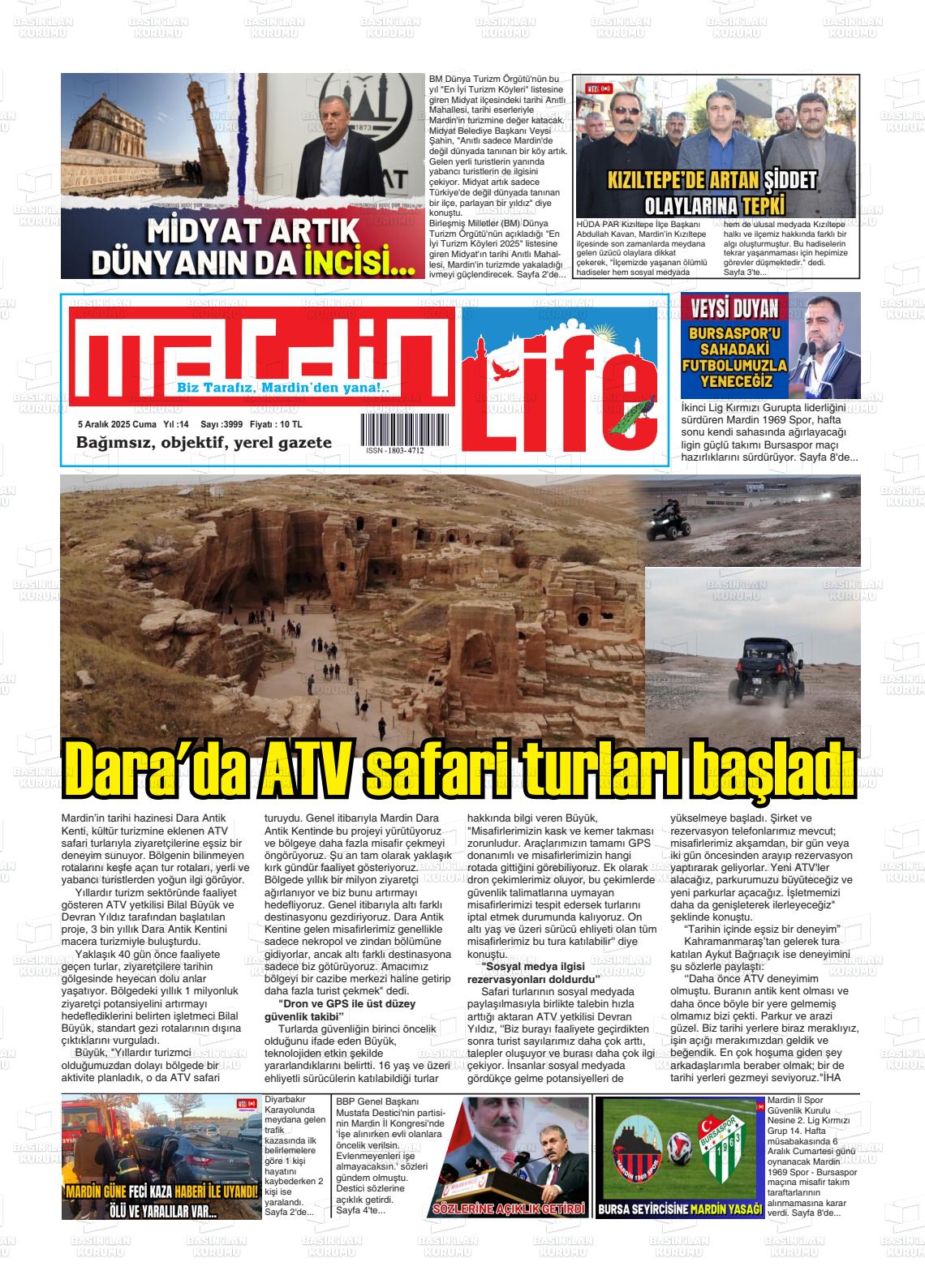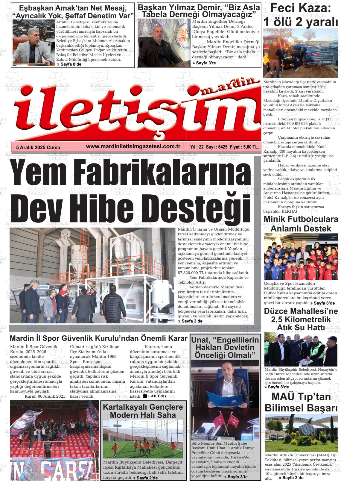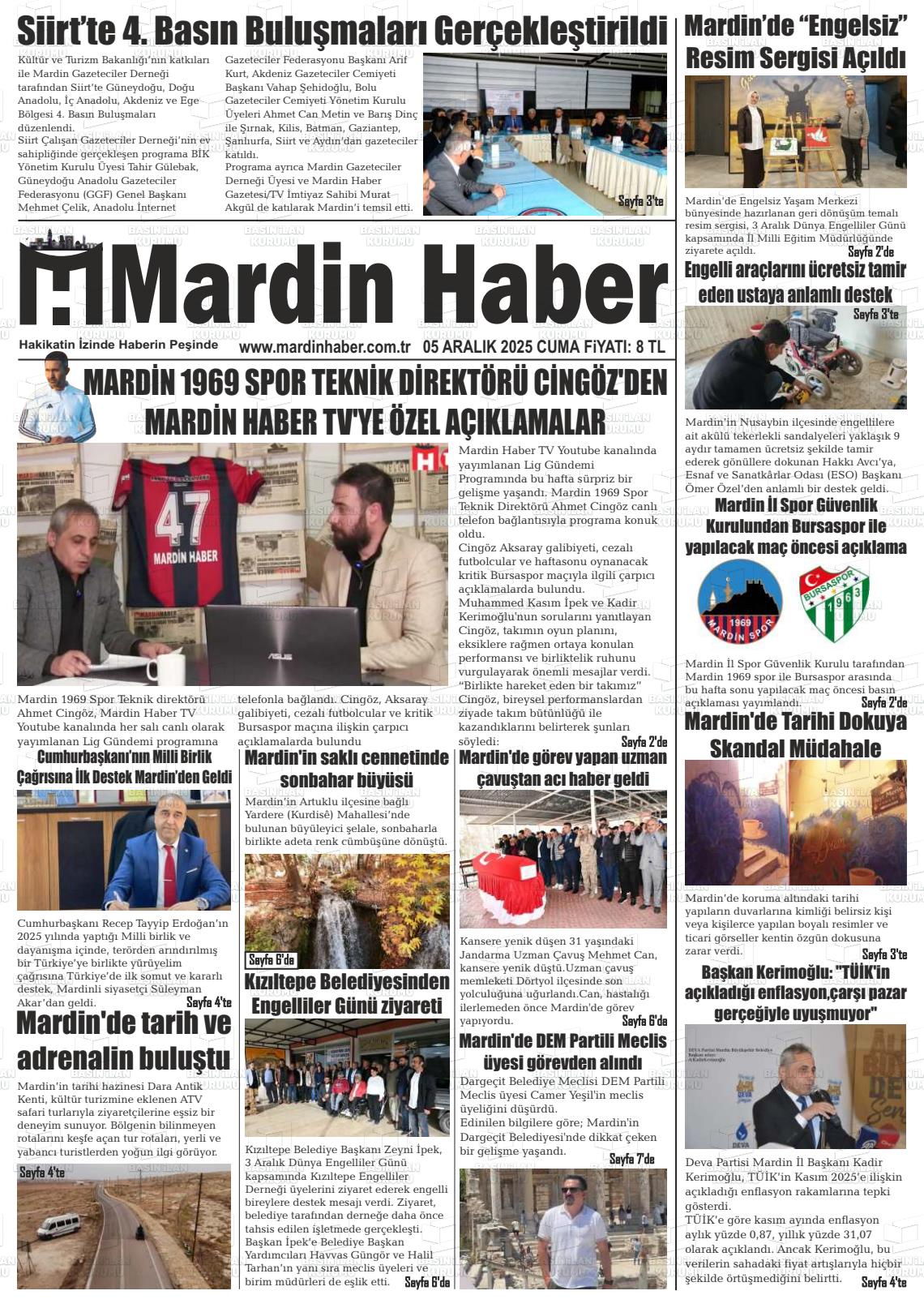 Mardİn Yerel Gazeteleri 06 Nisan 2026, Pazartesi Günü Manşeti