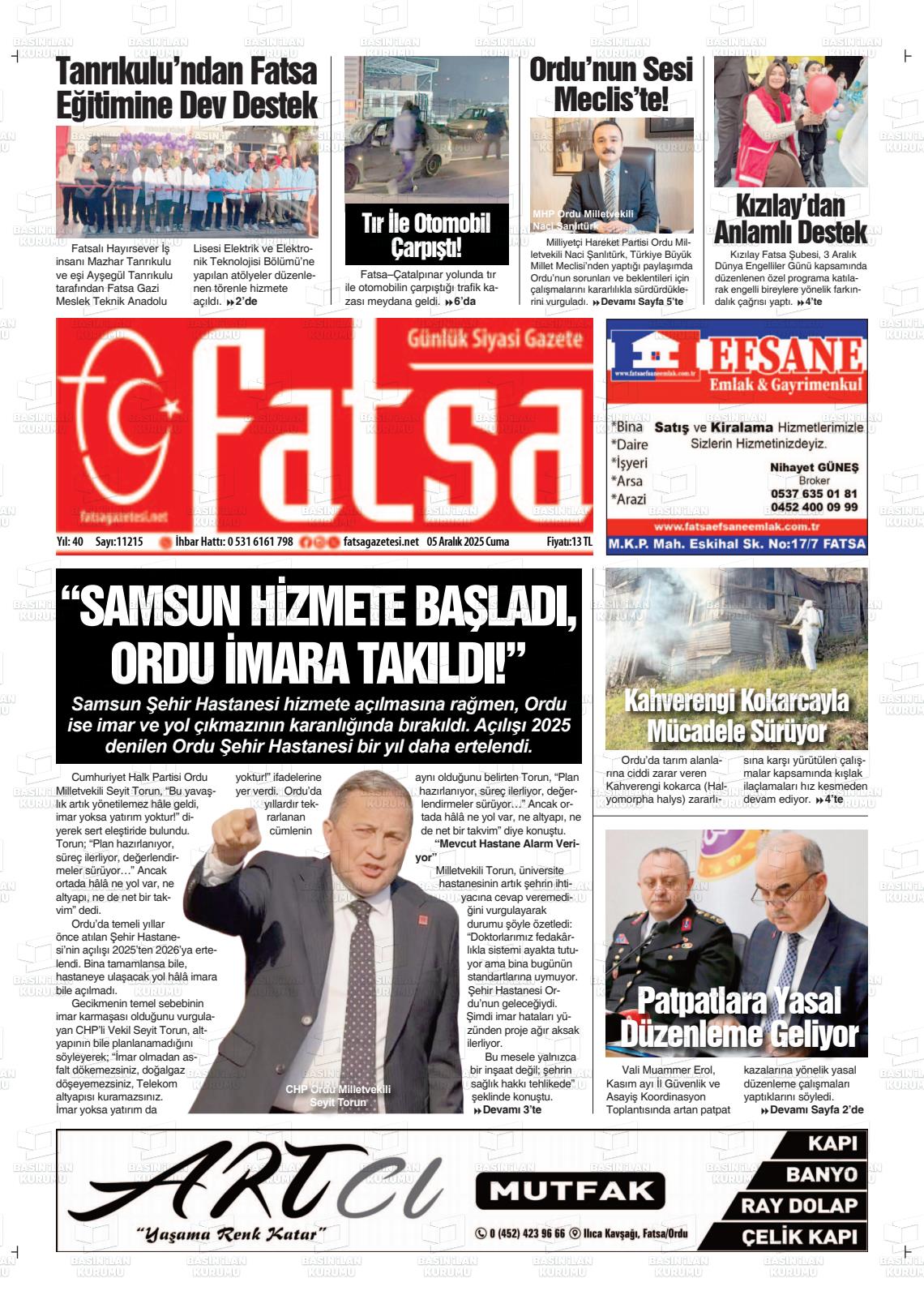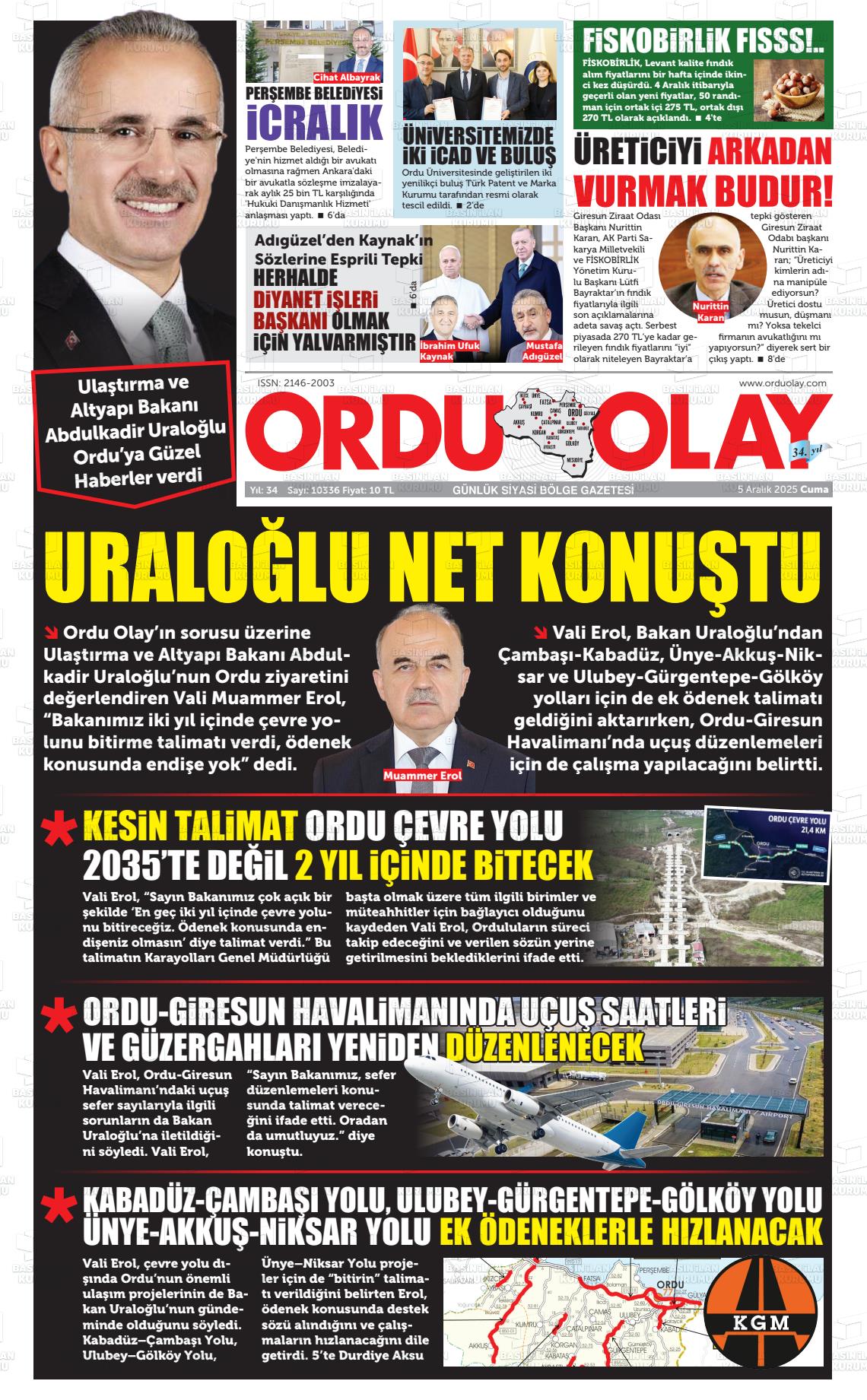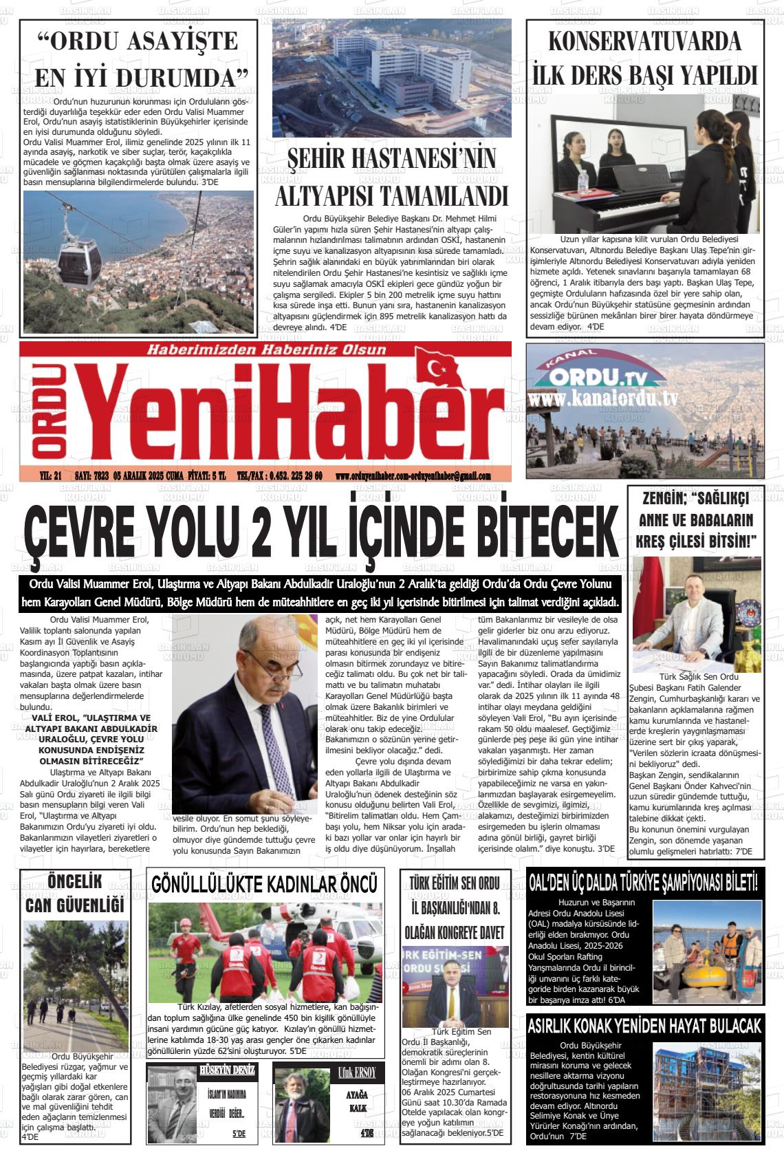 Ordu Yerel Gazeteleri 06 Nisan 2026, Pazartesi Günü Manşeti