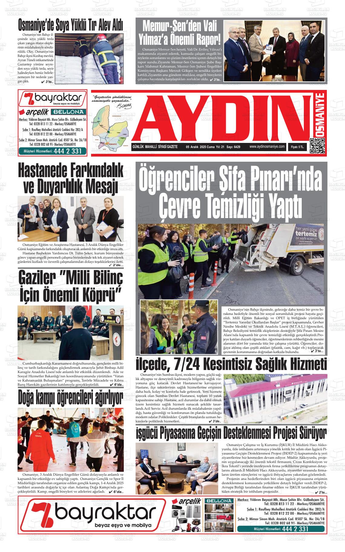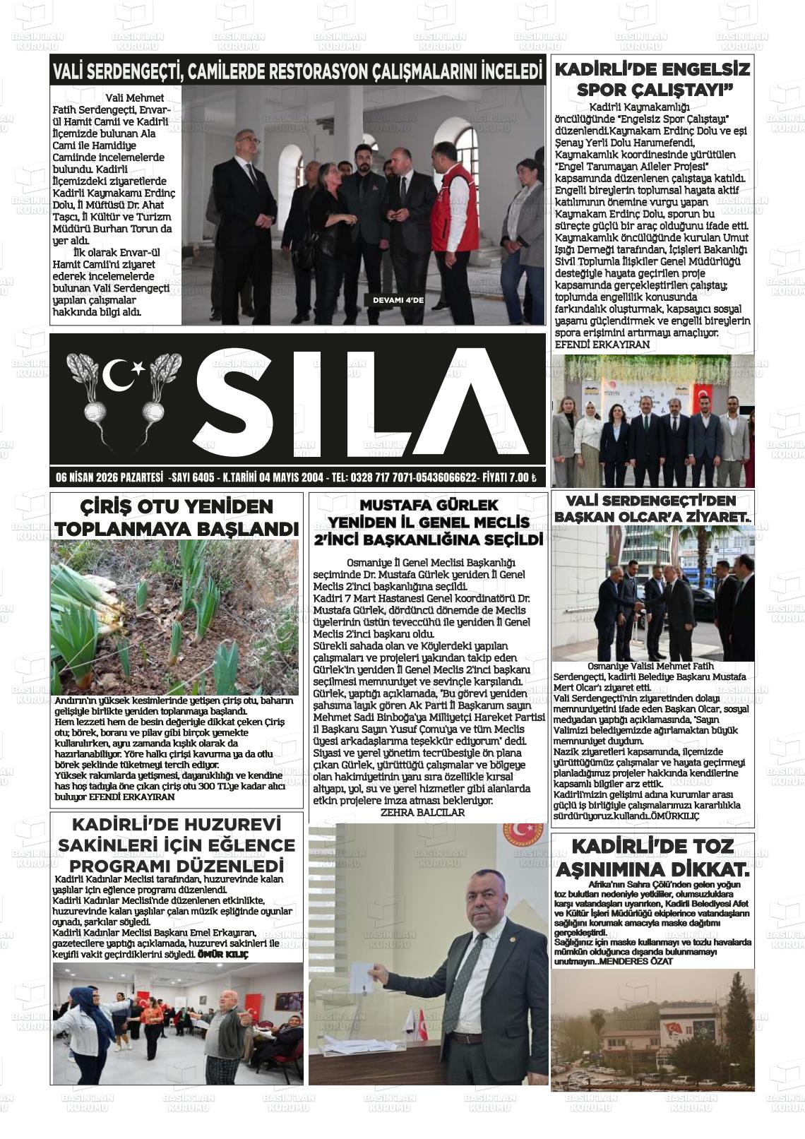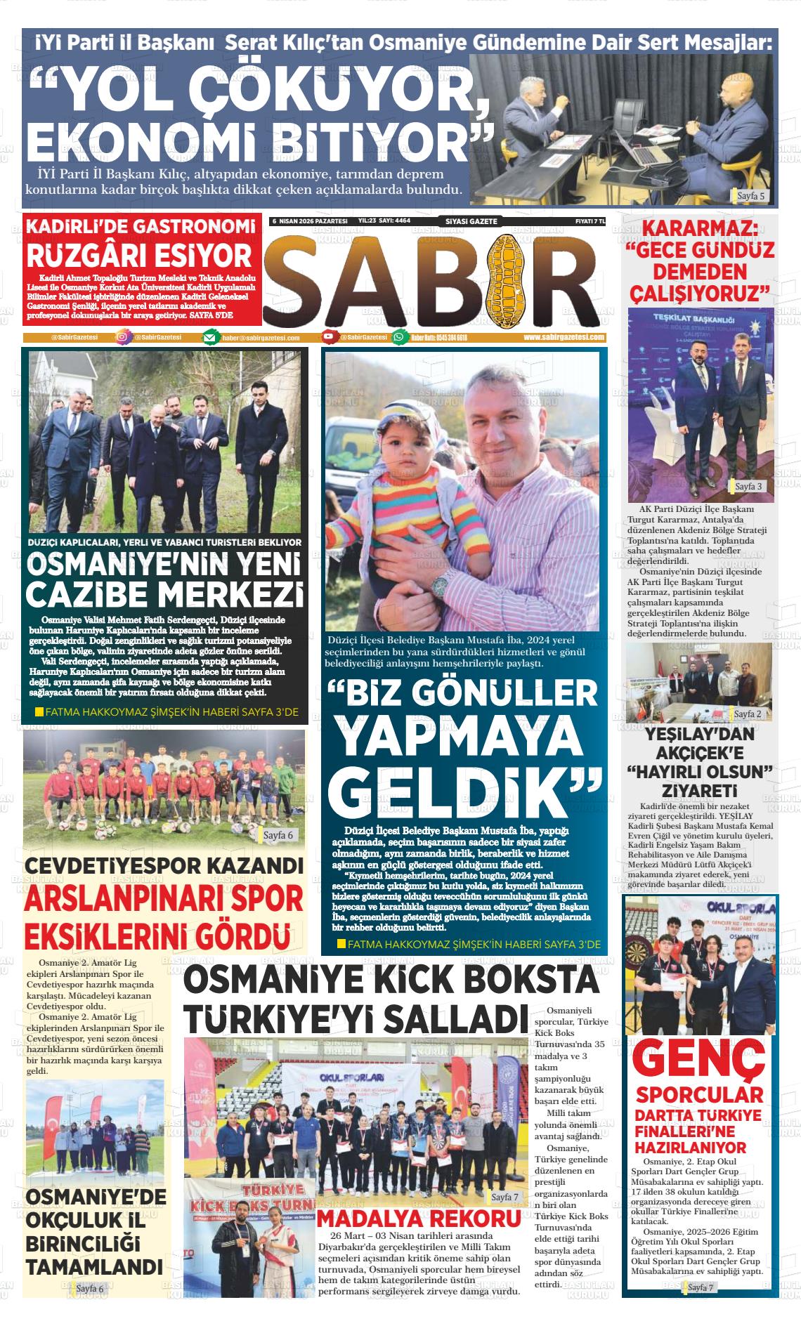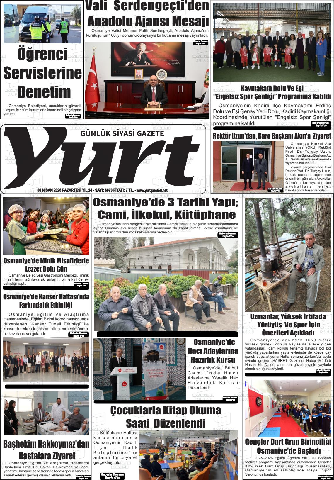 Osmanİye Yerel Gazeteleri 06 Nisan 2026, Pazartesi Günü Manşeti