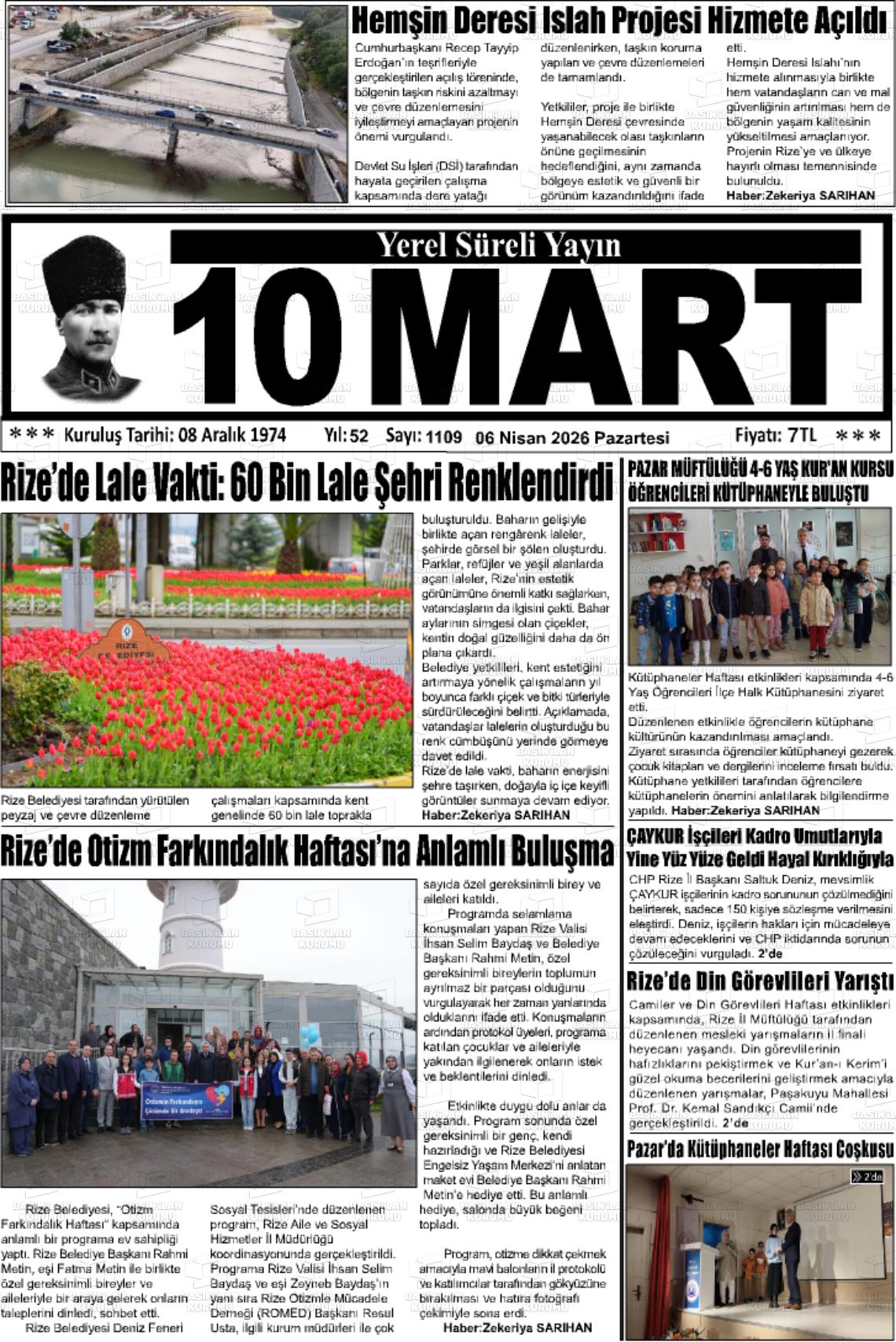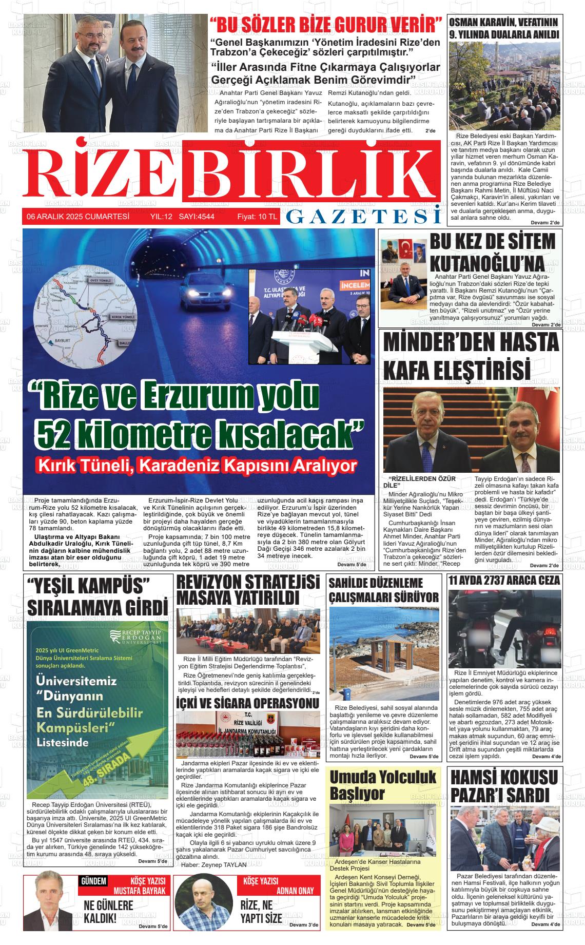 Rİze Yerel Gazeteleri 06 Nisan 2026, Pazartesi Günü Manşeti
