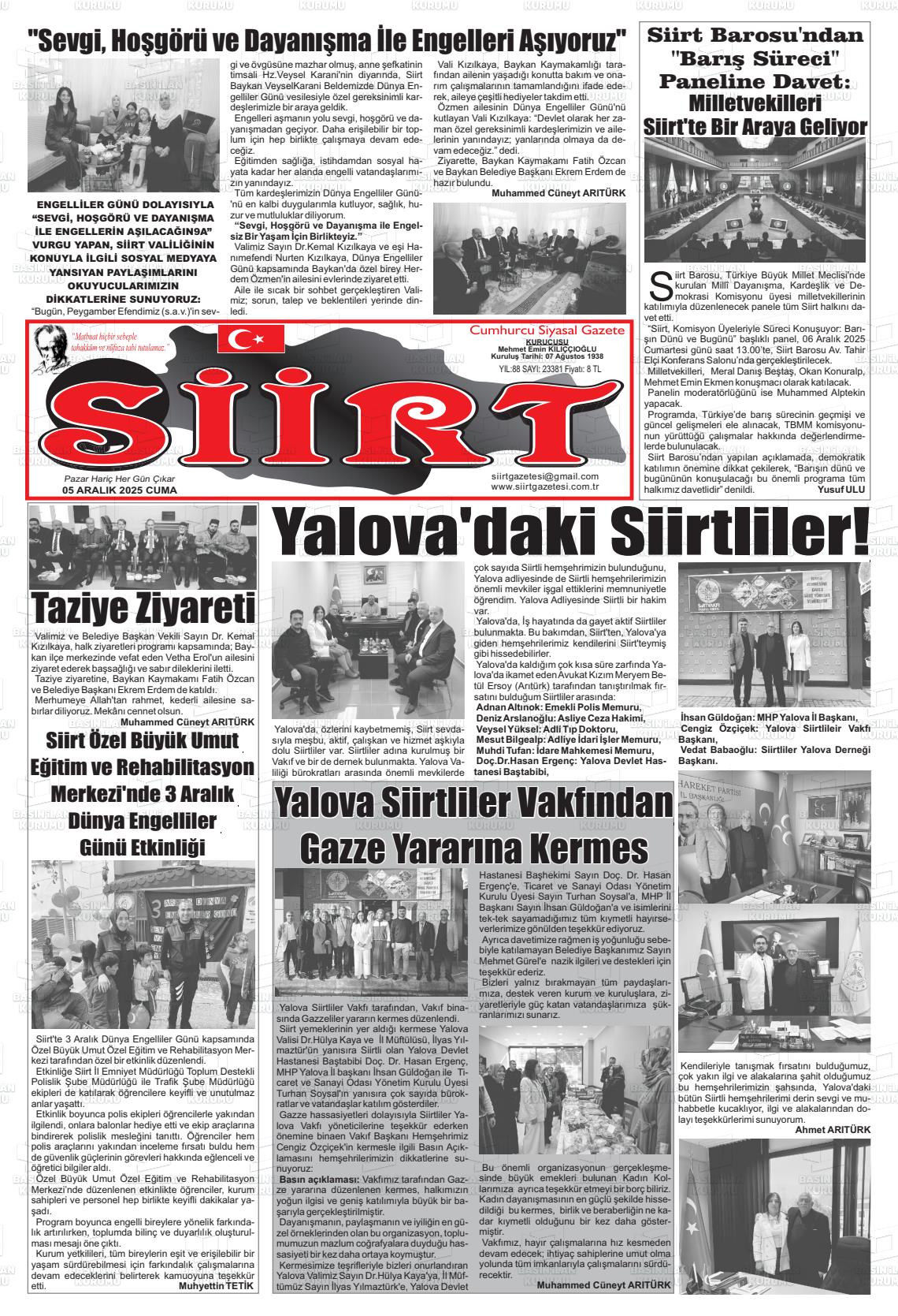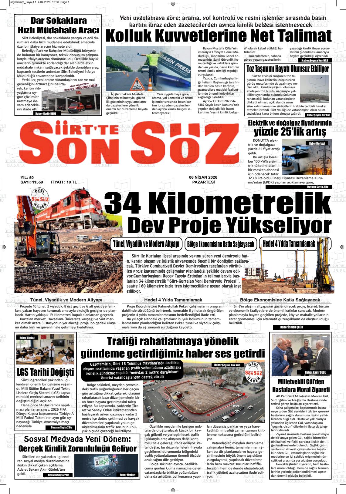 Sİİrt Yerel Gazeteleri 06 Nisan 2026, Pazartesi Günü Manşeti
