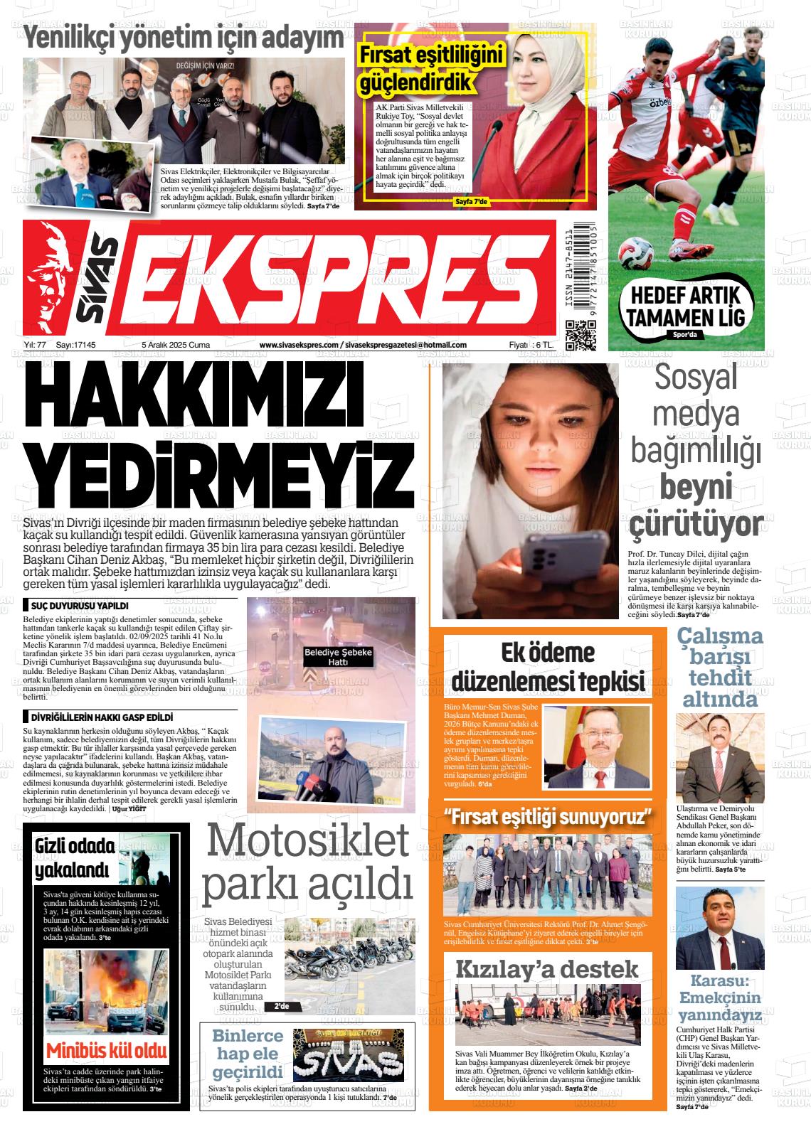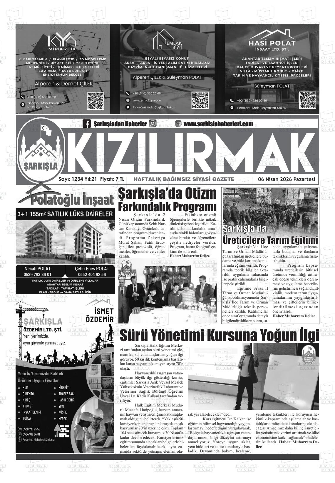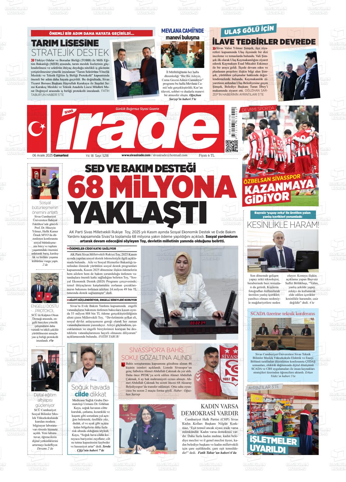 Sİvas Yerel Gazeteleri 06 Nisan 2026, Pazartesi Günü Manşeti