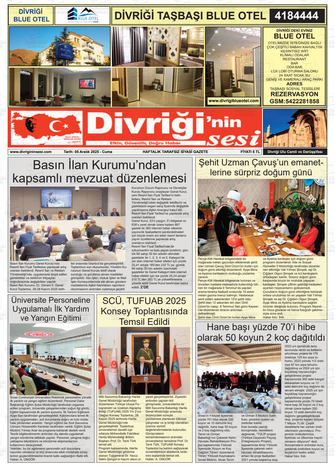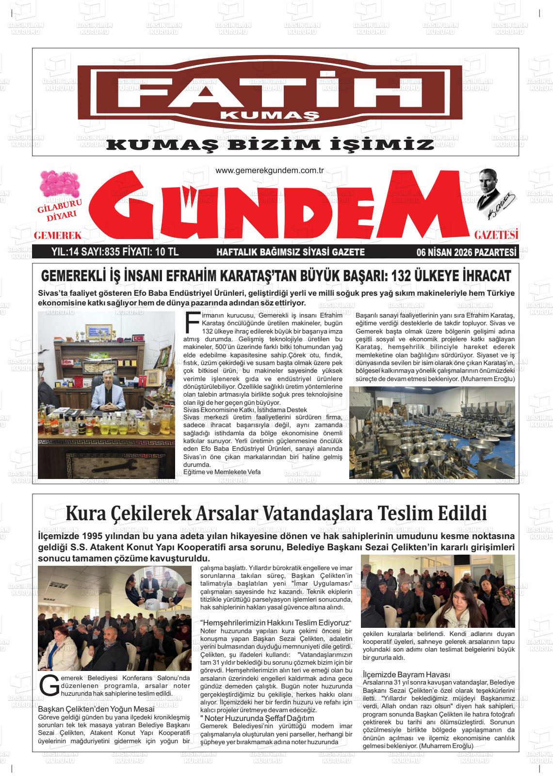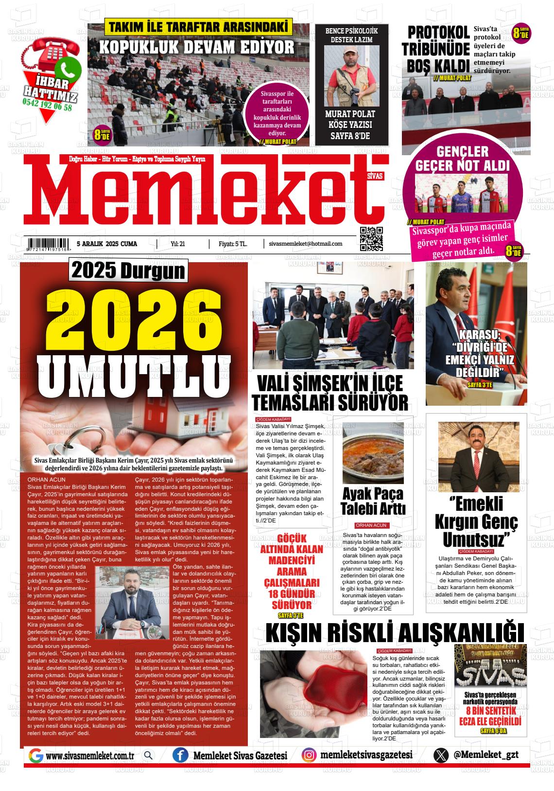 Sİvas Yerel Gazeteleri 06 Nisan 2026, Pazartesi Günü Manşeti