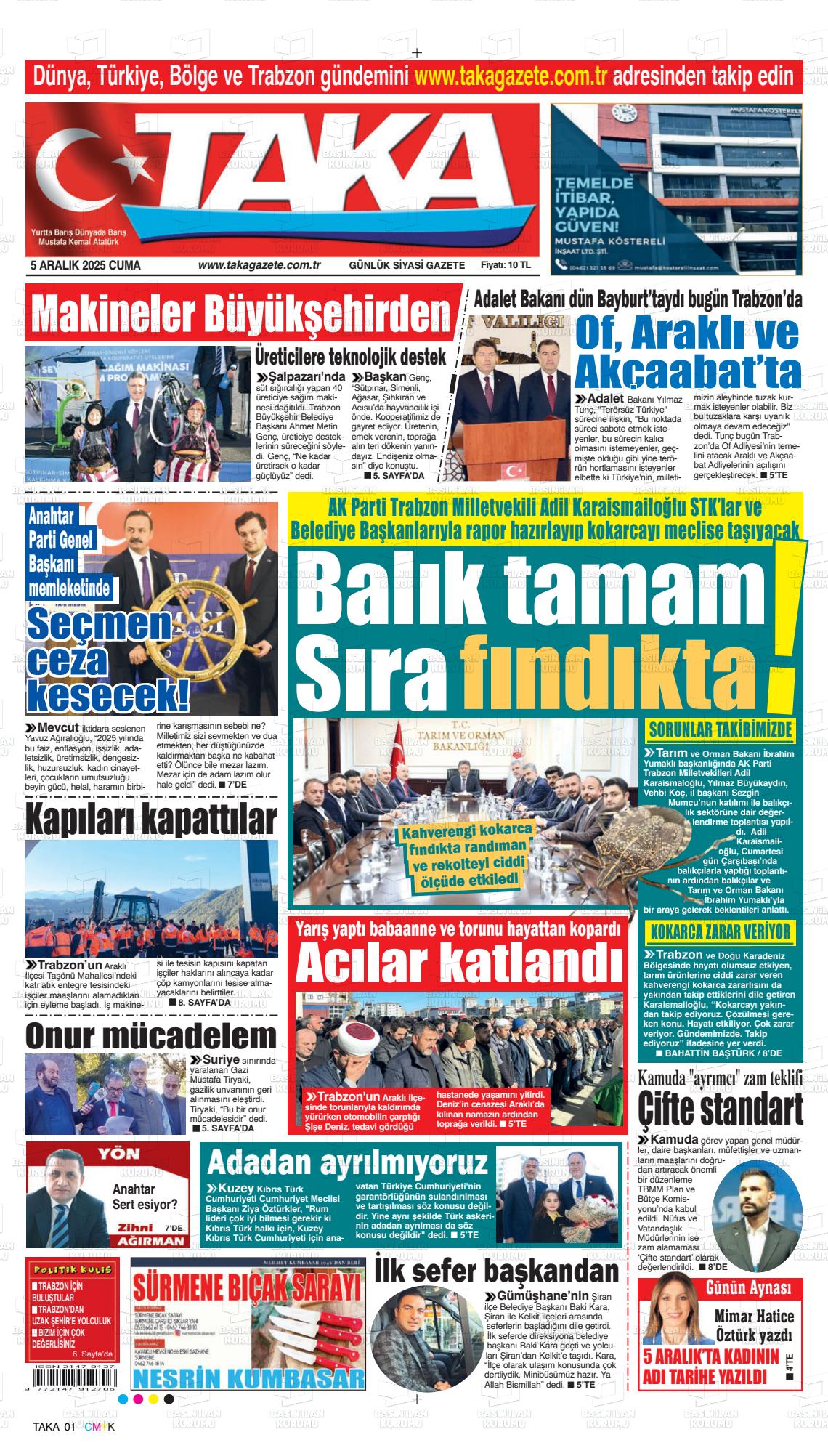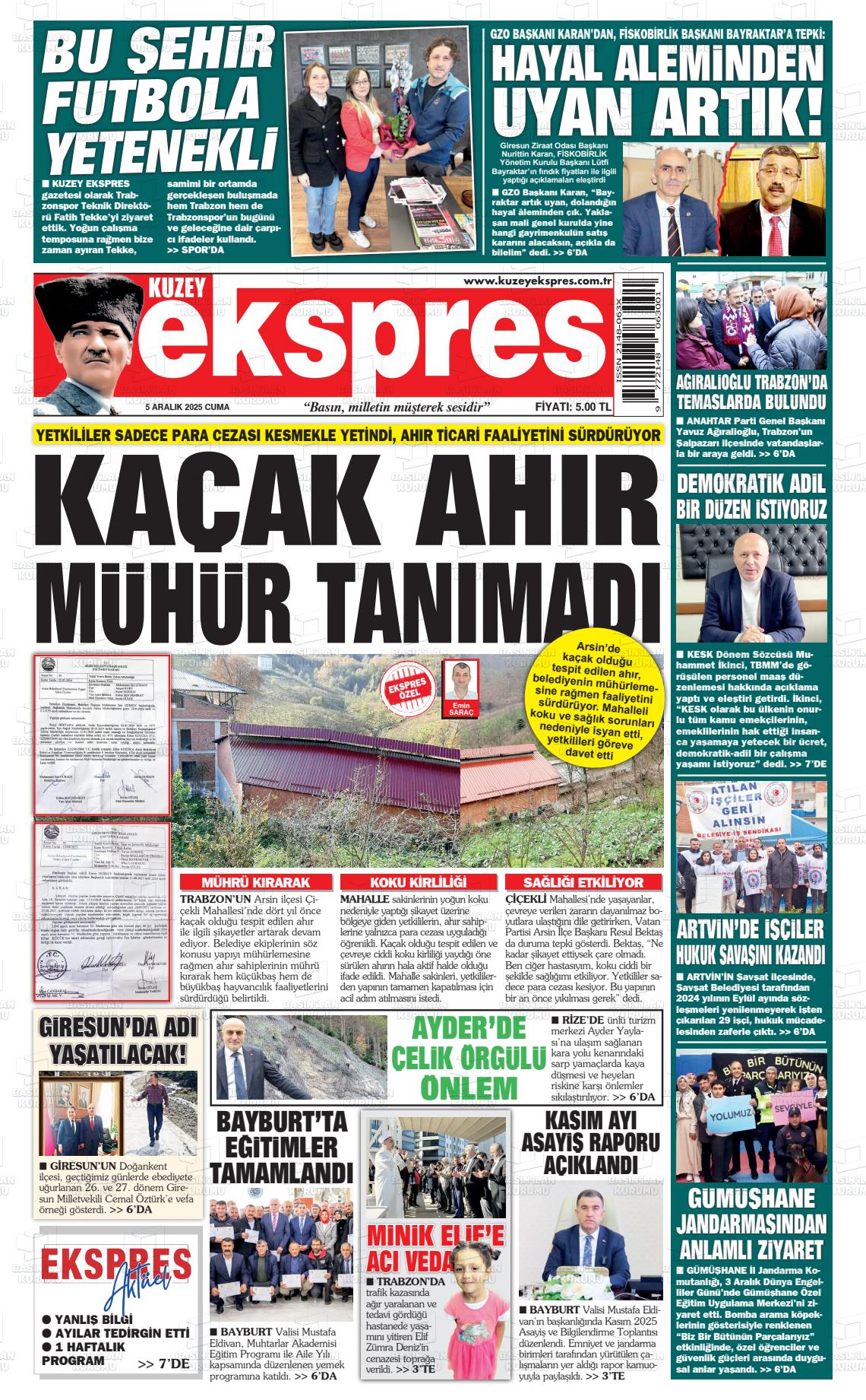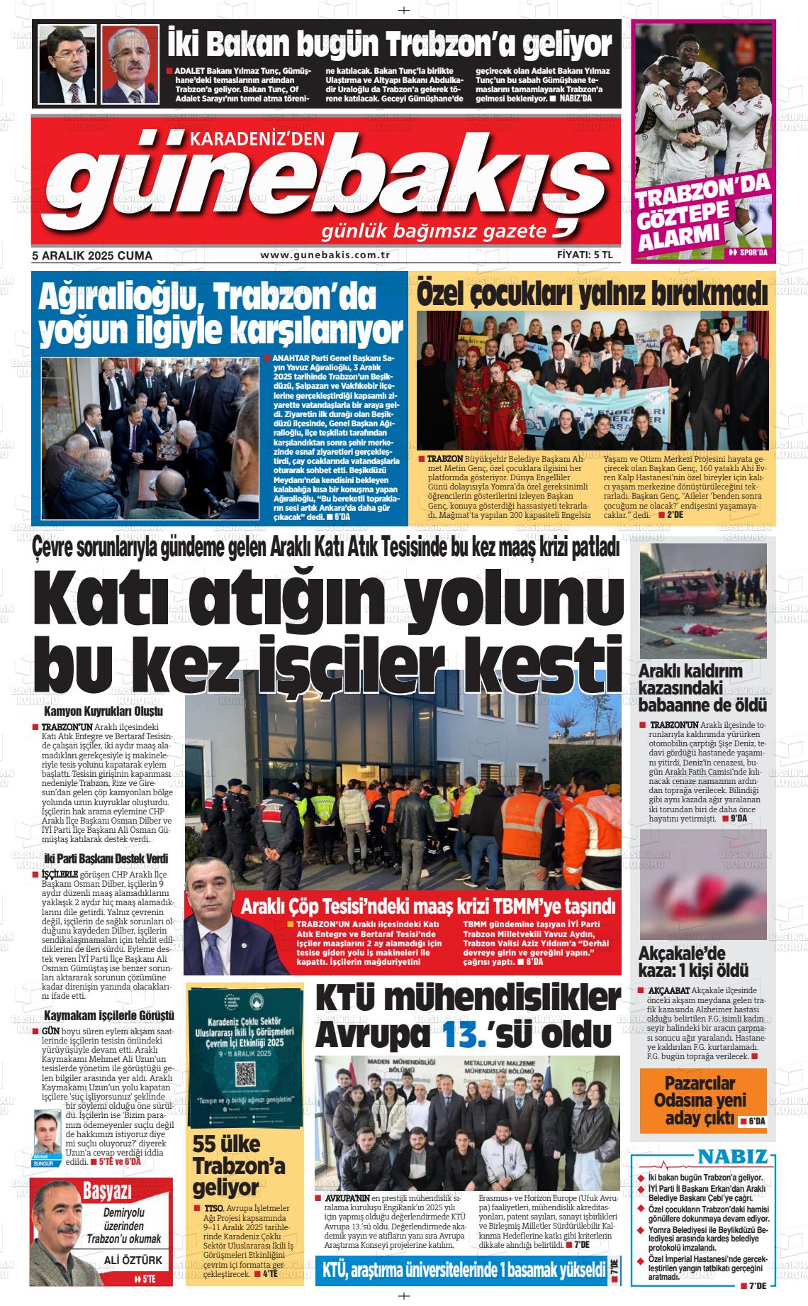 Trabzon Yerel Gazeteleri 06 Nisan 2026, Pazartesi Günü Manşeti