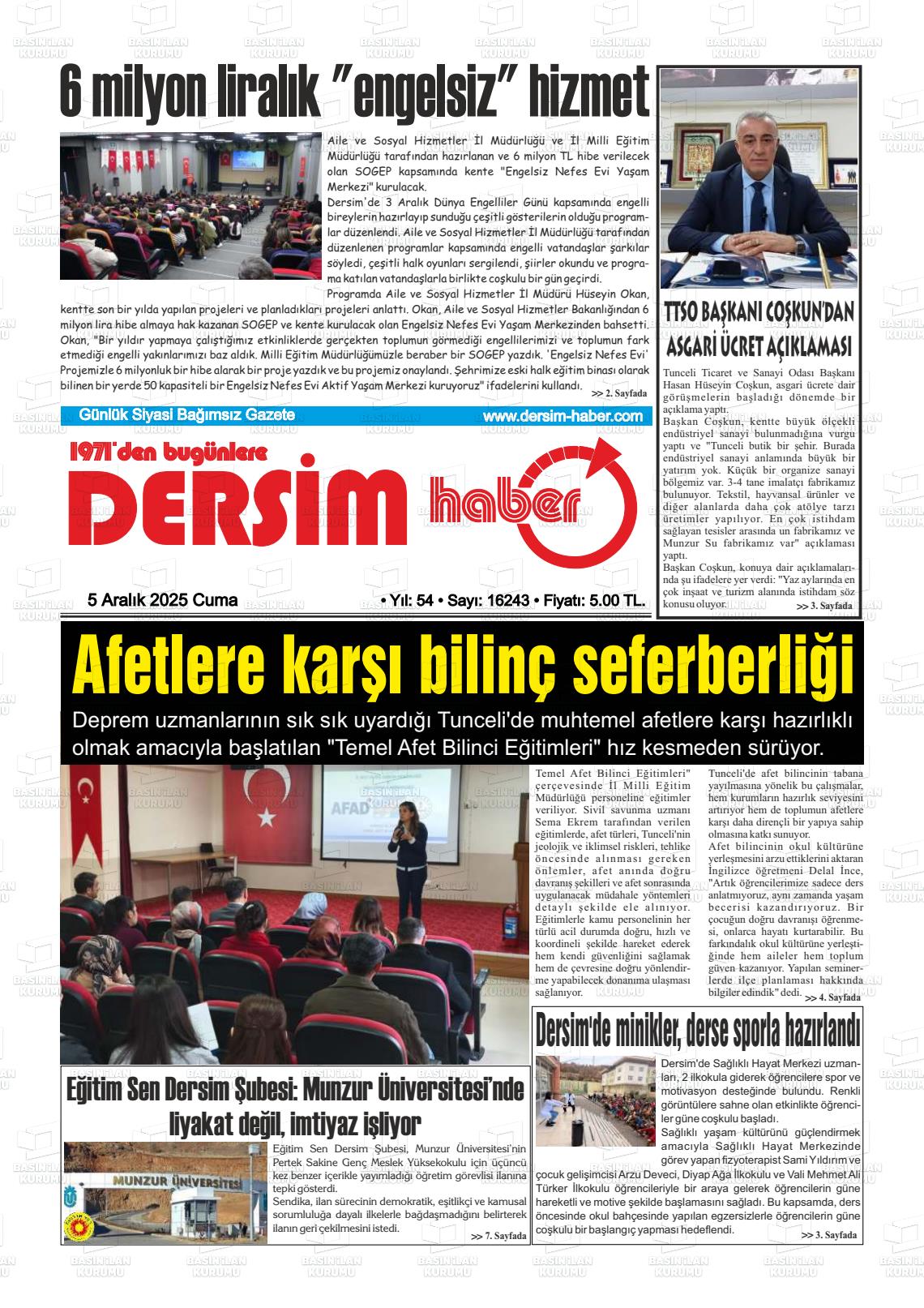 Tuncelİ Yerel Gazeteleri 06 Nisan 2026, Pazartesi Günü Manşeti