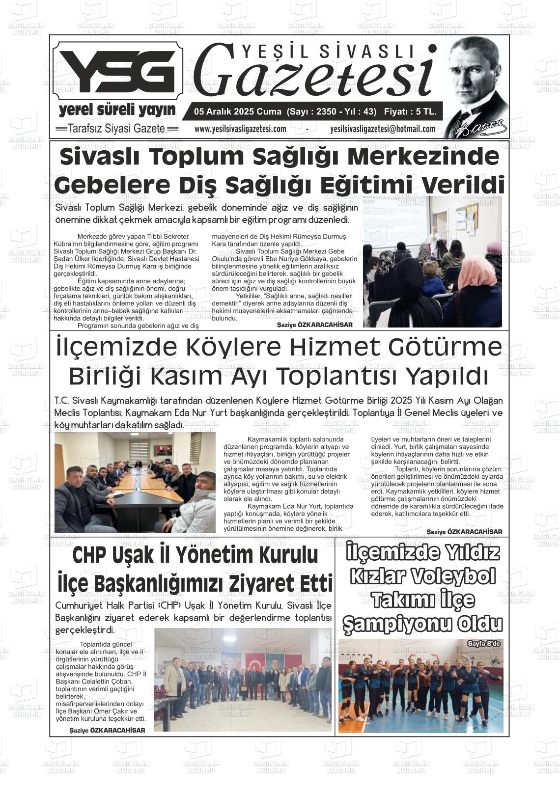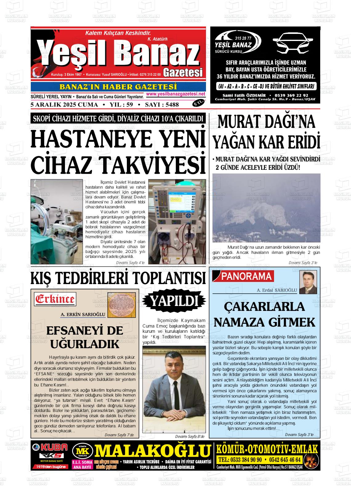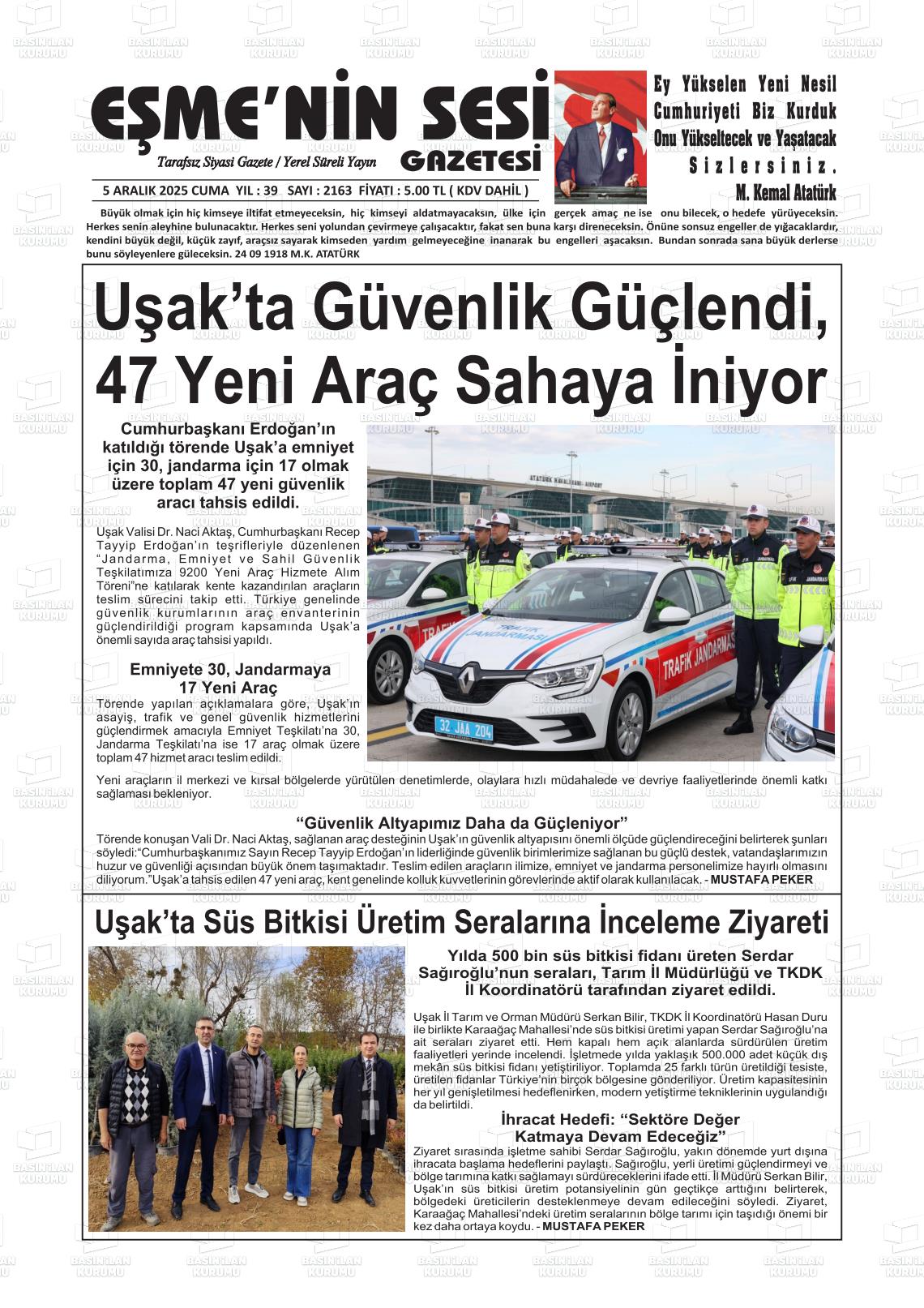 Uşak Yerel Gazeteleri 05 Aralık 2025, Cuma Günü Manşeti
