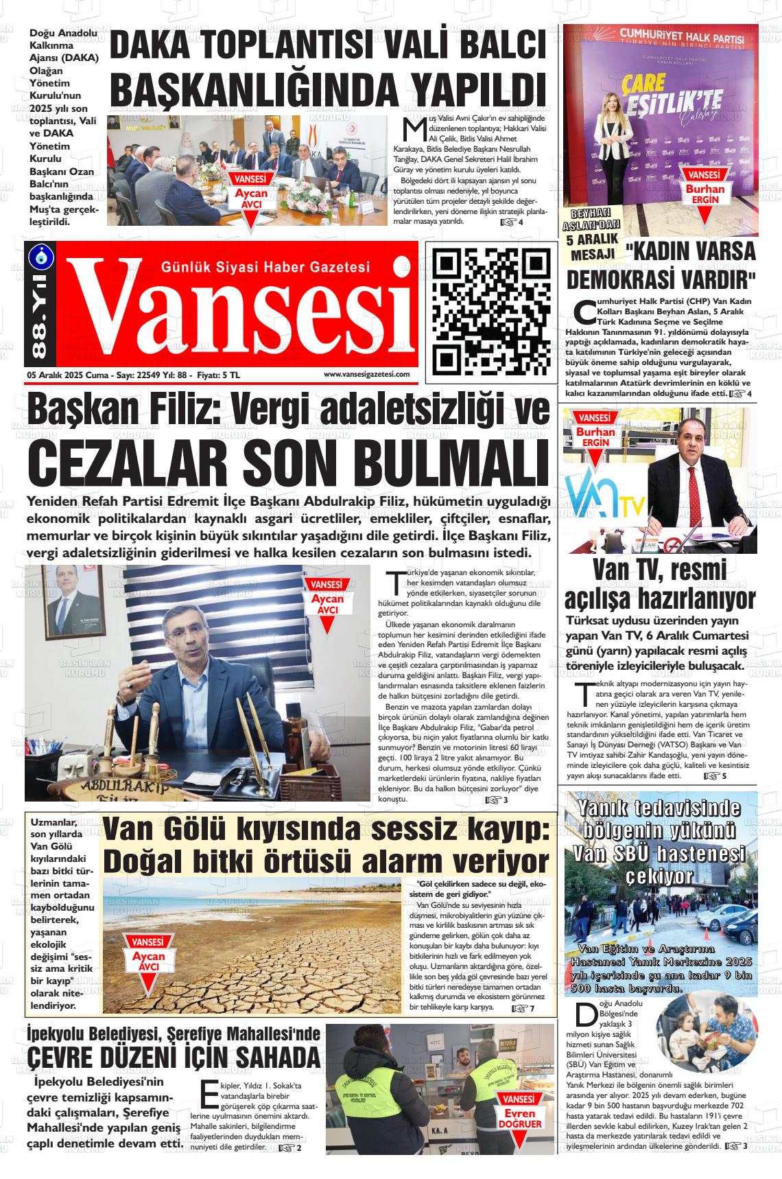 Van Yerel Gazeteleri 06 Nisan 2026, Pazartesi Günü Manşeti