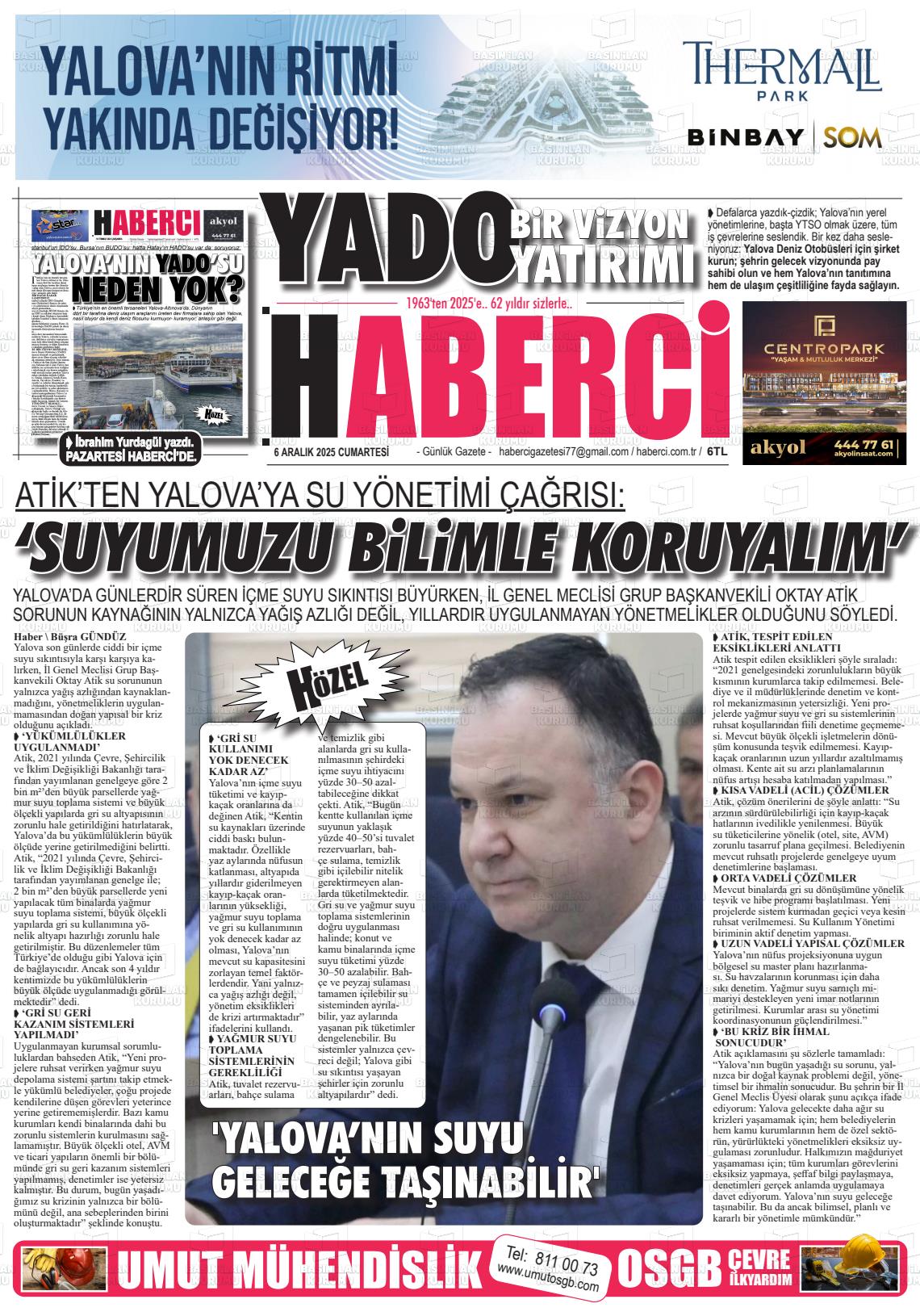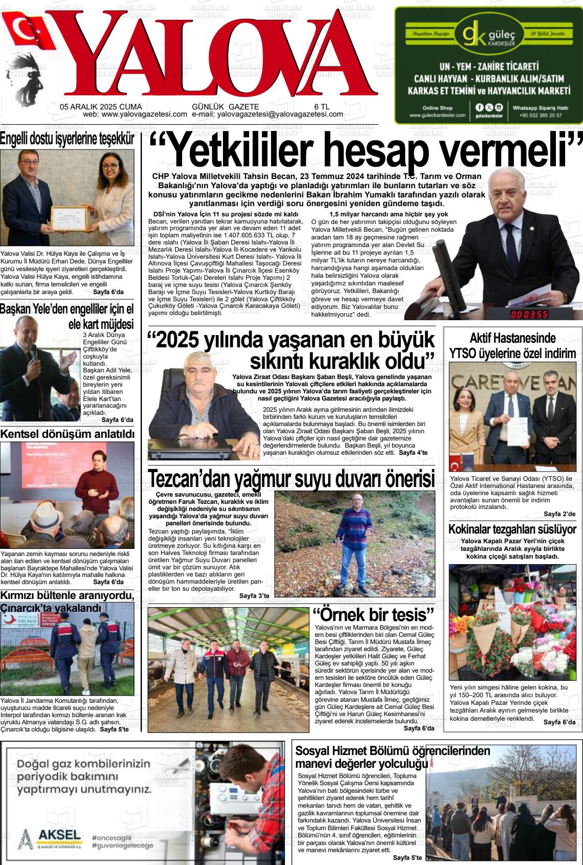 Yalova Yerel Gazeteleri 06 Nisan 2026, Pazartesi Günü Manşeti